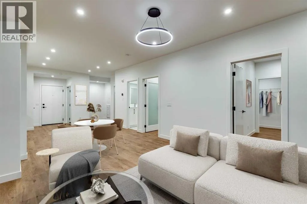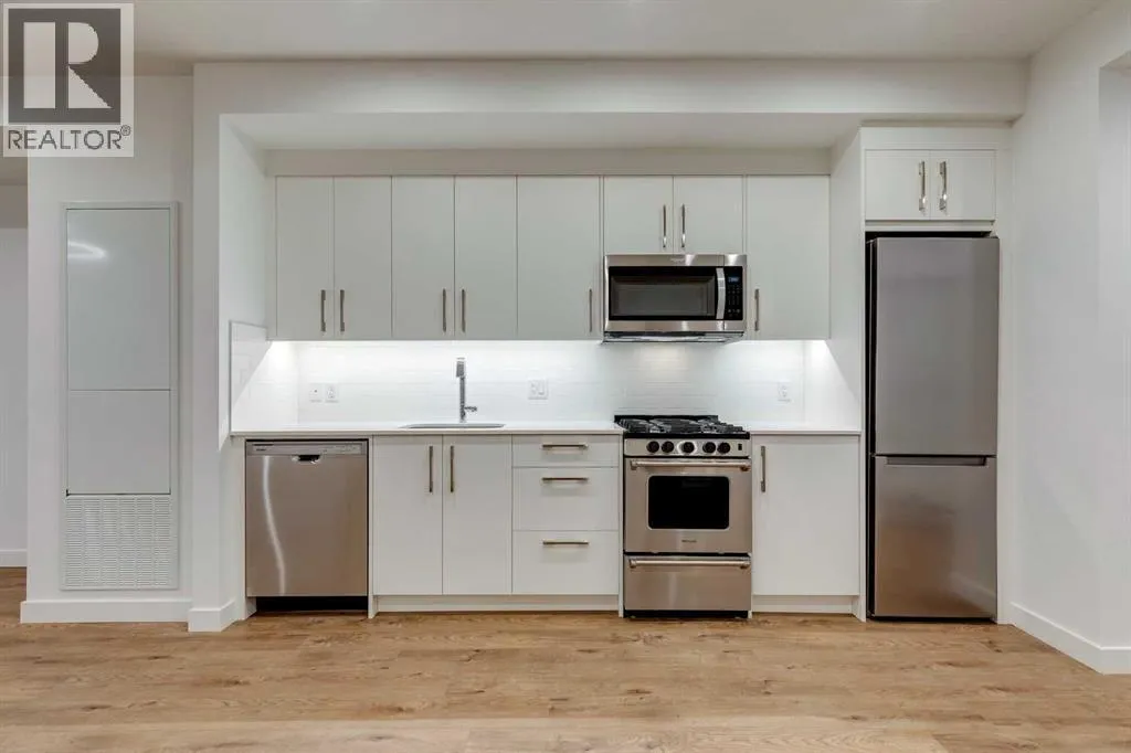 Welcome to Frontier by Truman Homes in the heart of West Hillhurst.This brand-new 3 bedroom, 2 bathroom condo offers over 1,060 sq. ft. of modern living space, complete with two titled heated underground parking stalls and a secure storage locker conveniently located on the same floor as the unit.The open-concept layout is enhanced by 9-foot ceilings, wide-plank flooring, and contemporary finishes. The kitchen is appointed with quartz countertops, full-height cabinetry, stainless steel appliances, and a gas range, combining modern design with everyday functionality. A private balcony extends your living space outdoors, complete with a gas hookup for your BBQ.The primary suite includes its own ensuite, while two additional bedrooms provide flexibility for guests, family, or a home office. The 5-piece main bathroom with dual sinks adds both style and convenience. Additional highlights include in-suite laundry and central air conditioning.Residents enjoy access to a fitness centre, co-working lounges, a landscaped courtyard, secure bike storage, and visitor parking.Located just steps from Kensingtonâs cafés, shops, and dining, and only minutes from the Bow River pathways and downtown Calgary, this home is ideal for those seeking convenience and a low-maintenance lifestyle. Everyday amenities are at your doorstep with FreshCo, Crave Cupcakes, C+C Coffee, a Pilates studio, and Metro Liquor all within the community. (id:27476)
