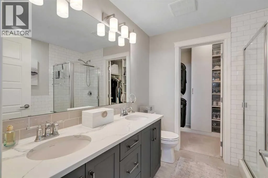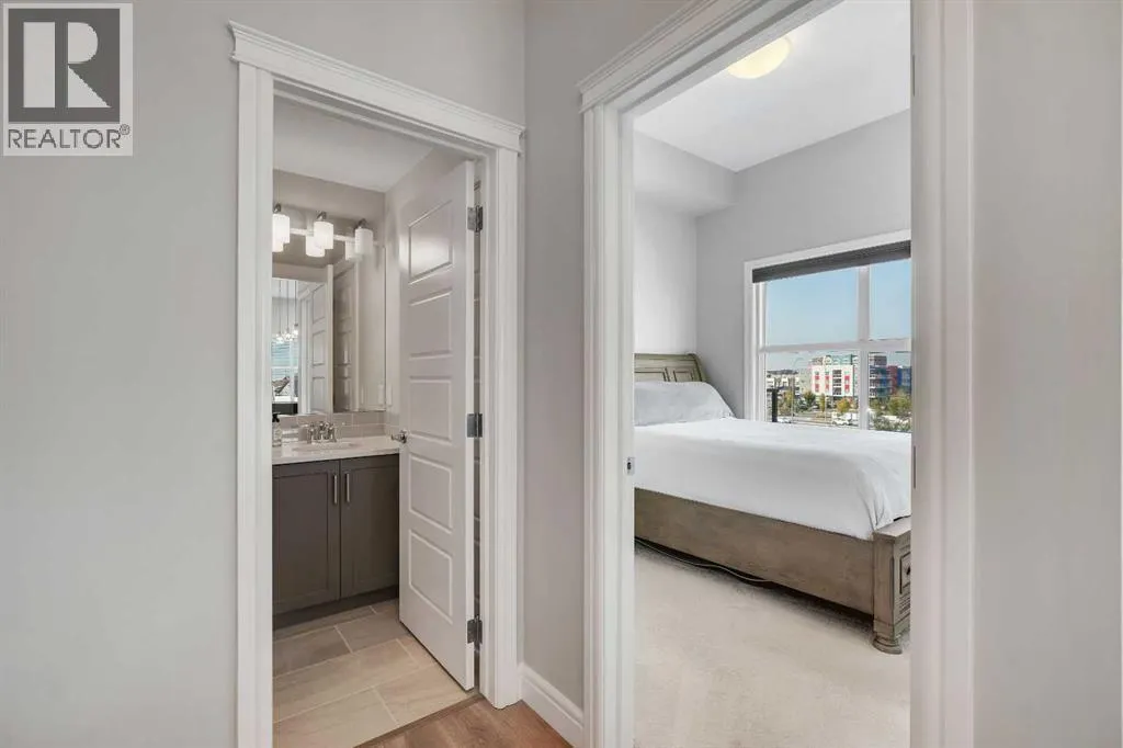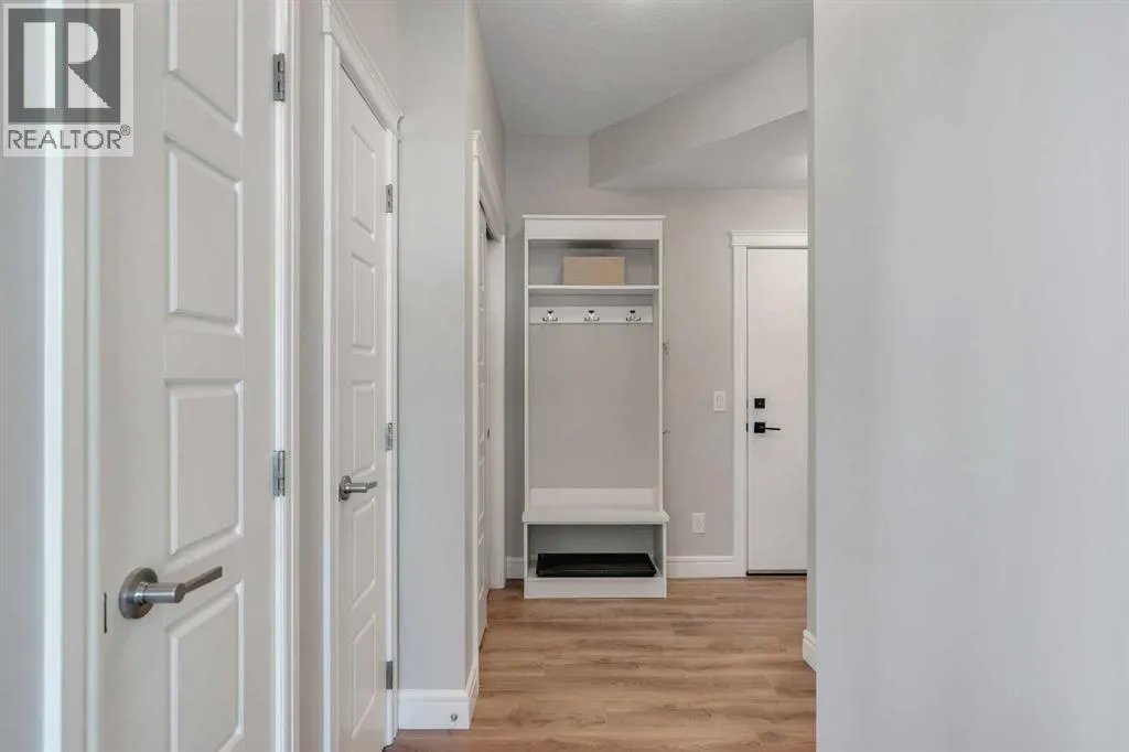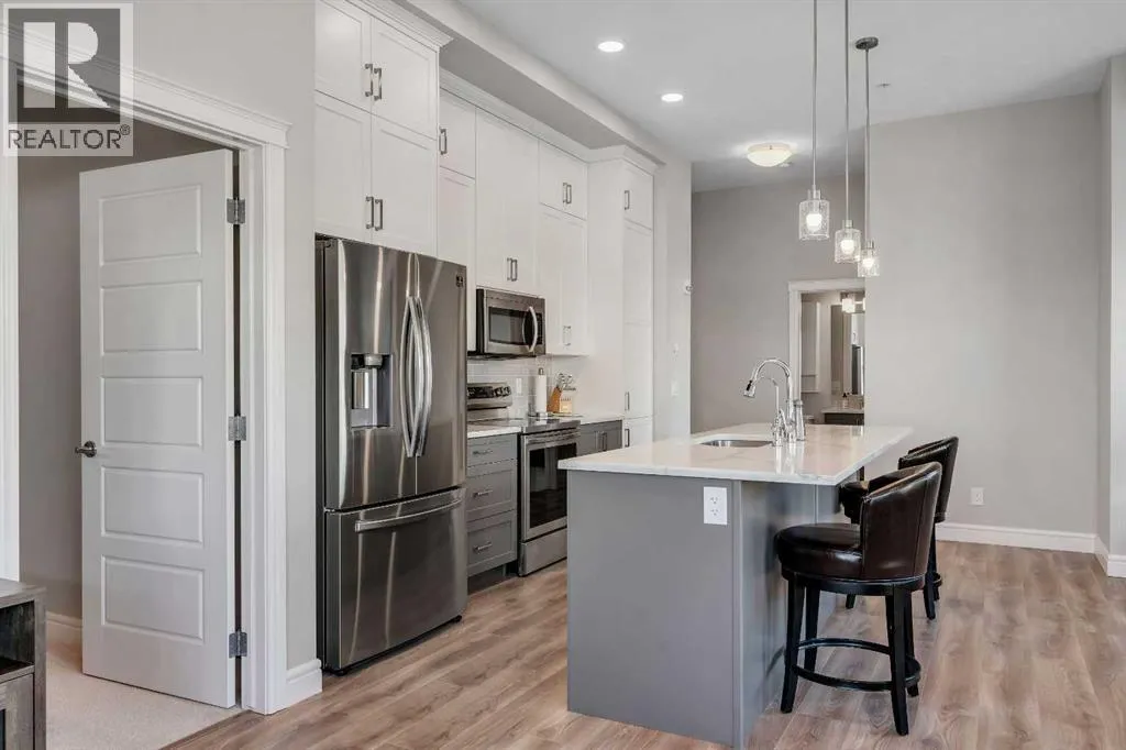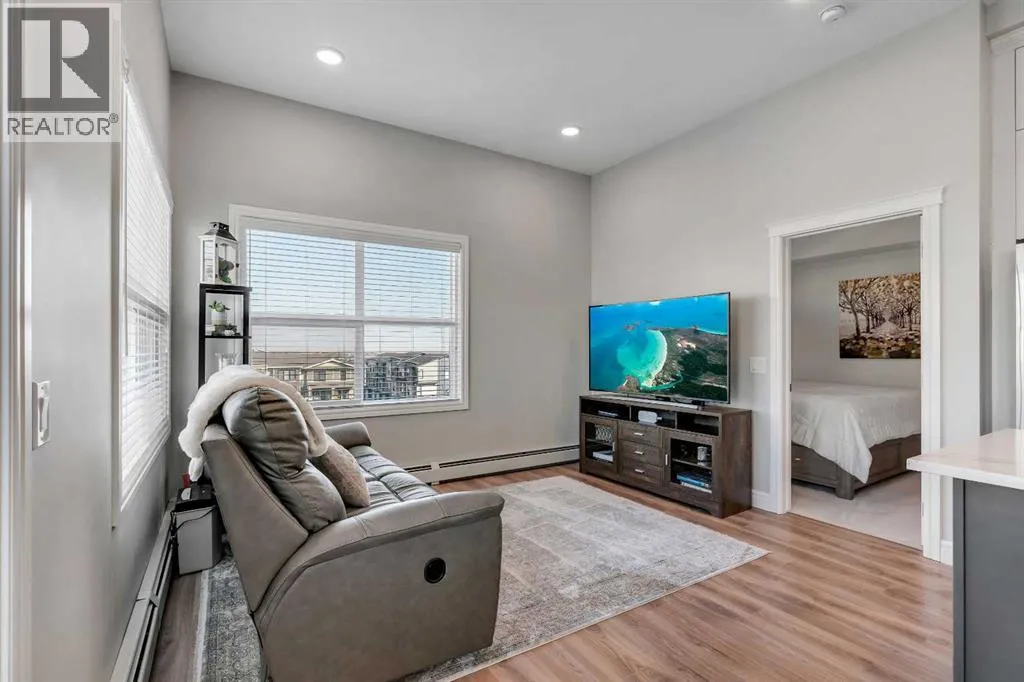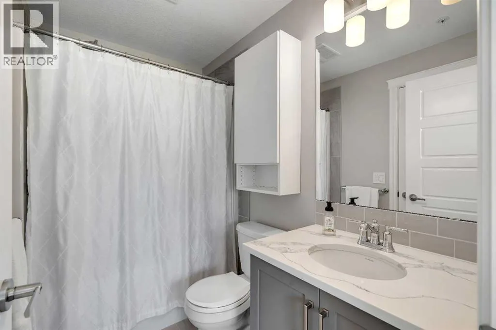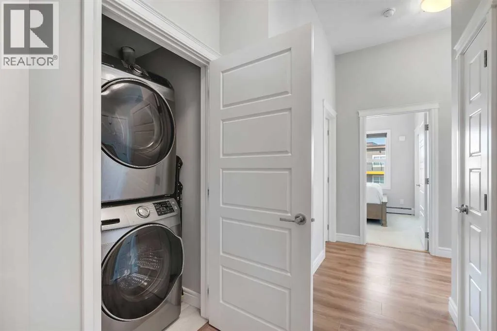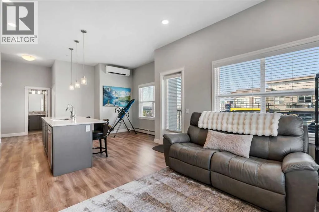 Experience upscale living in this exceptional 2-bedroom, 2-bathroom top-floor corner unit in Seton. Featuring soaring 11-ft ceilings and an open layout, this condo offers an inviting atmosphere and expansive city and mountain views from a large balcony with a gas line for grilling. The modern kitchen is a showpiece with quartz countertops, ceiling-height cabinets & pantry offer ample storage, a large island perfect for entertaining, stainless steel upgraded appliances, and an in-sink water filtration system. The spacious primary bedroom offers a tranquil retreat with Hunter-Douglas blackout blinds, a spa-like ensuite with double vanities, walk-in shower, soaker tub, and a custom California walk-in closet. The second bedroom features its own California closet, Hunter-Douglas blinds, and connects to a full bathroom. Extras include: entryway and hallway closets and a laundry closet with full-size washer & dryer, two parking stalls: one underground with storage, one surface stall steps from the stairs, central location near the South Health Campus, YMCA, high school, Superstore, Cineplex and more. This is luxury condo living at its finestâa rare find in Seton. Book your showing today! (id:27476)
