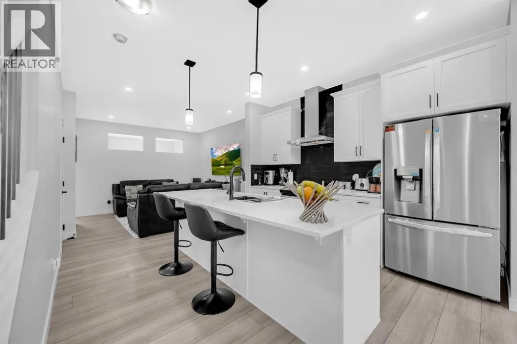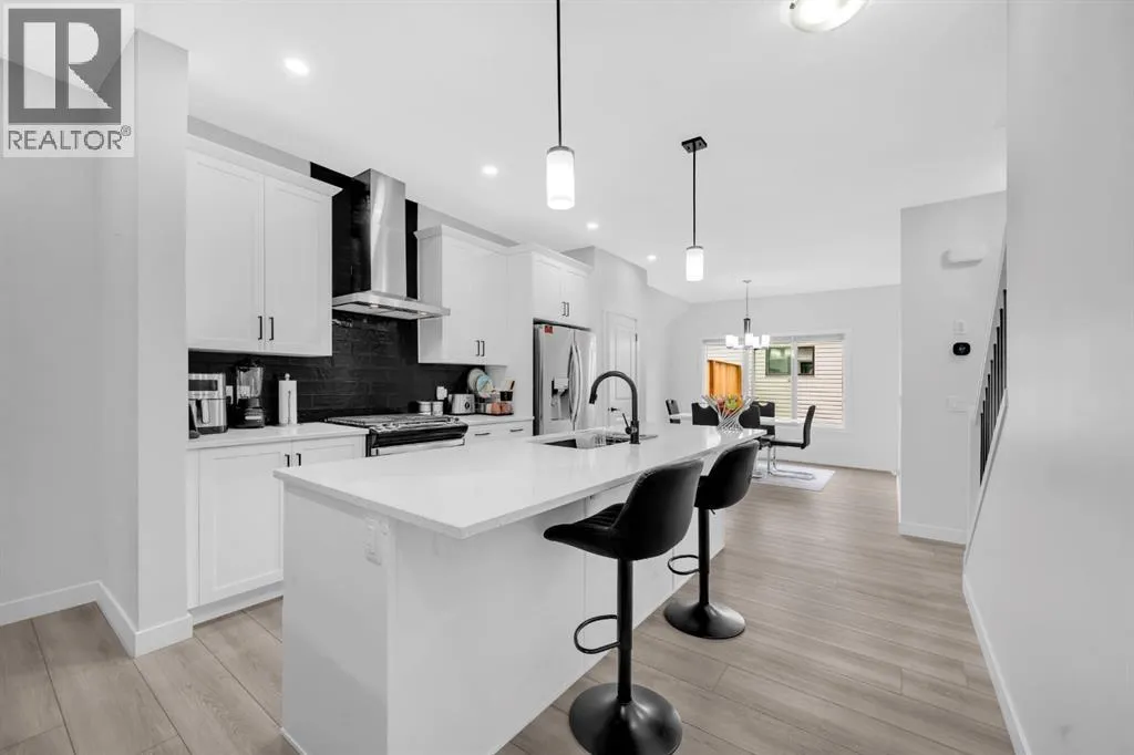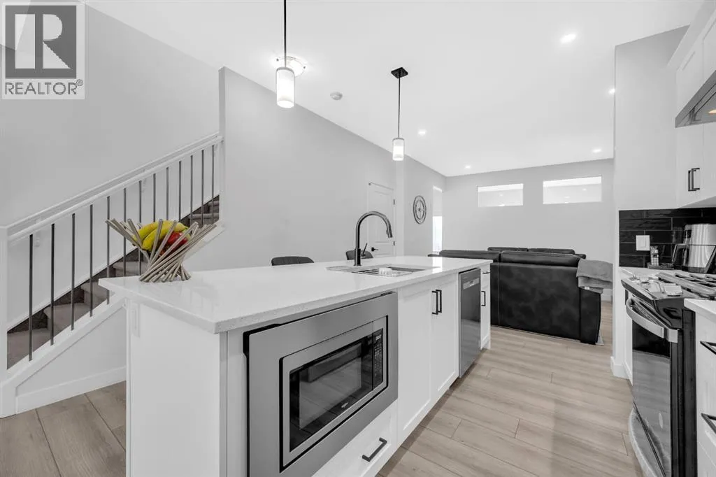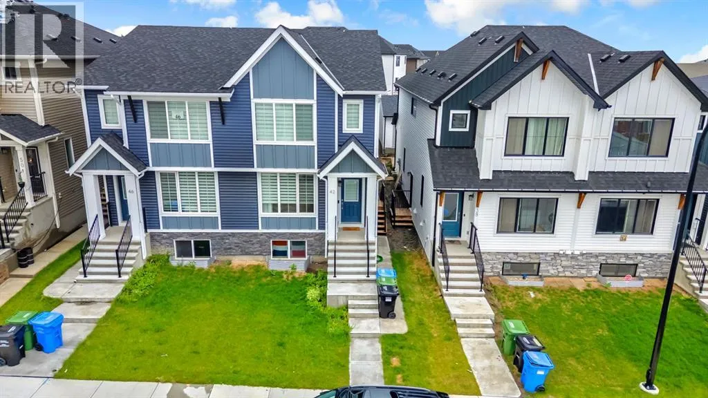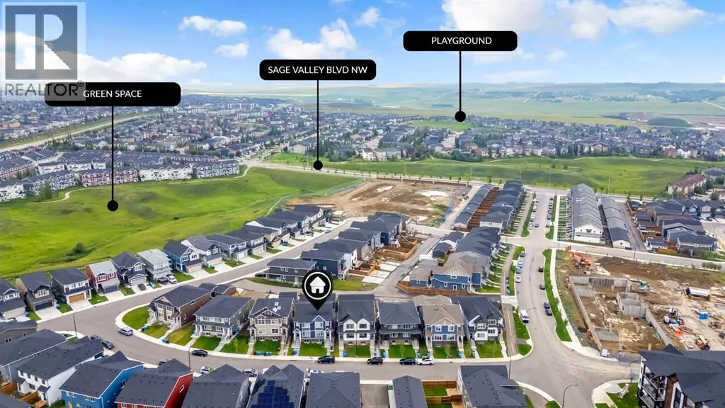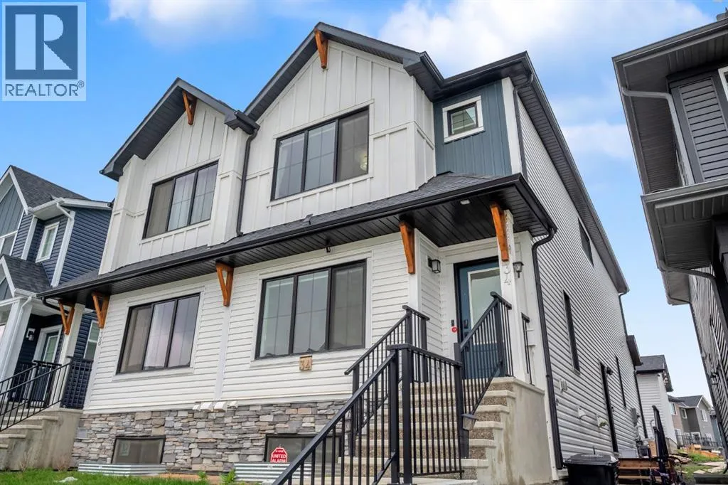 Welcome to this stunning semi-detached home with a LEGAL BASEMENT SUITE in the highly sought-after, family-friendly community of Sage Hill. Built in 2023, this modern 2-storey property offers over 1,800 sq. ft. of well-planned living space, thoughtfully designed for both comfort and versatility. With 5 bedrooms, 3.5 bathrooms, and a double detached garage, this home is perfect for families or those looking for an excellent income-generating opportunity.The main floor greets you with a spacious foyer and a versatile office space, leading into an open-concept living area filled with natural light. The chef-inspired kitchen features granite countertops, an oversized island, built-in refrigerator, gas cooktop, wall oven, and sleek modern cabinetry. The dining area flows seamlessly into the backyard, making it ideal for gatherings and entertaining. With 9-ft ceilings on both the main and upper levels, 8-ft doors, and oversized windows, the home feels bright, open, and inviting.Upstairs, discover 3 well-sized bedrooms, including a luxurious primary suite with a tray ceiling, 5-piece ensuite with soaker tub and shower, double vanity, and a walk-in closet. A central loft/bonus room and convenient upper-floor laundry add to the functionality of the layout.The fully developed LEGAL BASEMENT SUITE, complete with its own private entrance, offers 2 bedrooms, a full 4-piece bathroom, a well-equipped kitchen, a cozy living/game area, and its own laundry â perfect for multi-generational living or as a mortgage helper.Notable upgrades include motorized blinds, quartz/granite countertops throughout, laminate and tile flooring, built-in features, double vanities, multiple walk-in closets, and a concrete-paved driveway.Situated on a 2,529 sq. ft. lot in one of NW Calgaryâs fastest-growing neighborhoods, this home is close to parks, pathways, schools, shopping, and transit. Offering a rare blend of modern design, functionality, and legal suite potential, this property is truly move -in ready and a must-see. (id:27476)