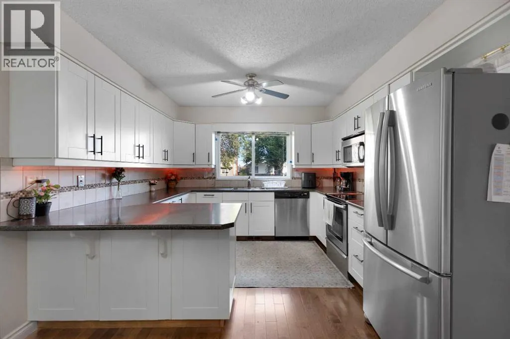 Welcome to this beautifully maintained 4-level split located on a quiet cul-de-sac in the sought after community of Temple. With over 1780 sqft above grade and a newly added illegal suite, this home is very spacious for any size family. It offers style, warmth, and flexibility with 5 bedrooms and a smart, family-friendly layout. The main floor features a bright living room, a stylish white kitchen with stainless steel appliances, and a spacious dining area. A few steps down is the cozy family room with a wood-burning fireplace, plus a bedroom/office, laundry, and full bath. Upstairs are three bedrooms, including a primary with private ensuite, and another full bath. The lower level has been newly developed into an illegal suite with its own walk-up exterior entrance and newly poured sidewalk to the street. It includes a bedroom, bath, family room, and kitchen, plus two new egress windows for safety and natural light. Perfect for extended family or rental potential. Additional highlights: drywalled double garage with paved alley access, many updated windows, pergola and deck in backyard, furnace, hot water tank. Located in a quiet cul-de-sac near three schools, this home blends comfort, updates, and income potentialâshowcasing true pride of ownership. (id:27476)