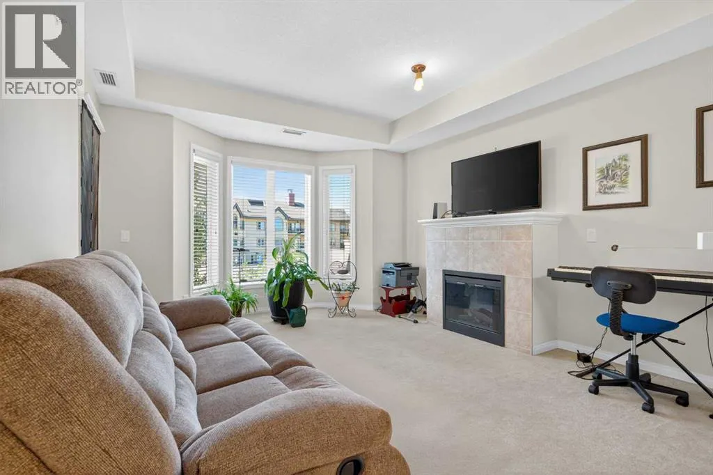 Welcome to 446 15 Everstone Drive SW, the best chance to own a private, quiet and pristine top-floor apartment in desirable Sierras of Evergreen. With all utilities, exceptionally attractive buildings, manicured grounds, and multiple resort-level amenities included in the condominium managed fees, living in the Sierras is one of Calgary's 55+ community's highest most sought-after exclusive ownership lifestyle-rich opportunities - all buildings are connected via the parkade, which has resident Titled Parking, huge "powered" personally assigned storage lockers (8'x5' interior), 5 elevator to access every building and amenity from indoors - absolutely no convenience has been left out! Situated in Building C (furthest from the main entrance) and facing South over the green walking paths behind, Unit 446 has been lovingly maintained by its conscientious resident, with central air conditioning, Energy Star laundry machines, and wonât last long! Please view the virtual tour, iGuide Floor Plans and beautiful photos, then visit to experience the 700 square foot open layout, complete with a large foyer and front closet, wrapped kitchen that has corner pantry, eating bar and room for a chopping block island if desired, central dining or flex area, and large living room with fireplace at the rear. Calgary's sunny Chinook and summer weather can be enjoyed on the 130 square foot deck, that offers views from the West and East, so year-round sunrise and sunsets too! To finish off the privacy spaces in the home, the Primary bedroom can accommodate the largest furnishings, and a 7'x5' walk-in closet, plus an almost 9'x5' laundry and storage room at the front create an optimised environment all around. The Sierras Updates and Unique Benefits begin with multiple outdoor Pergola/Gazebo Sitting areas, large lobby entry areas, several Guest Suites, Libraries, games or social seating, Entertainment/Recreation and Fitness areas including large indoor Pool, Work-out room, Billiards, Shuffleb oard, Woodworking, Crafts, Winemaking, and other enjoyable activities, even heated Parkade Ramp and Car Wash. 2023-24 Vinyl Plank in Common areas/halls, and including guest suites, Theatre and electronic equipment. 2022 asphalt roofing (2012 other roofing), 2017 pool tables refurbished, newer weight and fitness machines/equipment, workshop machines and tools, furnishings, and ongoing maintenance or repairs are taken care of through the extensive reserve fund available. Exceptional management of the complex, grounds and included elements are greater than MOST independent homeowners and Corporations. This property will be available for viewing via ShowingTime and your favourite Realtor. Documents are in supplements for review. (id:27476)