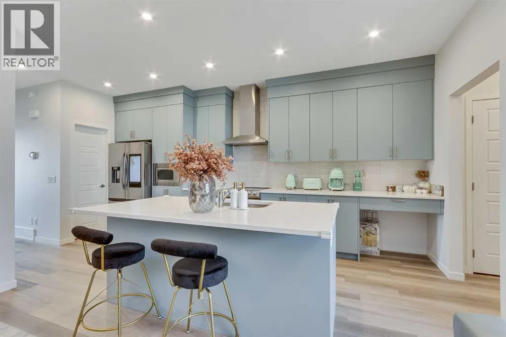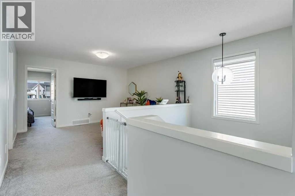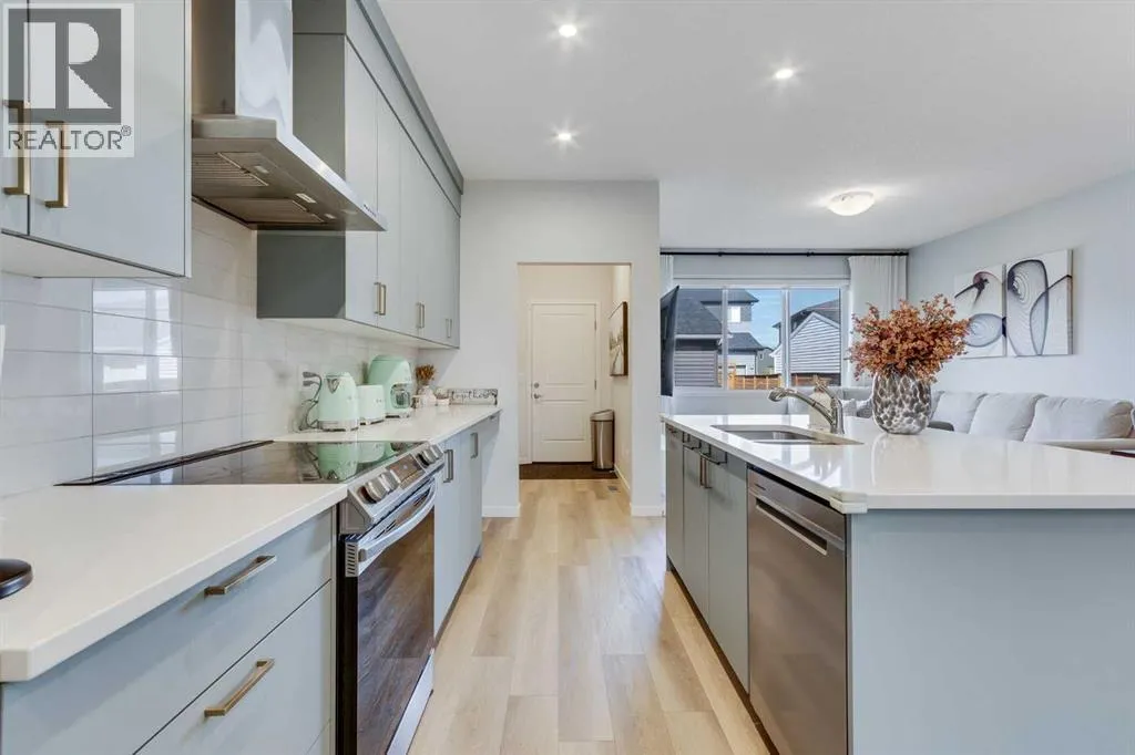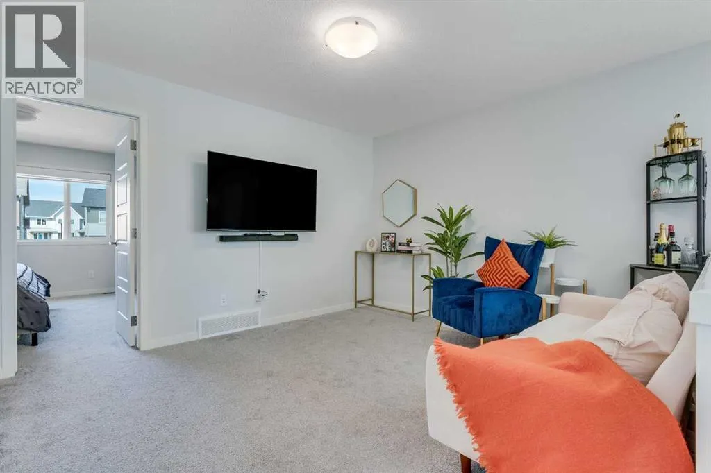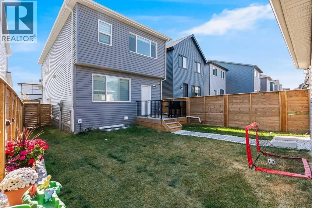 Welcome to Your Dream Home in Livingston!Built by Cedarglen Homes , this stunning detached home offers 1,843 sq. ft. above grade plus a fully finished 810 sq. ft. legal basement suite with separate entrance, providing a total of nearly 2,700 sq. ft. of living space. Perfect for families or investors, this property sits on a total of 2,950 sq. ft. landscaped lot. Step inside and be greeted by a bright, open-concept main floor featuring â A dedicated office space perfect for working from home, convenient mudroom and two closets for easy storage, Spacious living and dining areas designed for family gatherings, a chef-inspired kitchen with full-height textured melamine cabinetry, quartz countertops, large island, walk-in pantry, and premium stainless steel appliances ( Samsung French-door fridge, electric range, wall-mounted hood fan, and microwave). Upstairs, youâll find a cozy family room, two generous secondary bedrooms, a full bathroom, laundry room, and a luxurious primary suite with a 4-piece ensuite featuring double vanity and a walk-in closet. The fully finished legal basement suite is a standout feature â perfect for multi-generational living or rental income. With its own mechanical system, full kitchen with pantry, living/dining area, two large bedrooms, full bathroom, and in-suite laundry, this suite has been a proven income generator, earning $1,800â$2,400/month on Airbnb and VRBO in the spring and summer months (even higher during Calgary Stampede month!). Additional highlights of the property includes â Central Air-Conditioning for the summer months and heat pump, motorised window blinds, black out shades, curtains for convenience, durable vinyl plank flooring on the main level and basement suite, and cozy carpets upstairs. BONUS: Select furniture and electronics are available for purchase separately from the listing price. Located just 12 minutes to YYC Airport and 23 minutes to Downtown Calgary, this home is steps from Livingston Hub, Carrington Pla za, schools, parks, and playgrounds â making it the perfect place to live, work, and play. Whether youâre looking for a beautiful family home or a property with strong rental income potential, this Livingston gem is a must-see! (id:27476)