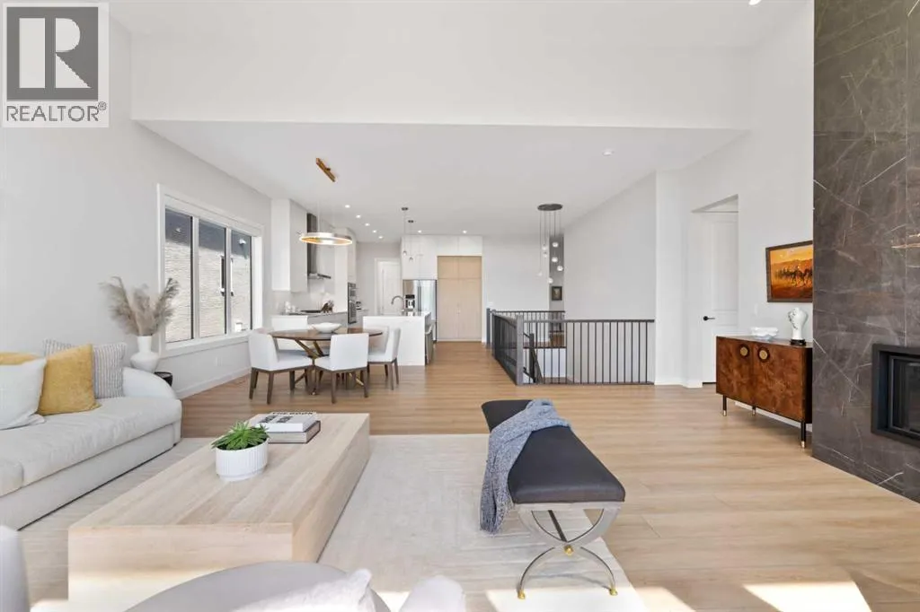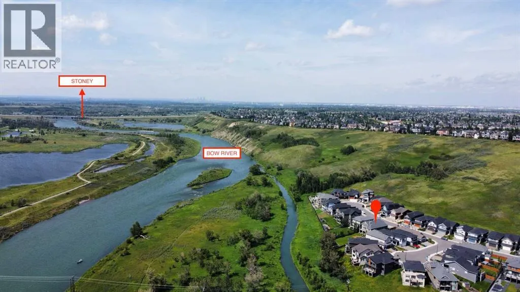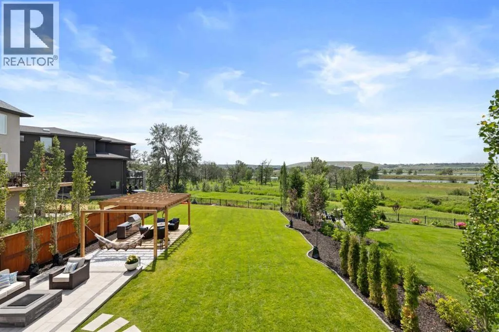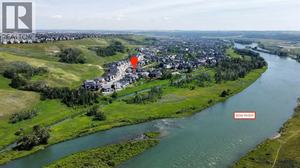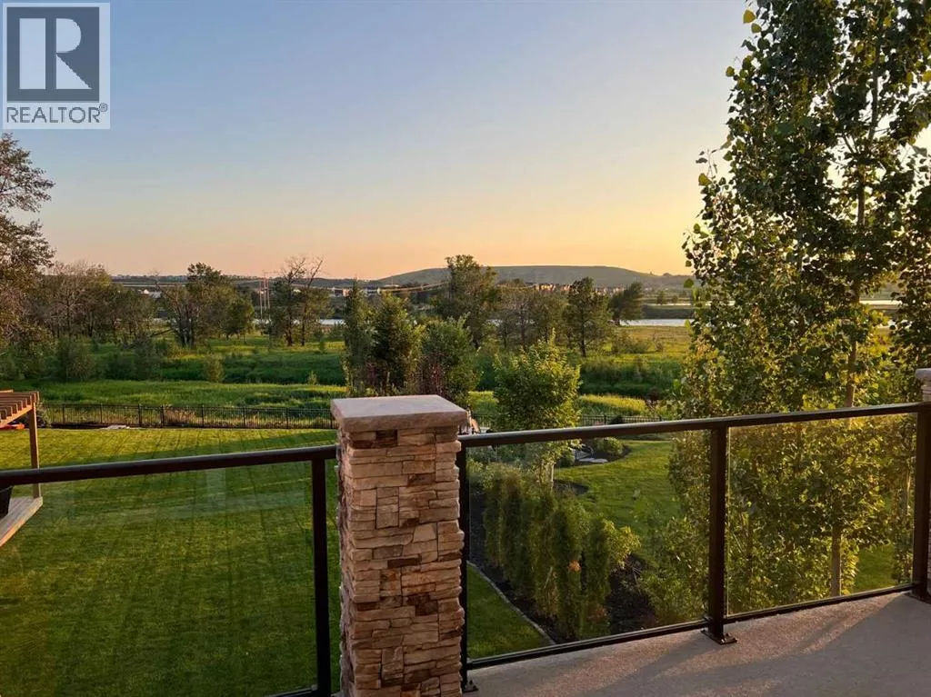 Welcome to one of Calgaryâs finest offeringsâwhere timeless design meets natural beauty in the prestigious enclave of CranstonRiverstone. This 2022-built luxury walkout bungalow is more than a homeâitâs a rare riverfront sanctuary, backing directly onto the Bow River anduntouched natural reserve, offering uninterrupted views and total privacy with no rear neighbours. Designed for the discerning homeowner, thisexquisite 3-bedroom, 2.5-bathroom estate offers 1757 SQFT on the main level and over 3000 SQFT of total developed living space. From the momentyou enter, youâll be captivated by the flood of natural light, soaring ceilings, and seamless flow of the open-concept layout. The luxury kitchen is achefâs dreamâfeaturing premium custom cabinetry, high-end appliances, and an abundance of space for both functionality and style. The great roomoffers expansive river views and opens onto your private upper deckâperfect for morning coffee or evening wine. Retreat to your serene primarysuite, complete with a spa-like ensuite and custom walk-in closet. Downstairs, the fully developed walkout basement extends your lifestyle with spacefor an entertainment zone, home gym, or private retreat. Outside, nature becomes your neighbour. Walk the endless trails of Cranstonâs preservedriver valley, or simply enjoy the peaceful stillness from your backyard. The oversized triple-car heated garage, central A/C, and high-efficiencyfurnace complete the package for true year-round comfort and peace of mind. (id:27476)
