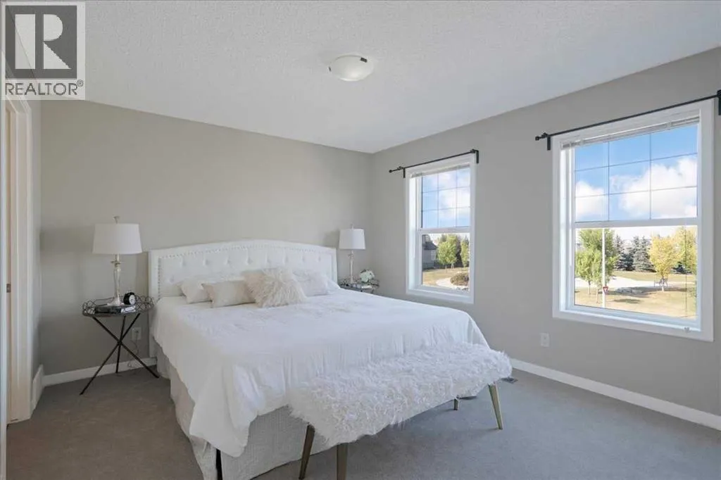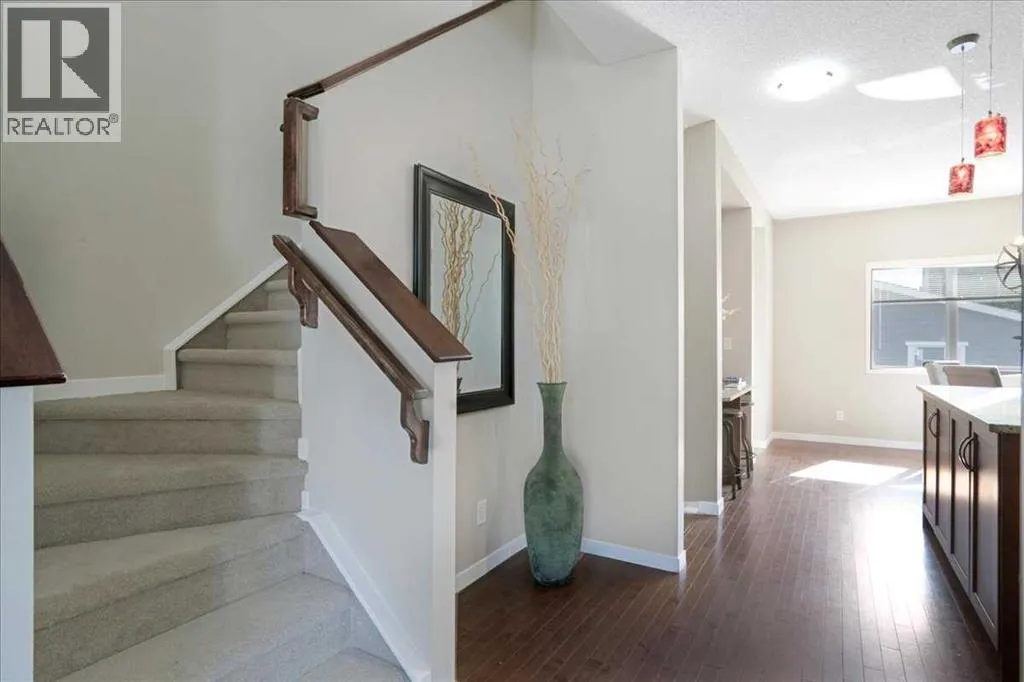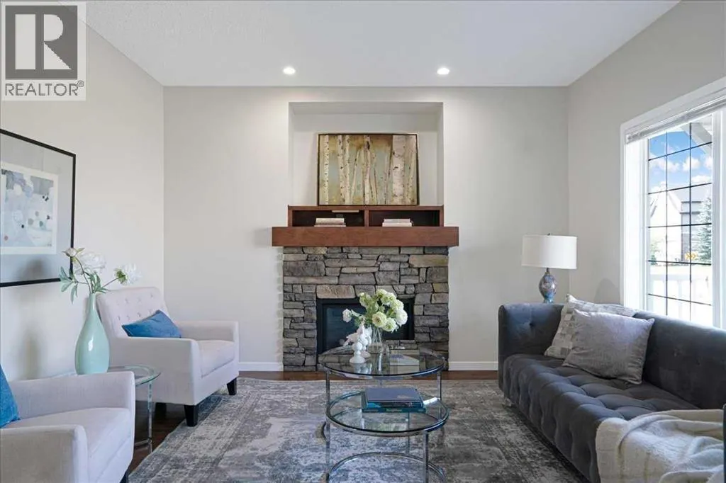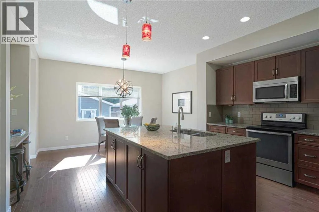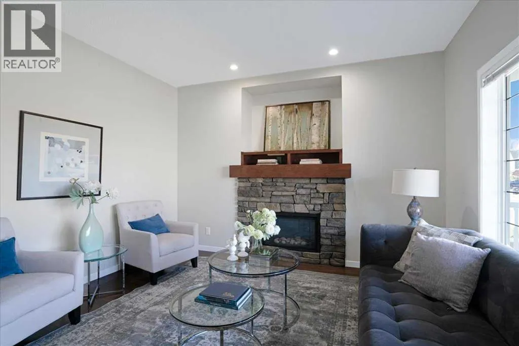 *Park facing home in the Marquis section*Front Porch*Beautiful Living room with a Fireplace. Welcome to your new home in the Marquis section of Mahogany! This north-facing , about 7° NW, lane home sits just one lot away from the cornerâgiving you the convenience and open feel of a corner lot without the added upkeep. Right across from a beautiful park and with a sunny south backyard, itâs perfectly positioned for everyday living. Youâll also love the quick access in and out of the community from 52nd Street SE.Upgrades include durable composite siding, a welcoming front porch, and a cozy main floor fireplace that makes the living space feel warm and inviting. The backyard is fully landscaped with attractive limestone and features a double detached garage (built in 2017), offering plenty of space for parking and storage. And, brand new carpets and interior paint. Inside, the main floor has a bright open layout with a modern kitchen, stainless steel appliances, and lots of natural light. Upstairs are three comfortable bedrooms, including a primary suite with a private ensuite.Plus, living in Mahogany means walking paths, playgrounds, wetlands, and full lake access with beaches, swimming, skating, and year-round activities right at your doorstep. Plus, schools are within close walking distance, making it easy for families with children.A fantastic choice for first-time buyers, young families, upsizing, downsizing or anyone looking to enjoy the best of lake community living. (id:27476)