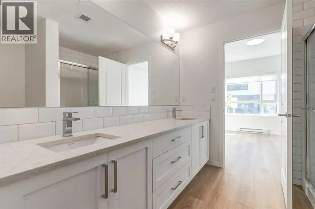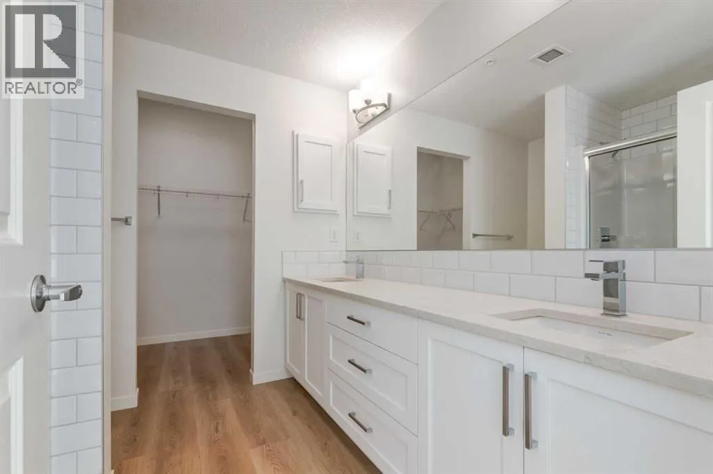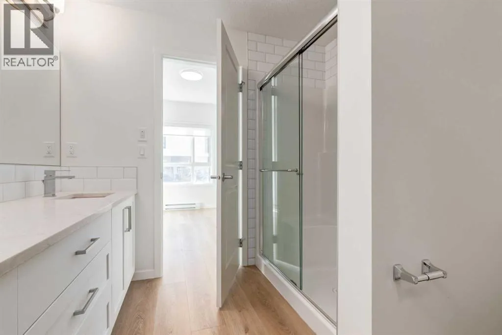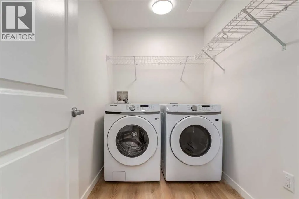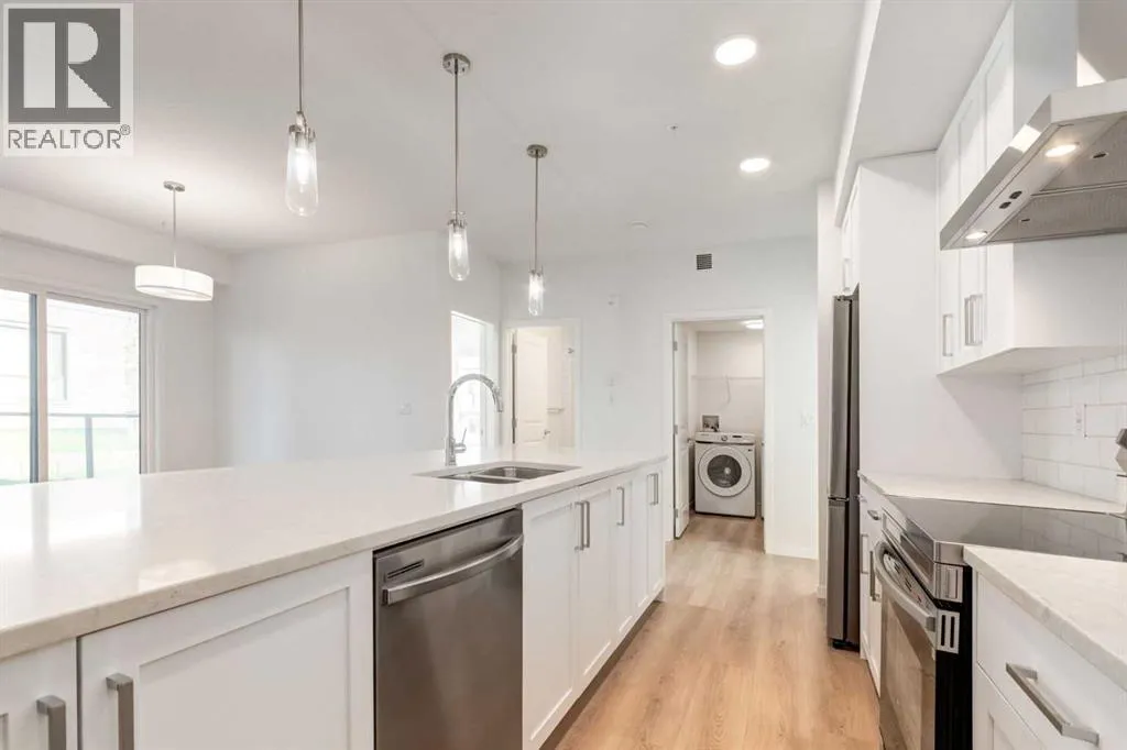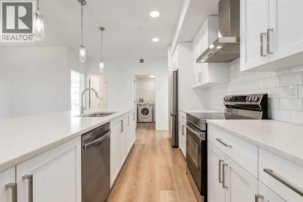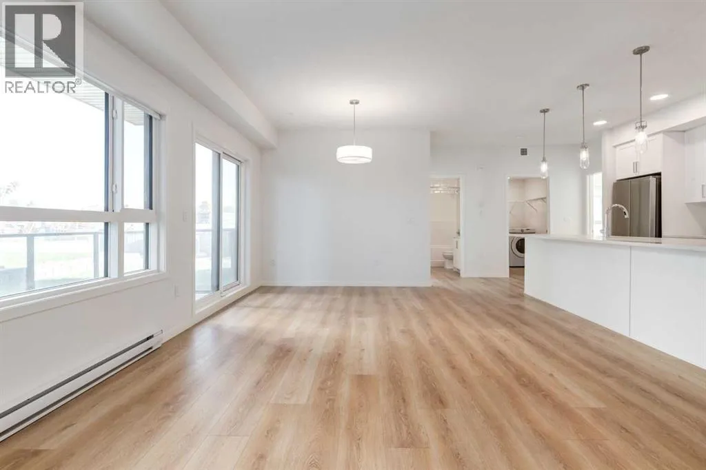 Introducing SETON SERENITY, a highly sought-after development in SETON, Calgary. BUILT BY CEDARGLEN LIVING, WINNER OF THE CustomerInsight BUILDER OF CHOICE AWARD, 5 YEARS RUNNING! BRAND NEW CORNER UNIT, "L3" floor plan with high-spec features. You will feel right at home in this well thought-out 1059.39 RMS sq.ft. (1125 sq.ft. builder size) 2 bed, 2 bath home with open plan, 9' ceilings, LVP flooring through-out (upgraded, no carpet), Low E triple glazed windows, electric baseboard heating, BBQ gas line on the patio, A/C Rough in, and Fresh Air System (ERV). The kitchen is spectacular with an extended island upgrade, quartz counters, undermount sink, S/S appliances, upgraded Chimney Hood Fan, and pantry. The extended island is stunning and transitions into the spacious living & dining area, perfect for entertaining. The spacious primary bedroom has a large bright window, sizeable walk-in closet and 4 pc ensuite with extra drawers & full height tile upgrade. 1 additional bedroom located across the unit for noise reduction/privacy and 4pc bathroom (also with upgraded full height tile) located nearby. Laundry & storage closet is thoughtfully planned, definitely a must see (washer/dryer included). Highlights include: upgraded lighting package, sound reducing membrane to reduce sound transmission between floors, clear glass railing to balconies and 1 titled underground parking stall included. There are many bespoke amenities outside your front door, so park the car and put on your walking shoes. The LARGEST YMCA IN THE WORLD and the SETON HOA is just around the corner. SOUTH HOSPITAL, shopping, restaurants and cafes are all just a short stroll away. PET & RENTAL FRIENDLY COMPLEX. VIRTUAL TOUR AVAILABLE! (id:27476)