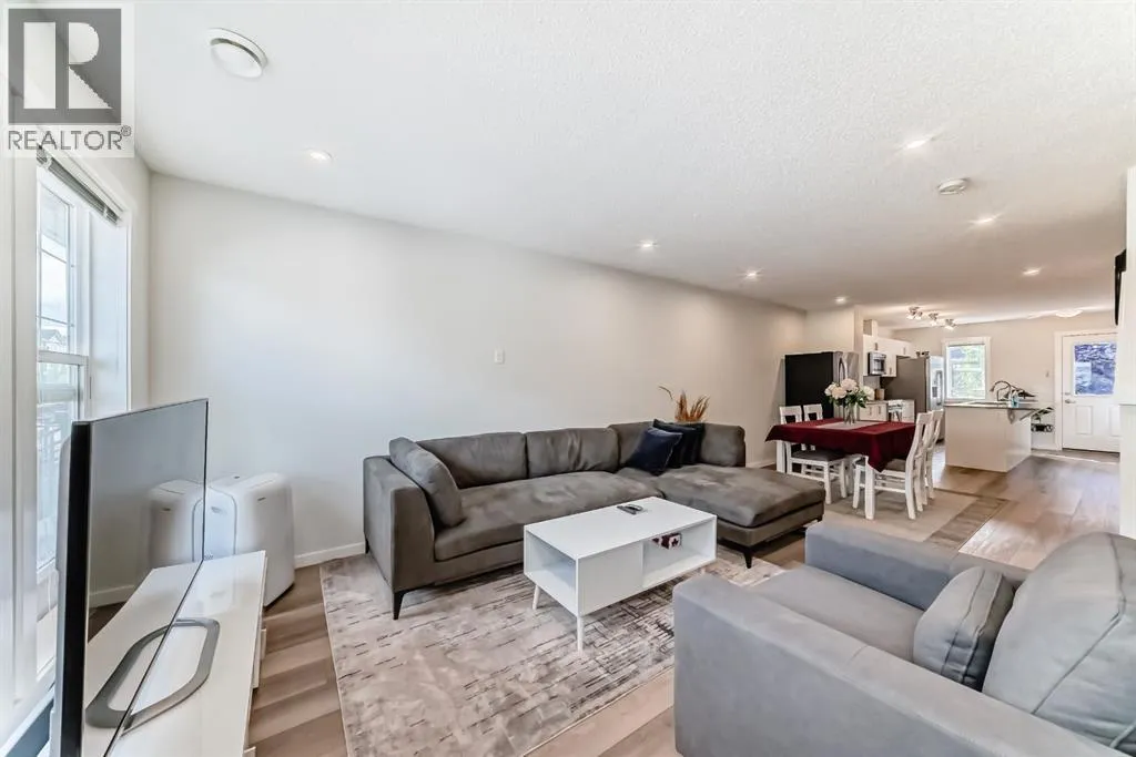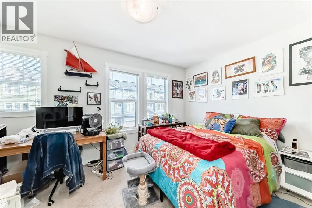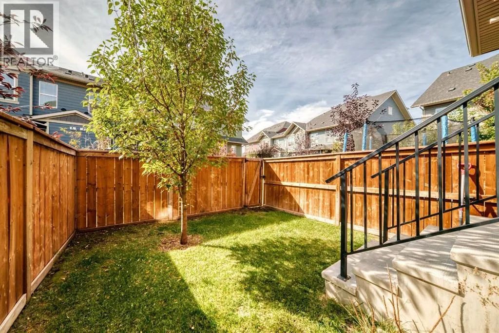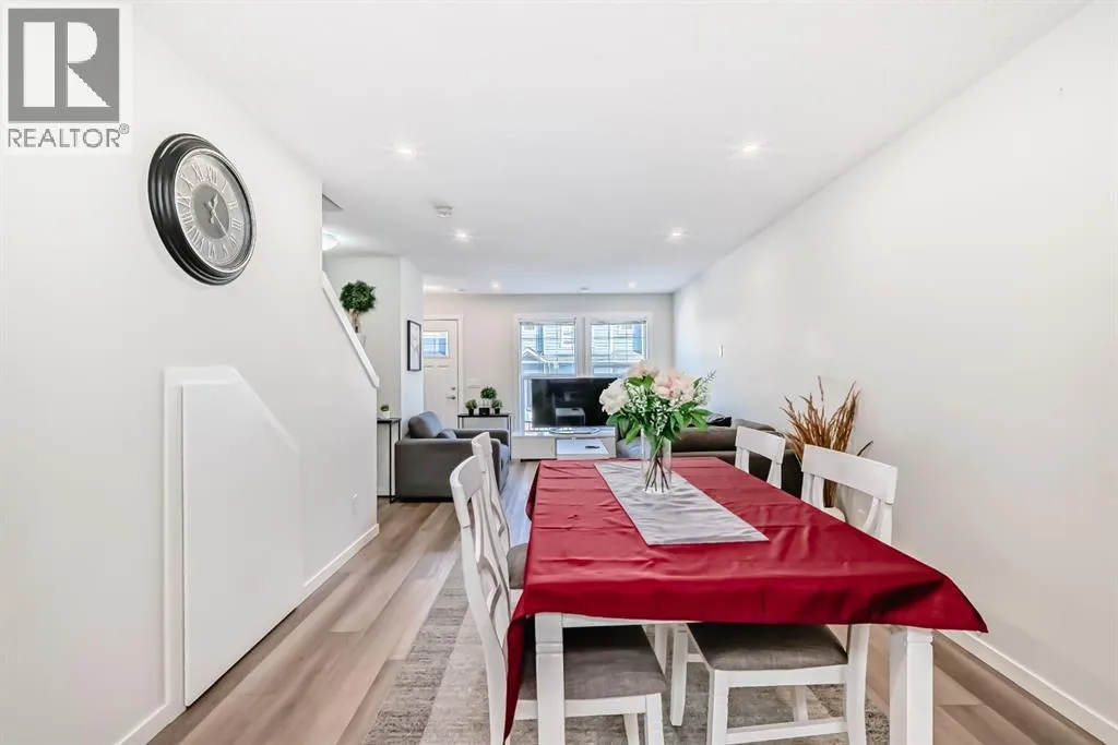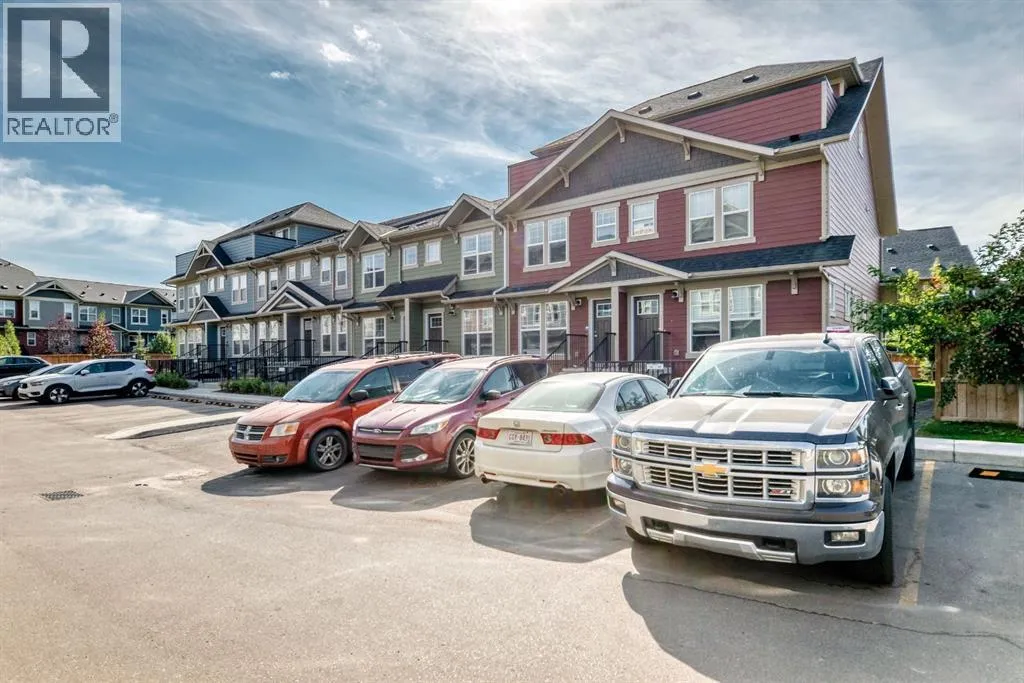 Welcome to this beautifully designed townhome in the desirable community of Cranston SE Calgary â offering modern finishes, thoughtful design, and incredible outdoor living spaces.The main floor features an inviting open-concept layout with a bright living room, spacious dining area, and a well-appointed kitchen with ample cabinetry and counter space. A convenient half bathroom completes the main level.Upstairs, youâll find a large primary suite with its own private ensuite bathroom. The second bedroom is generously sized and served by a separate full bathroom, making it perfect for family, guests, or a home office.On the third level, discover a large flex space that can be used as a family room, entertainment area, or home office. From here, step out onto the impressive rooftop balcony â the ideal spot to relax, entertain, and enjoy Calgaryâs summer evenings.Additional highlights include in-unit laundry, a private backyard for BBQs or gardening, and a dedicated parking stall conveniently located near the unit.All of this in the sought-after community of Cranston, with easy access to schools, parks, shopping, pathways, and major roadways like Deerfoot and Stoney Trail.This home combines style, comfort, and functionality â perfect for first-time buyers, downsizers, or investors. Book your showing today! (id:27476)