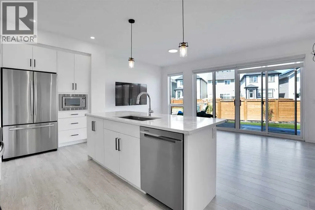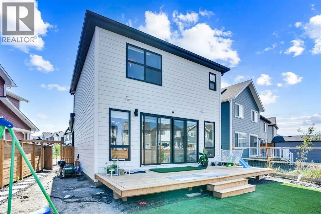 Huge price reduction. Motivated Sellers. Incredible value in Mahogany. Welcome to this immaculate, like-new 2-storey home nestled on a quiet, family-friendly street in the award-winning lake community of Mahogany. Perfectly positioned just a short stroll from the main beach club entrance, this home offers an ideal blend of thoughtful design, everyday comfort, and unbeatable location. From the spacious front foyer to the central bonus room, upper-level laundry, and luxurious primary retreat, every detail has been carefully considered for modern family living. The main floor features a bright, open-concept layout filled with natural light, enhanced by clean lines and a neutral palette. At the heart of the home is the stunning kitchen, equipped with upgraded stainless steel appliances including a gas stove, elegant quartz countertops, a walk-through pantry that connects to the mudroom and double attached garage, and a large central island â perfect for entertaining or everyday family meals. The kitchen flows effortlessly into the dining area. Upstairs, youâll find two generous secondary bedrooms, a full 3-piece bathroom , a versatile bonus room, and a spacious primary suite complete with a 5-piece ensuite featuring dual vanities, a deep soaker tub, separate walk-in shower, and a large walk-in closet. Additional highlights including FOOF door on main level, huge expensive pie shaped lot with back alley access with a huge deck in fully landscaped artificial grass backyard and an unfinished basement offering future potential. With the Alberta New Home Warranty still in effect, and convenient access to Stoney & Deerfoot Trails, schools, shopping, and Mahoganyâs unmatched amenities â including beaches, parks, and scenic pathways â this is more than just a place to live. It's the lifestyle you've been waiting for. With quick possession available, this opportunity will not last. Flexible possession available with all all reasonable offers considered. Book you sho wing today. (id:27476)