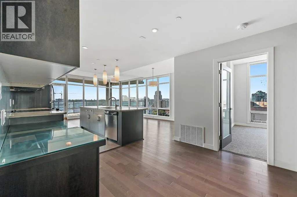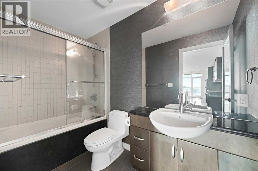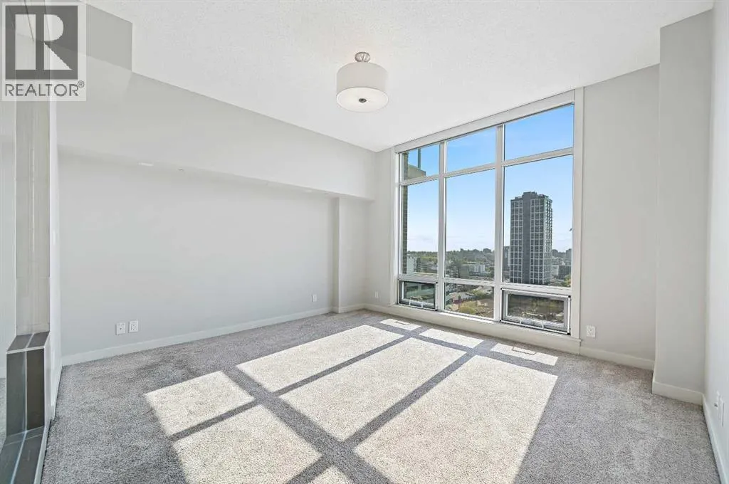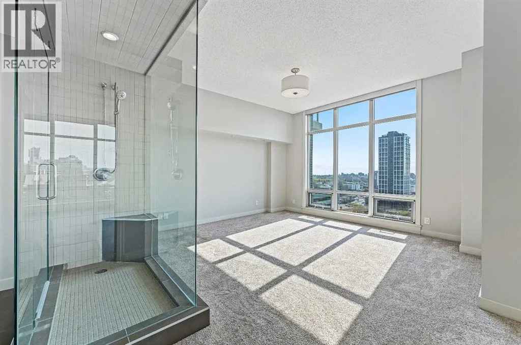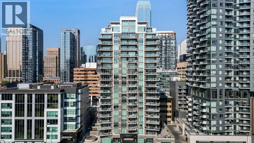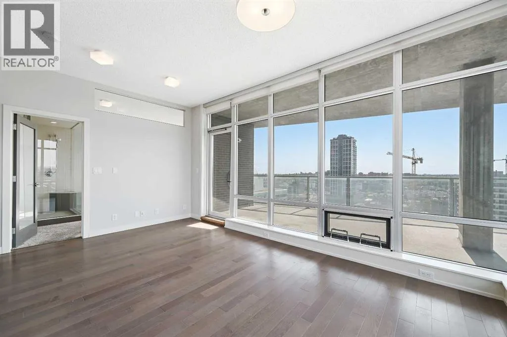 Experience elevated urban living in this extra-spacious two-bedroom, two-bathroom corner suite perched on the 14th floor of the prestigious Castello building. Wrapped in floor-to-ceiling windows, this home is flooded with natural light and showcases sweeping views of Calgaryâs vibrant Beltline and downtown skyline. The thoughtfully designed layout separates the dual bedrooms, ensuring privacy while keeping the open-concept living, dining, and kitchen areas bright and connected. The primary retreat is a true sanctuaryâfeaturing a 5-piece ensuite with an oversized glass-and-tile shower, double vanity, separate water closet, and a generous walk-in closet with custom built-ins. The spacious second bedroom features double closets and is conveniently located next to a stylish 4-piece bathroom, ideal for guests or family members. Freshly painted and beautifully finished, this suite boasts hardwood flooring, stone counters throughout, a new electric stove, a beverage fridge, custom wall coverings, and a convenient telephone desk. Enjoy the convenience of double side-by-side underground parking stalls and a separate storage locker. Step outside onto the expansive 17x24 ft balcony with a gas BBQ hookupâyour private outdoor oasis with west-facing views, ideal for entertaining or unwinding. Castello offers residents an array of amenities including a large fitness studio, social room, guest suite, visitor parking, concierge service, and a stunning lobby that sets the tone from the moment you enter. Perfectly situated in the heart of the Beltline, youâll love the easy access to 17th Avenue, Mission District, Memorial Park Library, BMO Centre, Stampede Grounds, shops, cafes, and the downtown coreâall within walking distance. Professionally managed by Equium, with availability for May move-in. This is city living at its finestâdonât miss your opportunity to call the Castello home. (id:27476)