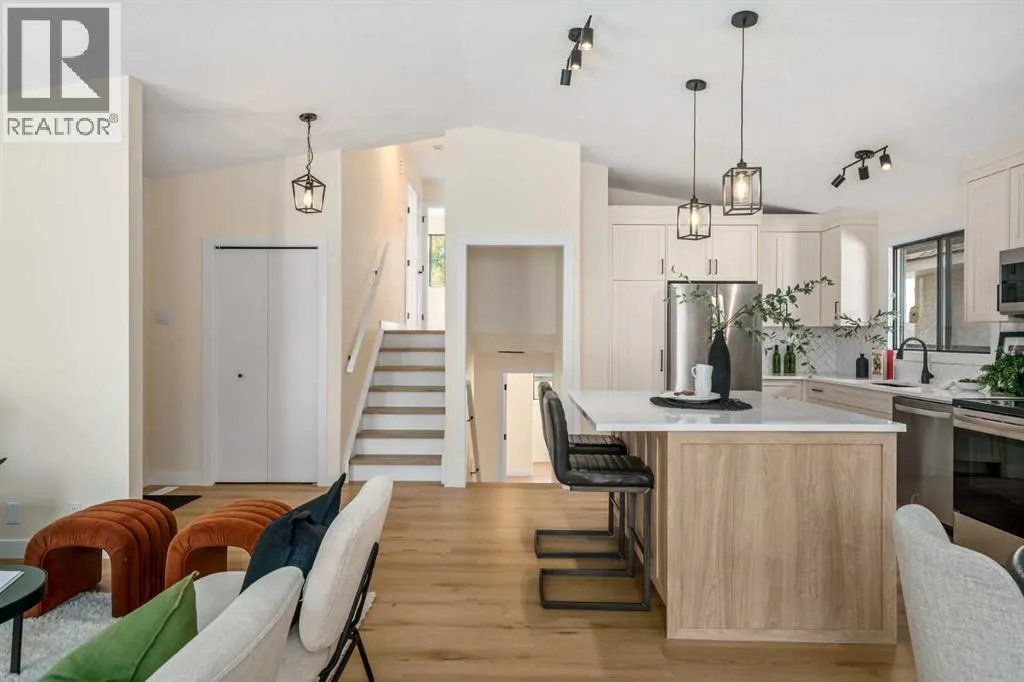 Modern, fresh, and family-ready! This newly renovated 4-level split offers 4 bedrooms, 2.5 bathrooms, vaulted ceilings and an abundance of natural light. The open-concept main level is an entertainerâs dream with custom cabinetry, a large island, and quartz countertops. Every bathroom has been updated with custom cabinets and quartz, while warm oak vinyl flooring carries throughout the home for a cohesive, inviting feel. The spacious primary suite is both stylish and functional, complete with double closets and a private ensuite. The third level features a generous rec room, 4th bedroom, and full bath, while the basement is perfectly set up for movie nights in your family media space.Situated on a large corner lot in the desirable lake community of McKenzie, youâll love being just steps from the community center, schools, and lake entrance. This home offers the perfect blend of comfort, convenience, and lifestyle. Book your private tour today! (id:27476)