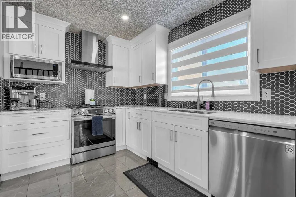 FULLY RENOVATED | LARGE 4 LEVEL SPLIT | QUIET CUL-DE-SAC | MASSIVE 6544 SQFT LOT | ATTACHED GARAGE WITH MUD ROOM | ALL NEW MECHANICALS INCLUDING FURNACE, TANKLESS HOT WATER, WATER SOFTENER AND AIR CONDITIONING | WALKOUT 3rd LEVEL | This home impresses from the start with a double attached garage, extended driveway and a welcoming front patio that captures the south sunshine. Too many upgrades to list including windows and a patio door with built-in blinds. Step inside to a neutral palette where a spacious living room is framed by oversized south windows and recessed lighting for bright, comfortable living day and night. Sightlines flow seamlessly into the dining area with elegant lighting and a built-in storage and serving bar that enhances both everyday function and entertaining. The beautifully updated kitchen inspires culinary adventures with crisp white cabinetry, full-height tile backsplash, stainless steel appliances including a gas stove and plenty of room for a table for casual meals and morning coffees. On the lower level, a massive family room invites gatherings around the fireplace with a walkout that connects indoor comfort with backyard living. A convenient powder room and access to the attached garage complete this level. Upstairs, retreat to a relaxing primary suite where a stylish ensuite boasts an oversized rain shower. Two additional bedrooms are spacious and bright, complemented by an updated 4 pc bathroom finished with full-height tile. The fully developed basement extends the homeâs versatility with a large rec room easily divided by furniture into zones for work, play or fitness. A stunning bathroom here showcases dual sinks, a large rain shower, bench seating and designer tile detailing. Plenty of room to add an extra bedroom or two. Outside, enjoy a covered patio perfect for barbeques or shaded relaxation plus an expansive lawn with endless room for kids and pets to play. A storage shed keeps seasonal items organized. All set in a family frie ndly cul-de-sac close to Guy Weadick School, Annie Foote School and Lester B. Pearson High School. Walk to the community centre, sports courts, skating rink, exercise park and pathways or take a short 5 minute drive to the popular Village Square Leisure Centre with wave pool, gym, arena and library. Blending modern upgrades with an outstanding location, this home offers space, comfort and everyday convenience for the whole family! (id:27476)