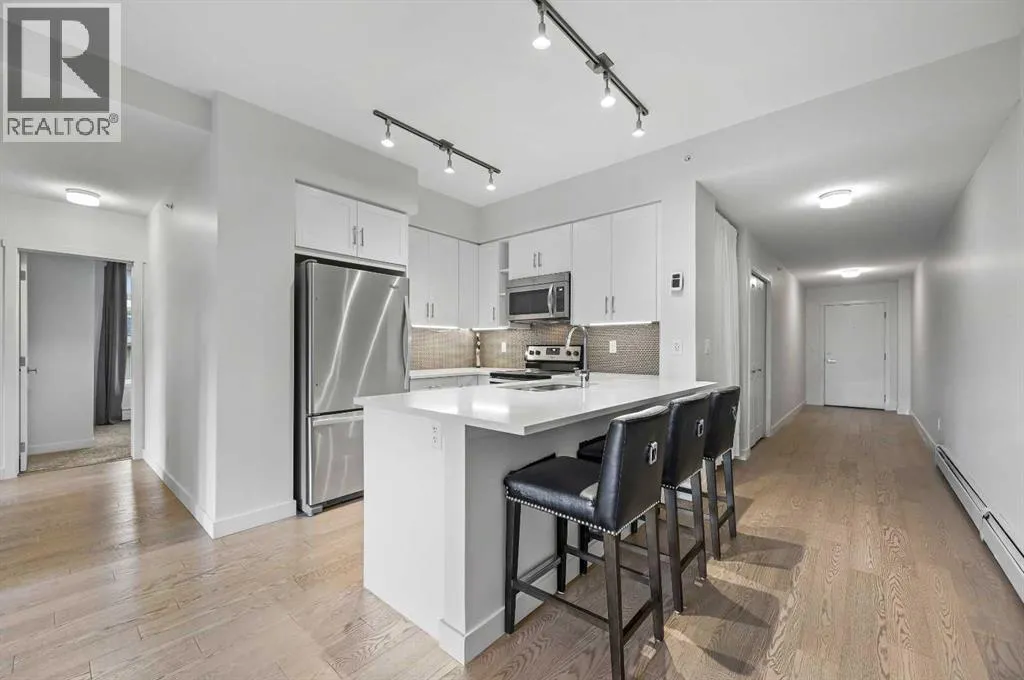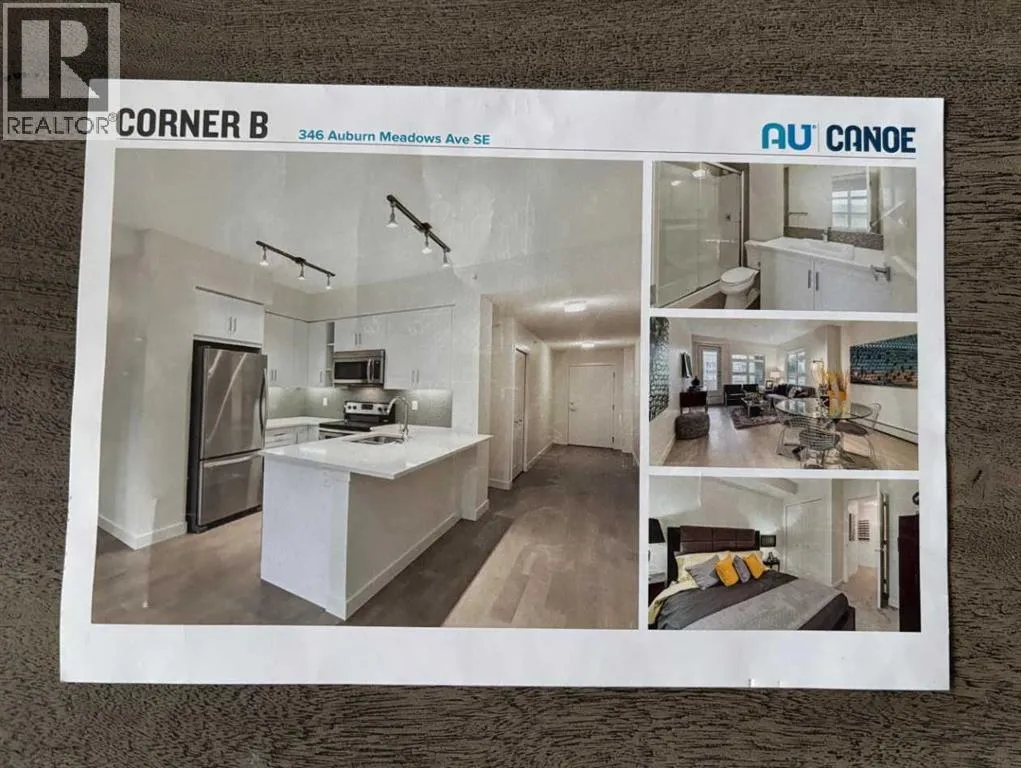 ** NEW PRICE ** Canoe at Auburn Bay - Top Floor Corner Model with Courtyard Views - Quick Possession!! Unbelievable VALUE & DESIGN! The superb condo offers two bedrooms, two bathrooms, a titled indoor parking stall, extra tall windows, a 190 SF covered balcony, and high 9' ceilings. Value Added features â City of Calgary the 2025 Property Assessment is $435,000 ... Check and Compare; 942 RMS sq. ft. of luxurious living space. Loaded with extras... Luxury wide plank engineered flooring, dual pane Low-E windows, modern white painted casings, doors & baseboards, white decora light switches, convenient laundry with storage & stacked washer/dryer. Whirlpool Stainless steel appliance package: fridge with freezer below, OTR microwave, smooth top electric cooktop, and quiet Energy Star-rated tall tub dishwasher. Upgraded Kitchen cabinets with tall upper doors + soft-close drawers + extra floor cabinets + moldings with under-cabinet lighting, quartz island countertops, undermount dual-basin stainless steel sink, full-height glass tile backsplash, pull-out kitchen faucet, dramatic peninsula island with flush eating bar, and room to sit 4. BONUS features: supersized front foyer and private entry! Auburn Bay, a lake lifestyle amenity beyond compare - Central Beach site is the home of the communityâs grand beach area, where residents have exclusive access to sandy beaches, a splash park, tennis courts, play equipment, a fishing pier and non-motorized marina, indoor and outdoor fitness equipment, barbeque pits, a hockey rink and more. The Beach area hosts various activities, including educational and recreational programs, meetings, and private functions. Purposefully designed as the focal point for the community, the Beach area also includes a dedicated skate room and multiple meeting rooms; as a gathering place that will be beloved for generations, the lake is a place of shared laughter and joy, where neighbors gather year-round to enjoy the best of four-season lake living. Ca ll your friendly REALTOR(R) to book a viewing! (id:27476)