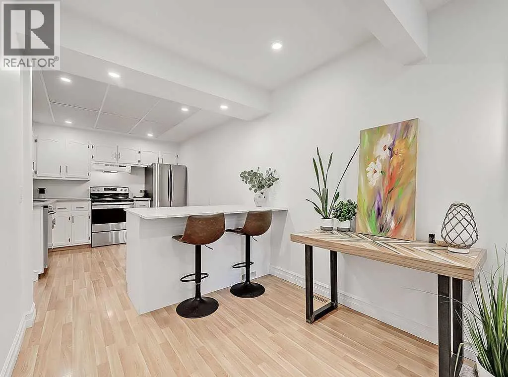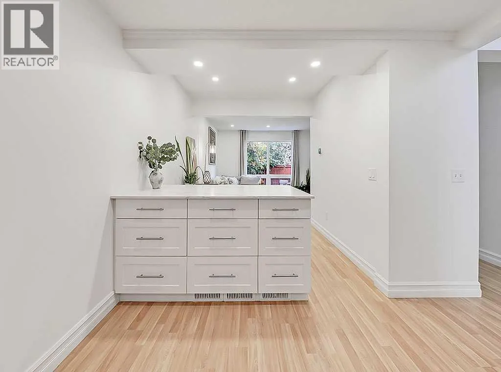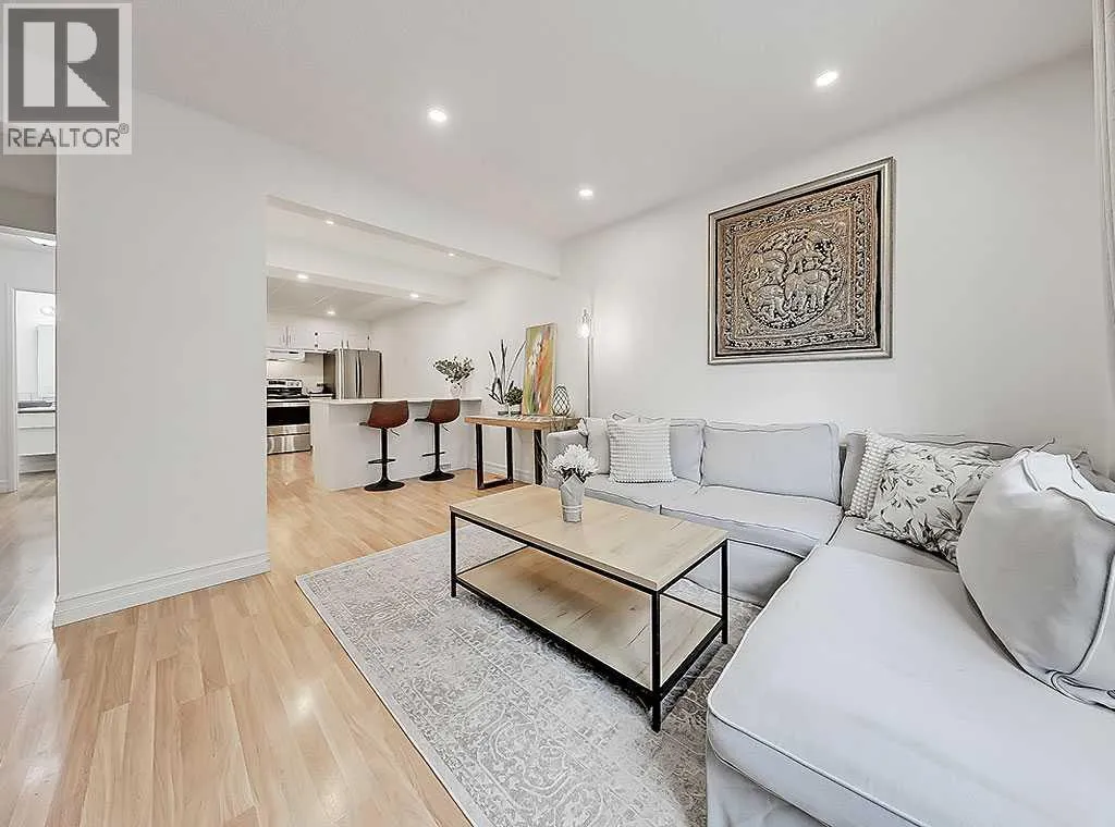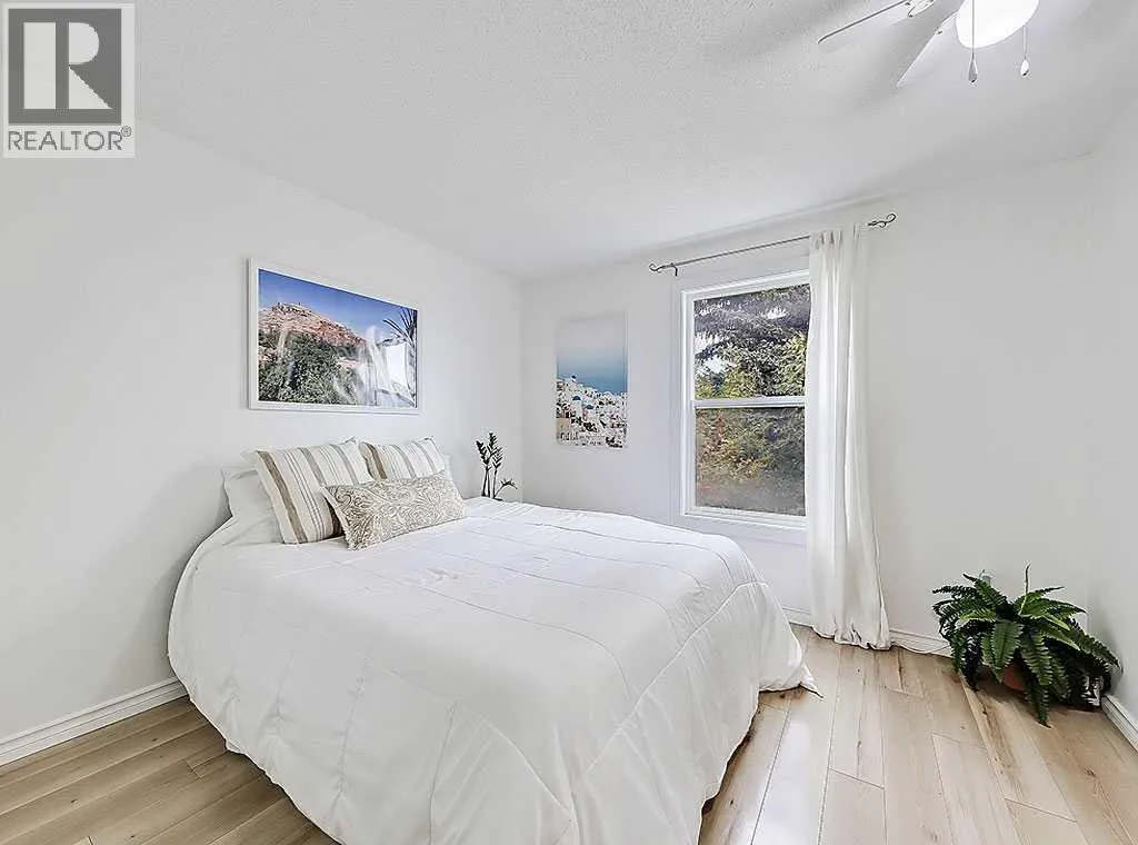 Welcome to the Canyon Glen Townhomes. This nicely updated 2-bedroom, 1.5-bath townhome offers exceptional value with low condo fees, modern updates, and a prime location. Perfect for first-time buyers or investors, this home features a newly renovated bathroom, an updated kitchen, central A/C and a refreshed basement for added living space. The main floor showcases laminate flooring throughout with a spacious front living and dining area that flows seamlessly into the updated kitchen. Upstairs, youâll find two well-sized bedrooms and a beautifully renovated full bath. The lower level is fully finished, offering a large family room and a versatile hobby room or office. Enjoy your fully fenced private yard, ideal for pets, kids, or entertaining. Residents also have access to outstanding amenities including a pool, basketball court, tennis court, and a recreation center. With affordable condo fees, excellent access to transit and the LRT, plus schools and community amenities all within walking distance, this move-in ready home combines comfort, convenience, and style. (id:27476)
