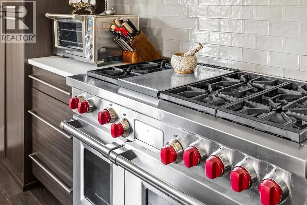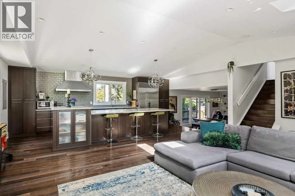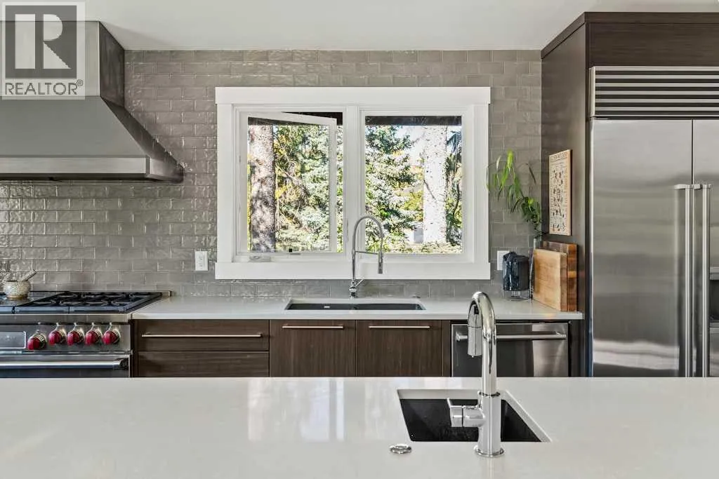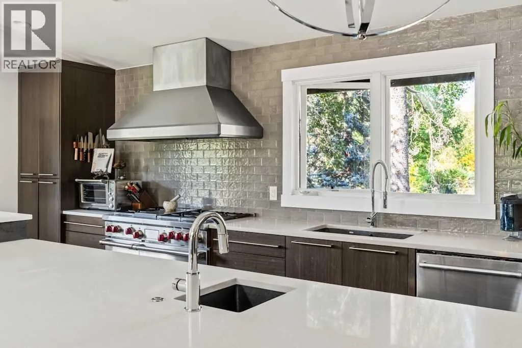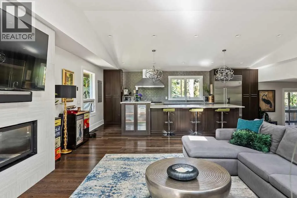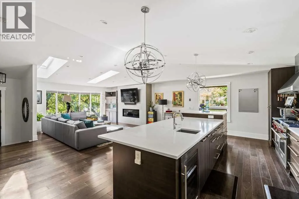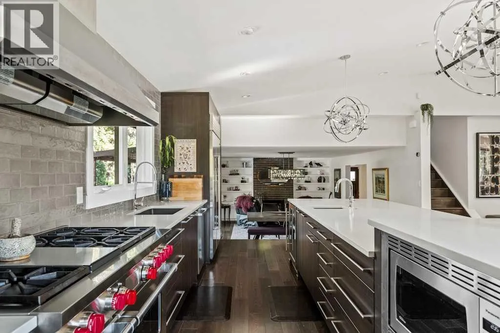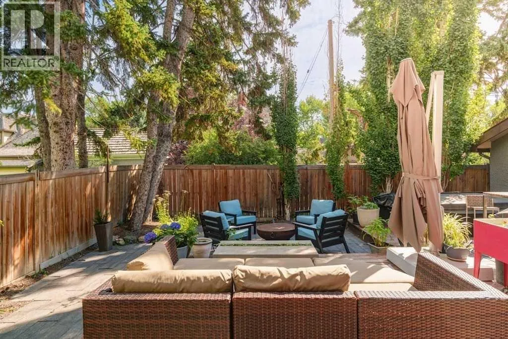 Located on a sunny south and west exposed 7,178 sq. ft. corner lot in highly desirable East Elbow Park, this home was transformed through a comprehensive renovation designed to maximize natural light and create gracious living spaces. Wide-plank hardwood floors flow throughout the main and upper levels, complemented by vaulted ceilings, large skylights, and expansive south-facing windows that flood the interior with light. The living area is anchored by a sleek linear gas fireplace framed with custom built-ins, while the chefâs kitchen impresses with a massive quartz island, dual-fuel 48â Wolf range with double ovens, and Sub-Zero refrigeration. A few steps down, the spacious dining area easily accommodates large gatherings and is currently styled with cozy seating around a wood-burning fireplace. A bright south-facing office/den with custom built-ins makes working from home a pleasure. Completing the main floor is a stylish powder room and a well-designed mudroom with built-in lockers to keep the family organized. Upstairs, the primary suite offers custom built-ins, a walk-in closet, and a stunning 3-piece ensuite. Two additional bedroomsâboth generously sized and filled with natural lightâshare a 4-piece bath. The lower level features a large recreation/media area, a fourth bedroom, a 3-piece bath, and laundry. An expansive storage area of over 500 sq. ft. provides exceptional storage options. The private grounds have been carefully cultivated to include a fantastic garden area with raised beds for vegetables, a dedicated garden for corn and root crops, and a private, low-maintenance patio with multiple seating areas. A built-in hot tub (negotiable) offers a perfect spot to unwind. For even more space for the kids, the popular East Elbow Park playground is only a few blocks away. Elbow Park is a community where neighbours know each other and parks and playgrounds are always full of life. The community centre is a hub of activity year-round, with outdoor skating ri nks in the winter and clay tennis courts in the summer. Itâs just a short stroll to the cityâs best shops and restaurants along 4th Street and 17th Avenue, an easy few-kilometre commute to the downtown core, and an easy walk to the Glencoe Club. A truly unique opportunity to raise your family in one of Calgaryâs most sought-after neighbourhoods. Call today for your private viewing.. (id:27476)
