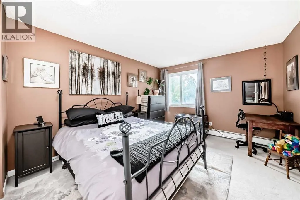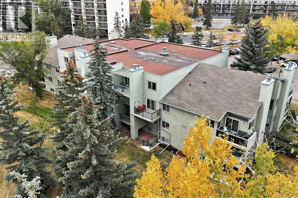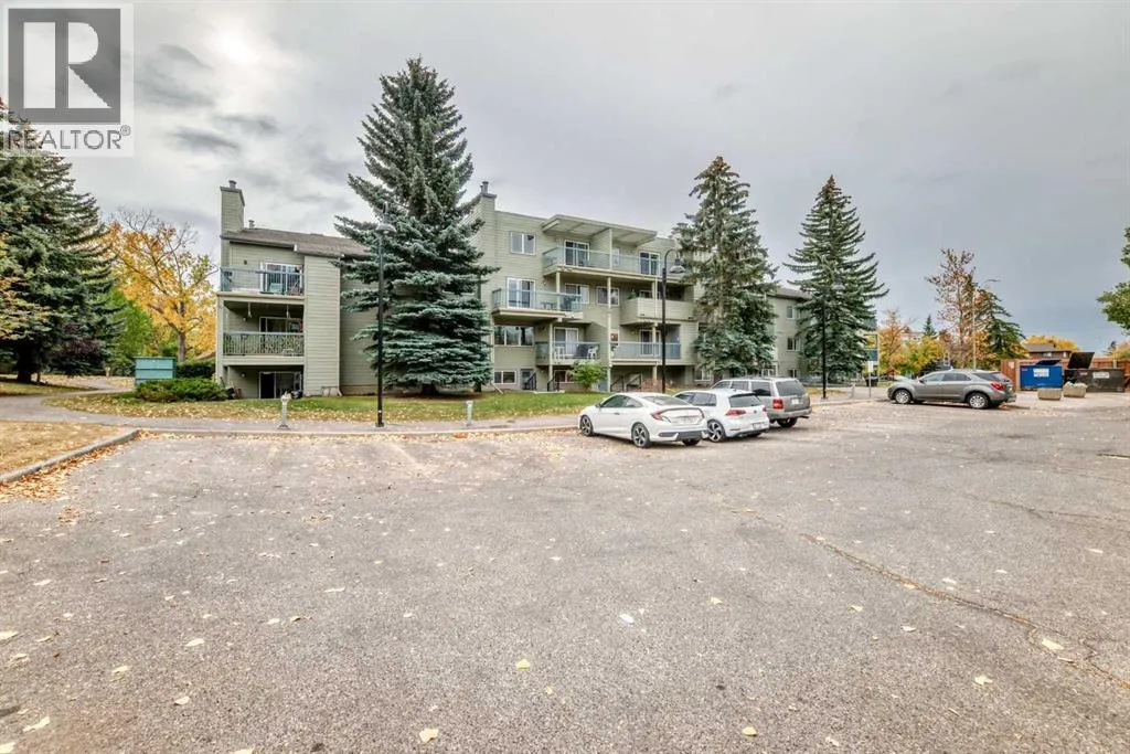 This home is in a tremendous location, close to all amenities including Signal Hill Centre with Superstore, drug stores, Winners, Michaels, restaurants, a theatre, and convenient public transportation. It is only minutes from Sarcee and Stoney Trail, providing quick access throughout the city.Rare to find a Corner condo that offers over 1080 square feet for this price. Unit is well-cared-for and overlooks a beautiful treed park, creating a private and inviting setting . The large foyer provides plenty of space for shoes, coats, and guests to comfortably arrive. Inside, there is a generous storage room measuring four by nine feet, offering an abundance of extra space.The four-piece bathroom features a spacious counter and built-in laundry facilities with additional cabinets above the washer and dryer for storage. The kitchen is impressive with ample cabinetry and counter space, accented with white appliances. The L-shaped living and dining area offers plenty of room for a large table and extra space in the living room with a wood burning fireplace as accent. A sliding patio door opens to a large, covered deck with park views.The master bedroom is exceptionally spacious, complete with a walk-in closet, room for a sitting area, and numerous west-facing windows that fill the space with natural light. A second large bedroom is ideal for guests or a home office. An assigned parking stall, number 79W, is included.This building has seen many recent updates and planned improvements, including updated windows, scheduled painting of Building 60 in May 2026, new carpet in the common area this month, replacement of makeup air units in 2025, and fibre-optic network service being added this year.This condo offers exceptional value with its size, layout, and location. It is truly a property you will want to see. (id:27476)