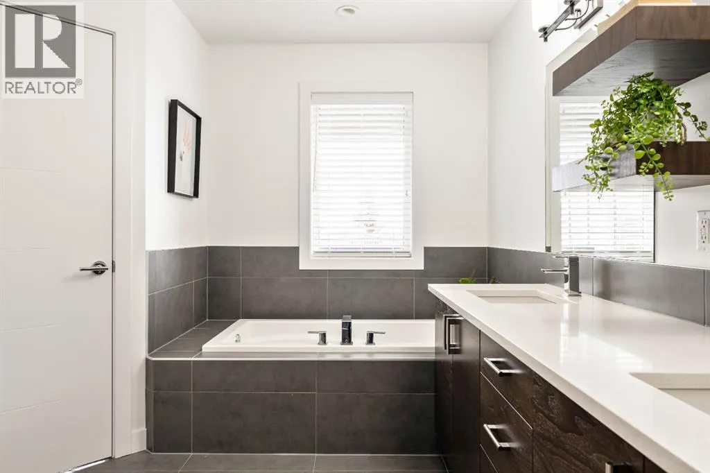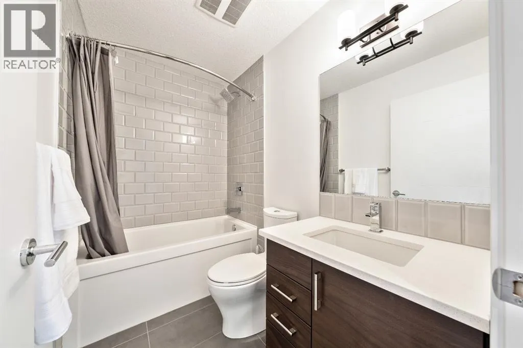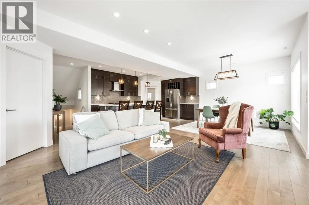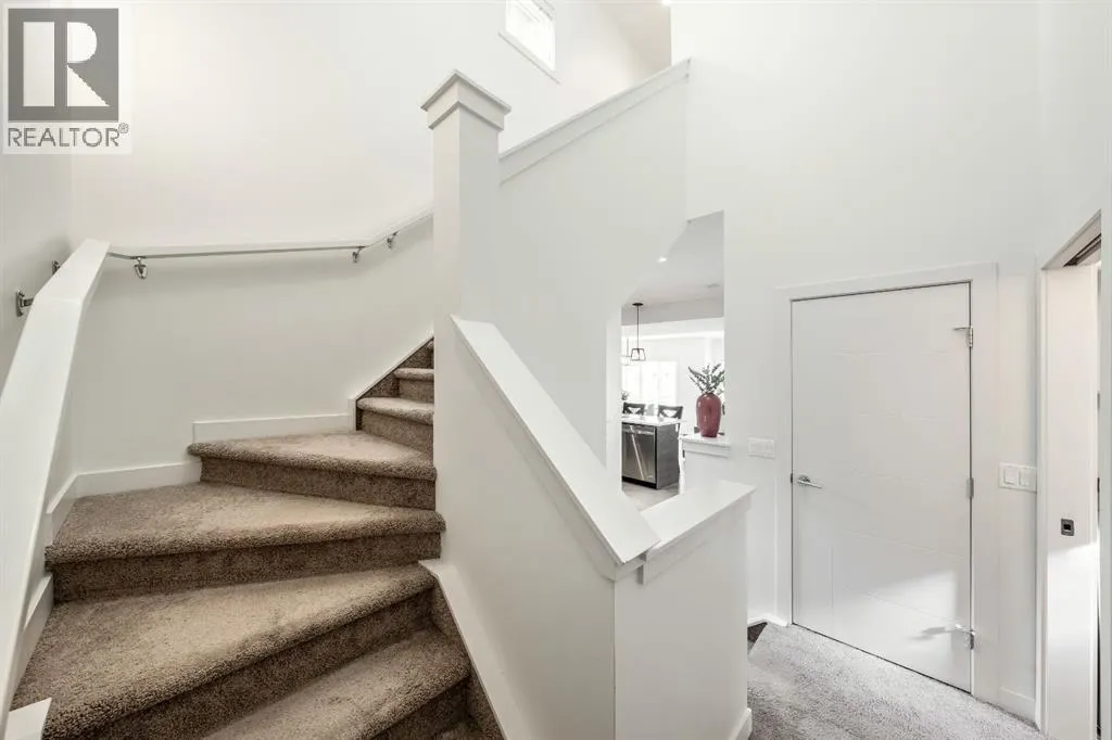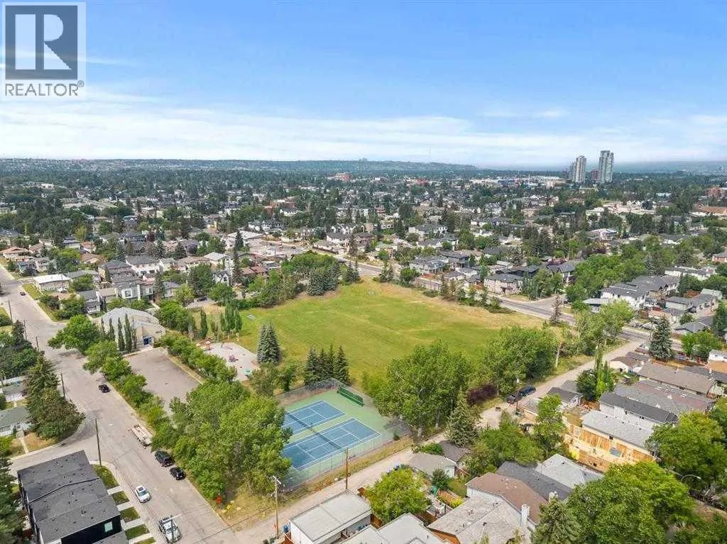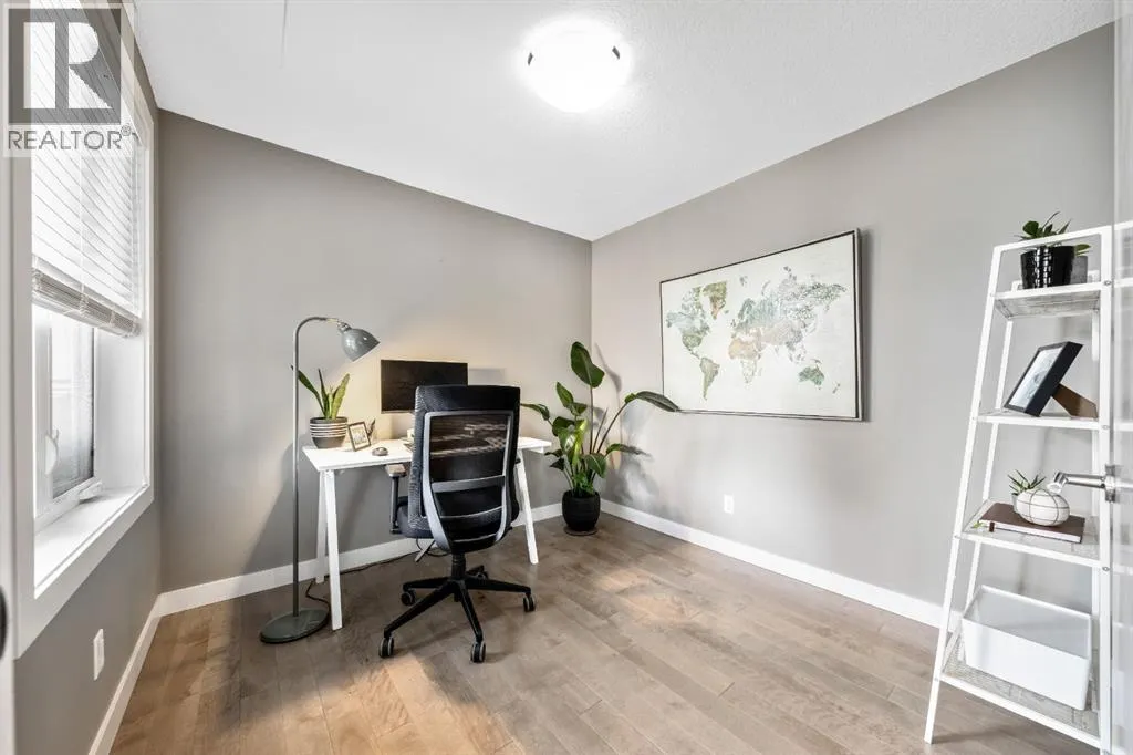 A rare opportunity to live in a luxurious end unit townhome on a quiet street offering over 2000 sq ft in the One of Calgaryâs most desirable inner-city neighborhoods Killarney. This immaculate home has plenty of upgrades; 9â knockdown ceilings, gleaming hardwood floors, upgraded plumbing fixtures, Hunter Douglas blinds, stone counters, custom closets, fresh paint, the comforts of air conditioning and a concrete wall separating you and the one neighbor. Head down the courtyard to unit 4 where you are greeted by a large front foyer and convenient direct access to the heated garage. This space was intentionally designed to be on its own separate level as a drop zone and to keep the mud and mess down and away. Upstairs is flooded with natural light. The massive chef inspired kitchen is a focal point with slow close cabinets that reach to the ceiling, built in wine rack, undercabinet lights, premium SS appliances (including a gas range) and chimney hood fan, an expansive 10-foot island with gorgeous quartz counters, timeless tile backsplash and a large corner pantry for additional storage. Perfect for entertaining the kitchen looks onto the spacious dining room and inviting living room showcasing a gas fireplace with stone detail. Off the living room is a large, covered patio and office perfect for those who work from home, or as a playroom. The powder room is tucked away on its on separate level for privacy and includes side by side laundry with cabinets to keep you organized. On the upper level are two well sized bedrooms one with downtown VIEWS, a 4pc main bath and the primary retreat. This generous sized primary is a true sanctuary with its own private patio a massive walk-in closet and a spa inspired ensuite Including dual sinks, a large soaker tub, and fully tiled shower with 10 mm glass. Beyond Home you will love the lifestyle. Only minutes away from downtown, close to parks, shops, restaurants, schools, the rec center, bow river path system, shaganappi golf co urse and ctrain! Providing endless opportunities for work and play. If you have been searching for a home that balances luxury with livability in an unbeatable location schedule your private tour today! (id:27476)