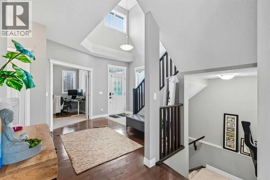 Step inside a home that captures both comfort and style. Each day begins and ends with breathtaking views of the sunrise and sunset, right from your own backyard. The main floor features a welcoming foyer with soaring open-to-above ceilings, a versatile office/den, and a spacious great room anchored by a warm gas fireplace. The dining area flows seamlessly into the kitchen, where youâll find granite countertops, ample cabinetry, a center island with breakfast bar seating, and sleek stainless steel appliances. A convenient powder room completes this level. Upstairs, natural light fills the open bonus room, perfect for family gatherings or relaxation. The upper floor also offers three bedrooms and two full bathrooms, including a luxurious 5-piece ensuite with dual sinks, a soaker tub, and a separate shower. For added ease, the laundry room is also located on this level. The basement is already framed, providing the perfect opportunity to customize and finish to your taste. Outside, enjoy the fully finished double attached garage, a two-tiered deck designed for outdoor living, and sweeping views youâll never tire of. Don't miss out! (id:27476)
