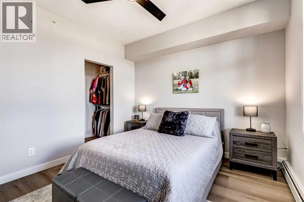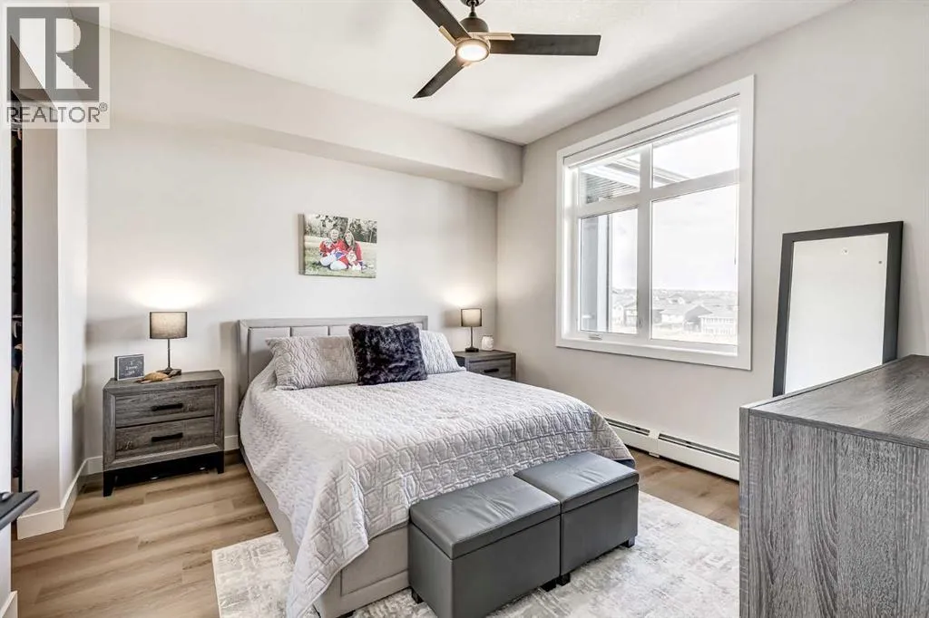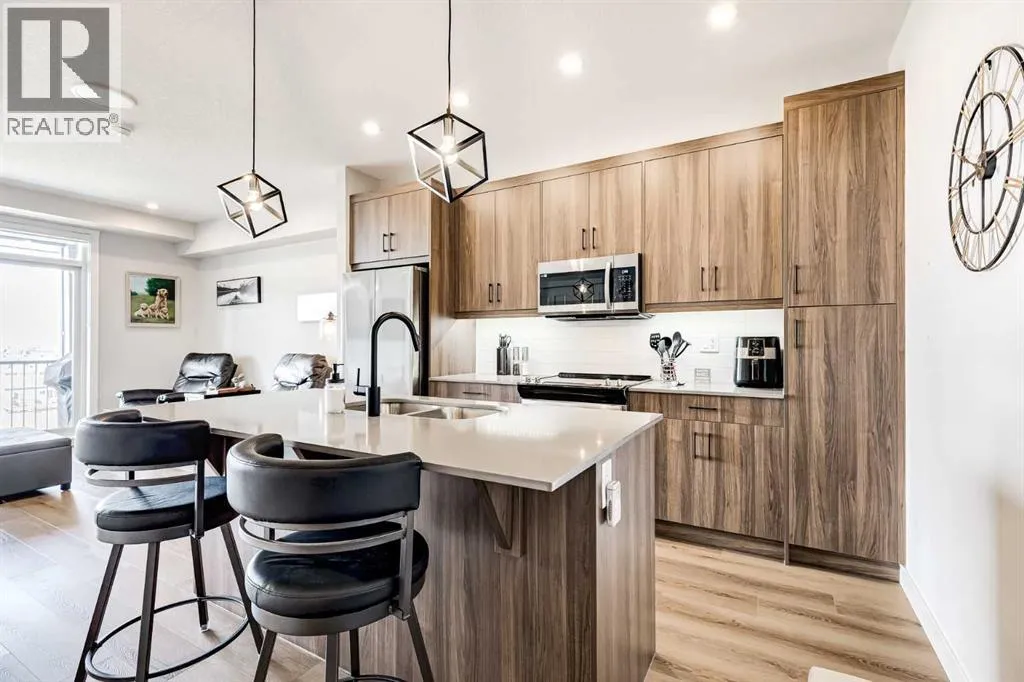 Welcome to this stunning, fully furnished, modern 1-bedroom condoâan ideal space for first-time buyers, savvy investors, or anyone seeking a comfortable, low-maintenance home. Built in 2023, this beautifully designed unit features a spacious bedroom with large windows that flood the space with natural light, complemented by a sleek 4-piece ensuite bathroom. The open-concept kitchen boasts stainless steel appliances, an eat-up island, and flows seamlessly into a bright living areaâperfect for relaxing or entertaining guests. Step outside onto your private balcony to enjoy fresh air and scenic views. Additional highlights include in-unit laundry with a full-size washer and dryer, air conditioning, and a convenient half-bathroom for guests. The condo also comes with a titled underground parking stall and a separate storage locker. Located in a quiet, well-maintained complex, this home offers unmatched convenience with quick access to major routes including Stoney Trail, Sarcee Trail, and Shaganappi Trail. You're just minutes away from schools, public transit, shopping centers, dining options, and key business hubs. Pet-friendly with board approval. This condo blends style, function, and locationâmaking it a perfect place to call home or a valuable addition to your investment portfolio. (id:27476)