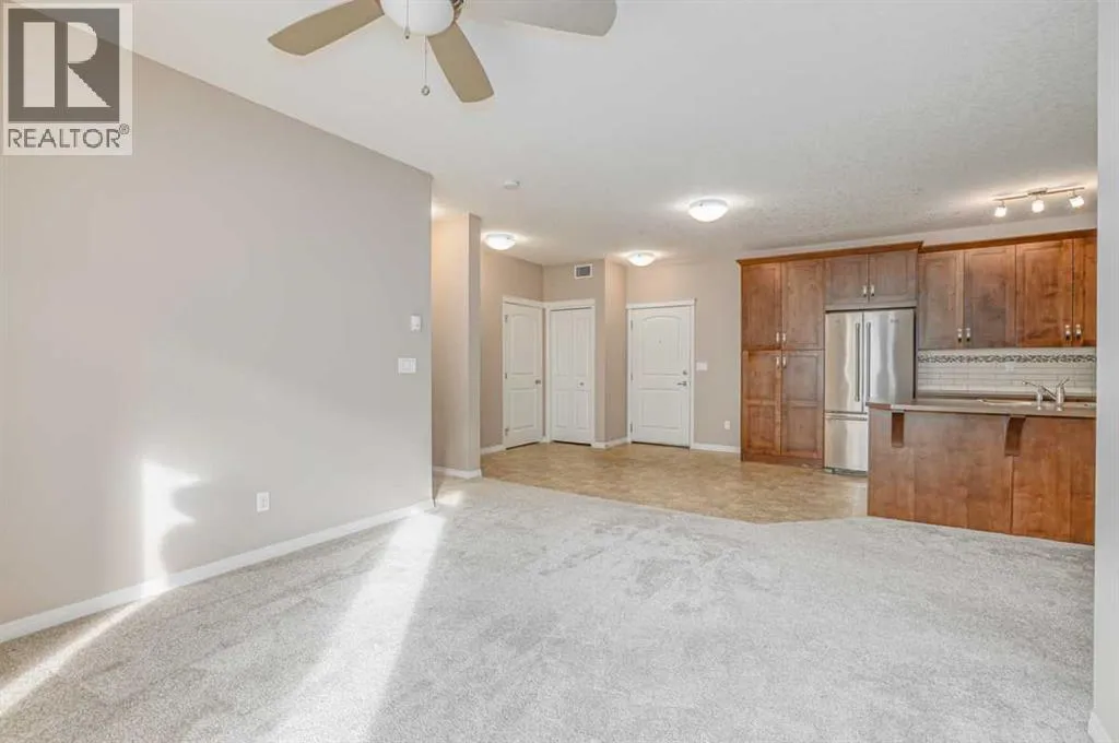 Beautifully updated unit facing into the courtyard, this 2-bedroom, 2-bathroom condo has been meticulously maintained. Recently refreshed with new paint and plush carpet, this bright and airy unit features an open layout, 9-foot ceilings, incredible south-facing windows with views overlooking the courtyard. The thoughtful layout includes a spacious living room and upgraded kitchen perfect for entertaining or just enjoying some quiet time along with the convenience of in-suite laundry. This unit comes complete with a titled underground parking stall and an assigned storage locker conveniently located right in front of the parking stall, making organization a breeze. All this in a well managed complex and walking distance to multiple parks, schools and Cranston Ridge pathways, connecting you to miles of walking trails. With quick and easy access to Deerfoot Trail, Stoney Trail, shopping, schools, and the South Campus Hospital, this prime location offers unparalleled accessibility to everything you need. (id:27476)