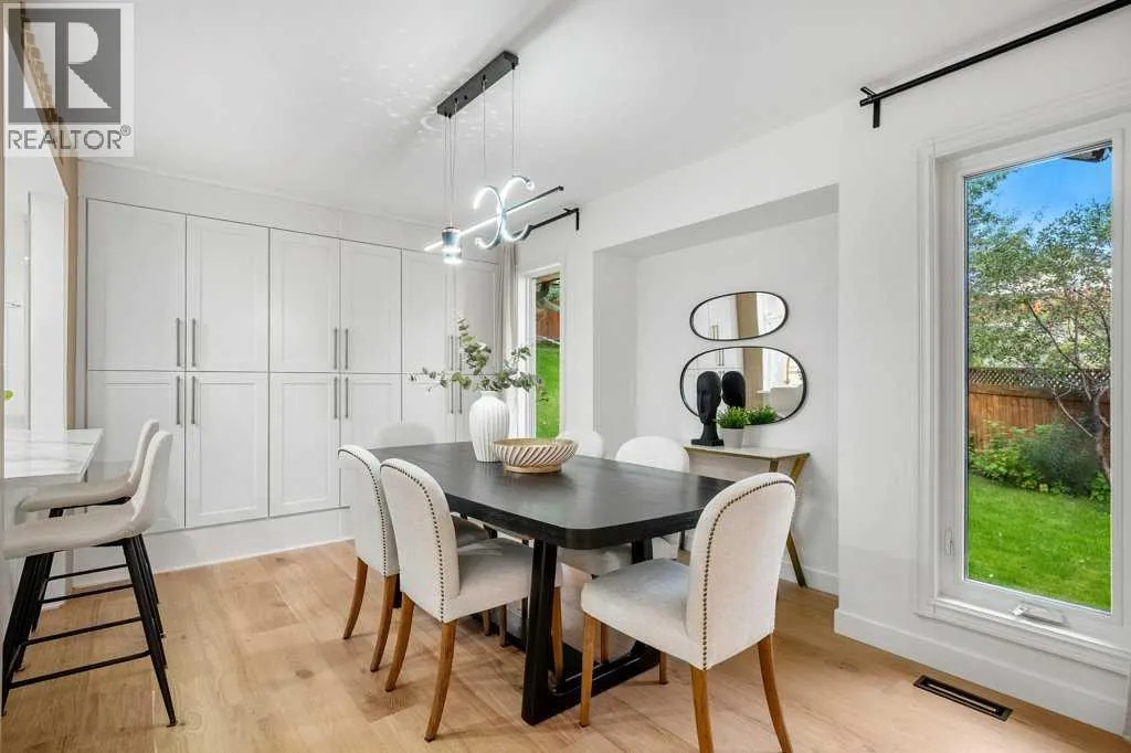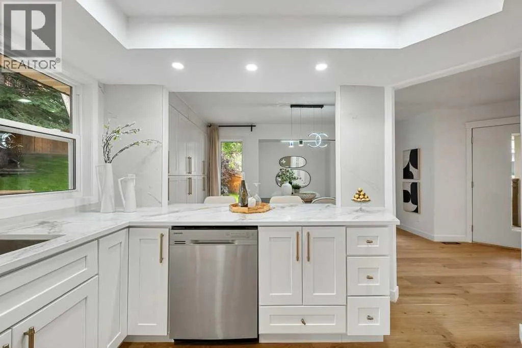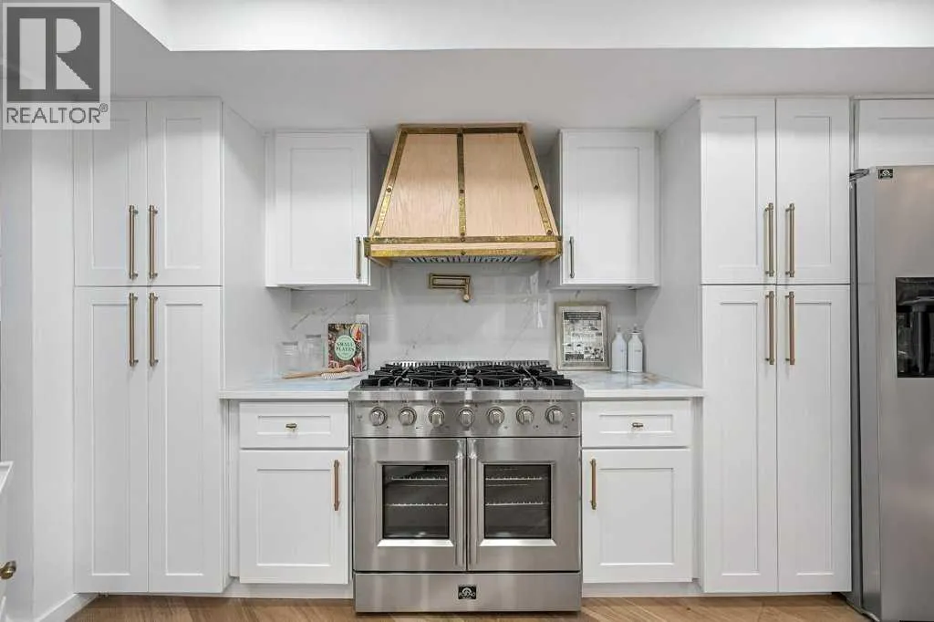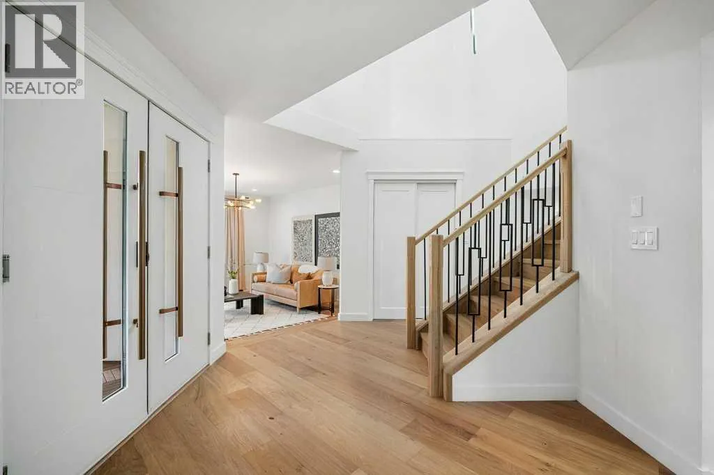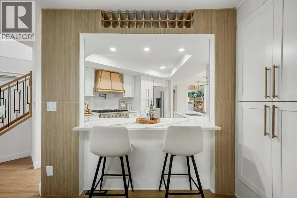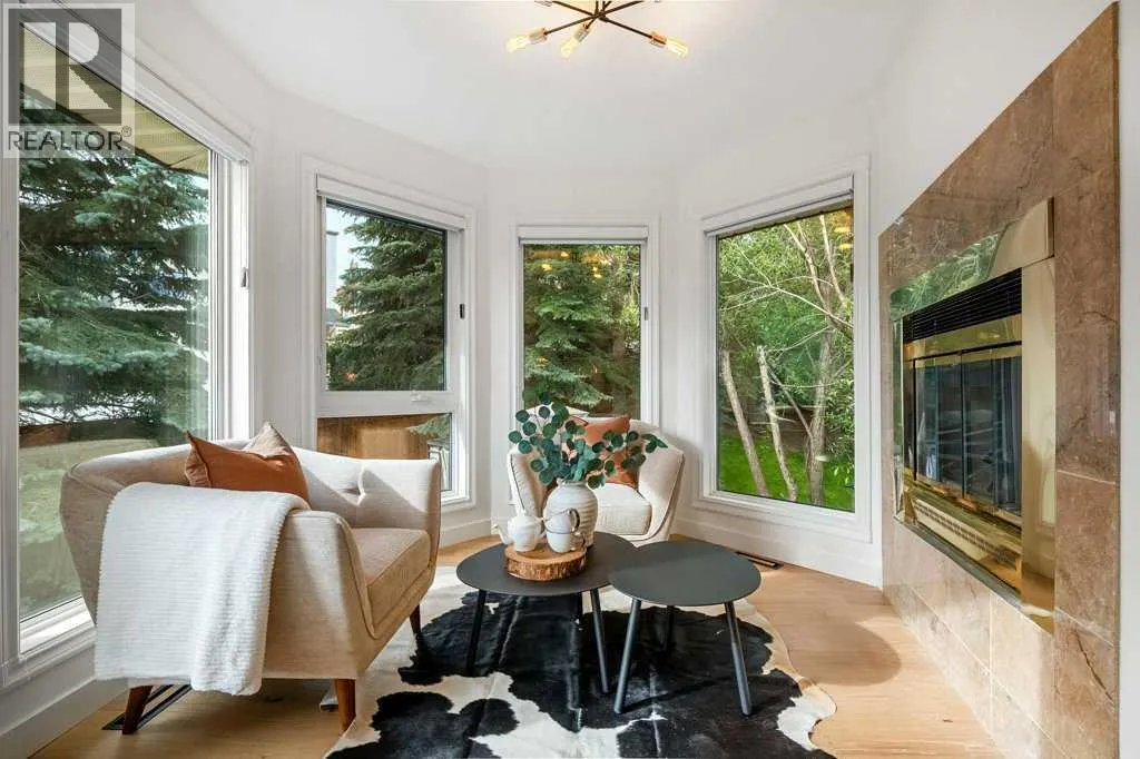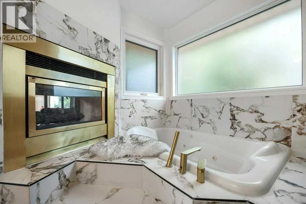 Welcome to 113 Straddock Terrace SW, an exquisitely renovated residence in the prestigious community of Strathcona Park. Nestled on a quiet cul-de-sac, this five-bedroom, three-and-a-half-bathroom home boasts over 2,000 sq. ft. of thoughtfully designed living space, blending timeless style with modern convenience. From the moment you arrive, the brand-new front porch and updated entry door create a warm first impression, leading into an open-concept interior filled with natural light streaming through new triple-pane windows. The main floor showcases engineered white oak hardwood flooring, refined finishings, and a cozy gas fireplace, while the heart of the homeâthe kitchenâfeatures quartz countertops, premium cabinetry, and all-new high-end Forno appliances including a 36â gas range and matching refrigerator. A unique filtered water system is integrated from sink to fridge and stove spout, complemented by new designer lighting and smart outlet upgrades throughout. Upstairs, the primary suite is a true retreat, offering a private balcony, sitting or vanity area, spacious ensuite, and a remarkably versatile walk-in closet that could even function as an additional room, while an upper-level fireplaceâadaptable for wood or gasâadds charm and warmth. The fully finished basement extends the living space with a media room, full bathroom, abundant storage, and two heated storage rooms cleverly built into the crawlspace. This unique split-level design also provides a flexible room off the main floor that can serve as an office, teen retreat, or multipurpose area. Outdoor living shines on the southwest-facing pie lot, where mature trees create a private oasis. Two decks offer endless possibilitiesâone perfect for outdoor relaxation and another featuring a hot tubâwhile a cherry tree adds seasonal beauty to the backyard retreat. With over $200,000 in renovations, freshly painted stucco siding, new window coverings, and a recently inspected roof in excellent condition, this h ome has been transformed into a stylish and functional masterpiece. Blending refined design, a spacious and adaptable layout, and exceptional outdoor spaces, 113 Straddock Terrace SW delivers a lifestyle of elegance and comfort in one of Calgaryâs most desirable neighbourhoods filled with top ranked public and privates schools, paths, parks, shopping districts, with short access to downtown core. This is a one of a kind property in Strathcona Park. (id:27476)