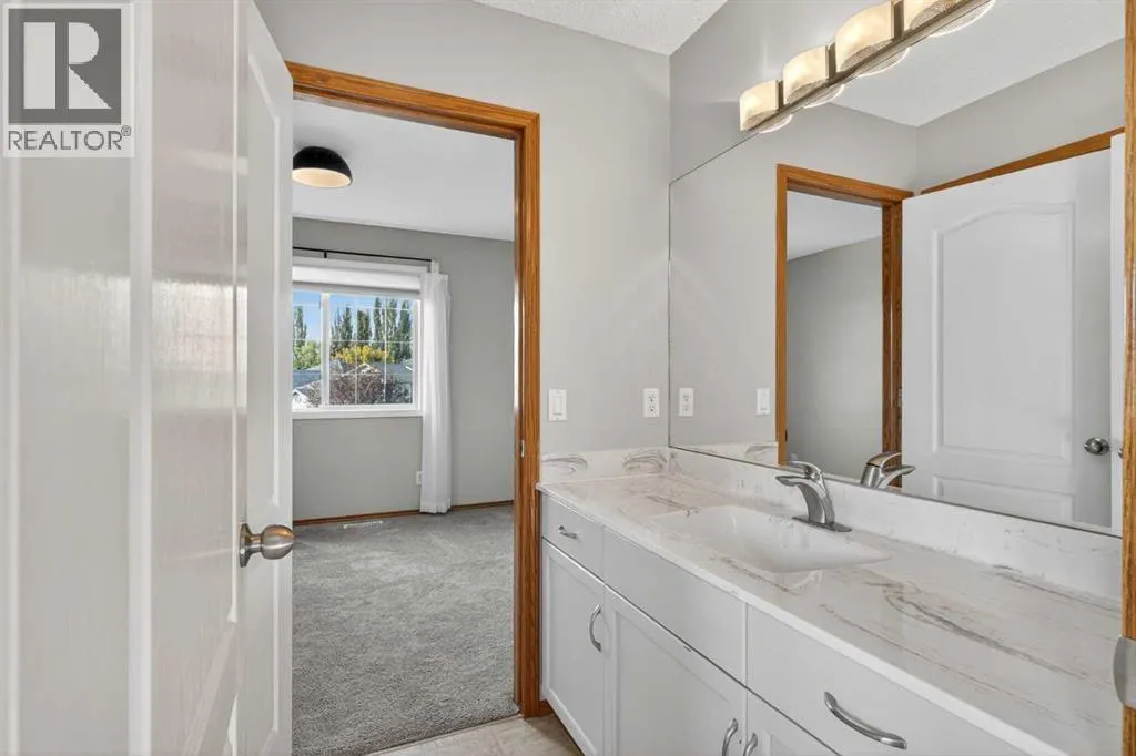 First, check out the NEW PRICE on this beauty, look for the 3D iGuide Link/Floor Plans - RPR available too! GREAT combination for the perfect home: a private 6800+ square foot landscaped South pie lot, 2-tier deck, shed and treed garden beds, set in a quiet Crescent with double attached garage, almost 2350 sq.ft. developed, upgraded finishings, topped off with only 2 prior owners. Be part of Calgary's most popular vibrant quadrant: prime amenities, Ring Roads, Deerfoot, 130th Ave & 52nd Street SE accesses, and minutes to Mountain Park School, multiple shopping locales and the Bow River pathways!This beautiful home starts with a vaulted foyer & closet, 2-piece bath, and laundry/mud area from the garage - convenience and efficiency at each entry. The hall passes a central Den/Flex, and goes into the unique sunken-living room with full-height fireplace wall, L-shaped kitchen/corner pantry with stainless appliances, and a spacious dining room, naturally lit by huge windows and modern lighting, and clean tile/laminate floors. Exit to the incredible deck, complete with built-in bench and privacy screening, for all-season enjoyment of the sun and Chinook weather.Upstairs, two of the three bedrooms can hold full King-sized beds, dressers or wardrobes, and both have walk-in or step-in closets. There are two complete ensuite bathrooms - the second is split into a sink/wash room with tub/shower and toilet in their own space, between the 2nd and 3rd bedrooms, and a shared linen completes the floor.Last, the finished basement layout has a pantry/canning storage, desk/study nook with built-in shelves, then - where the electrical room is - a rec/games area with window is partly separated from the theatre/media at the rear. Utility is laid out so a big hobby (or future guest bed) room with window is on one half, with tons of storage, and the furnace are by the stairs. A tankless/instant hot water heater increases efficiency, and there is nothing left out of this great home - but a new owner! (id:27476)