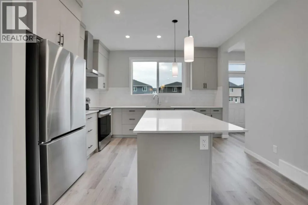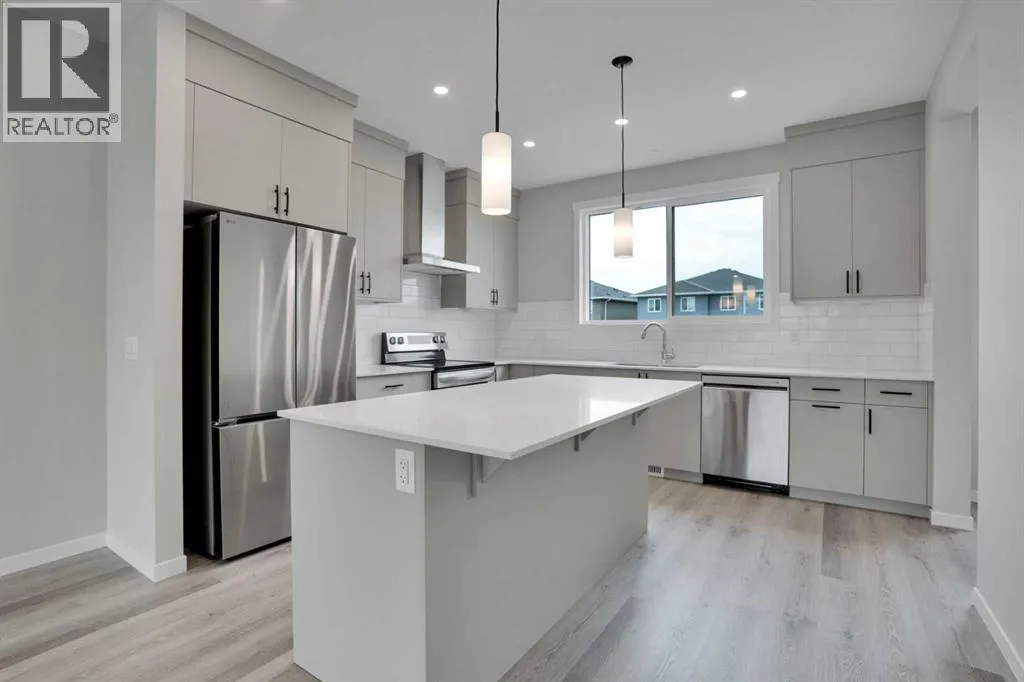 **$40,000 reduction for quick sale**Welcome to this stunning brand-new home built by Anthem Homes in the highly desirable community of Cornerstone, where every amenity is at your doorstep and major highways are easily accessible. The striking modern front elevation with composite siding creates an impressive first impression. Inside, the open-concept main floor features a bright living area with large windows, a spacious dining area, a convenient 2-piece powder room, and a chefâs kitchen equipped with stainless steel appliances, ceiling-height cabinets, a chimney hood fan, and an oversized island perfect for gatherings. Upstairs, youâll find three generous bedrooms, two full bathrooms, and a laundry area. The primary suite is complete with its own ensuite and walk-in closet. The basement, with its side entrance, 9-foot ceilings, two large windows, and rough-ins for both a bathroom and a kitchen, offers excellent potential for future development. (id:27476)