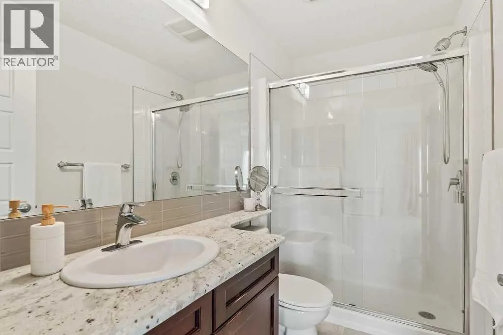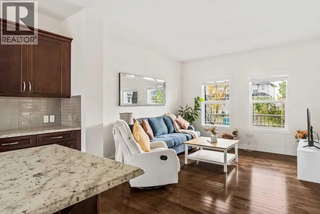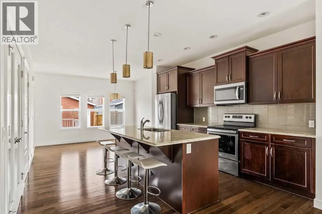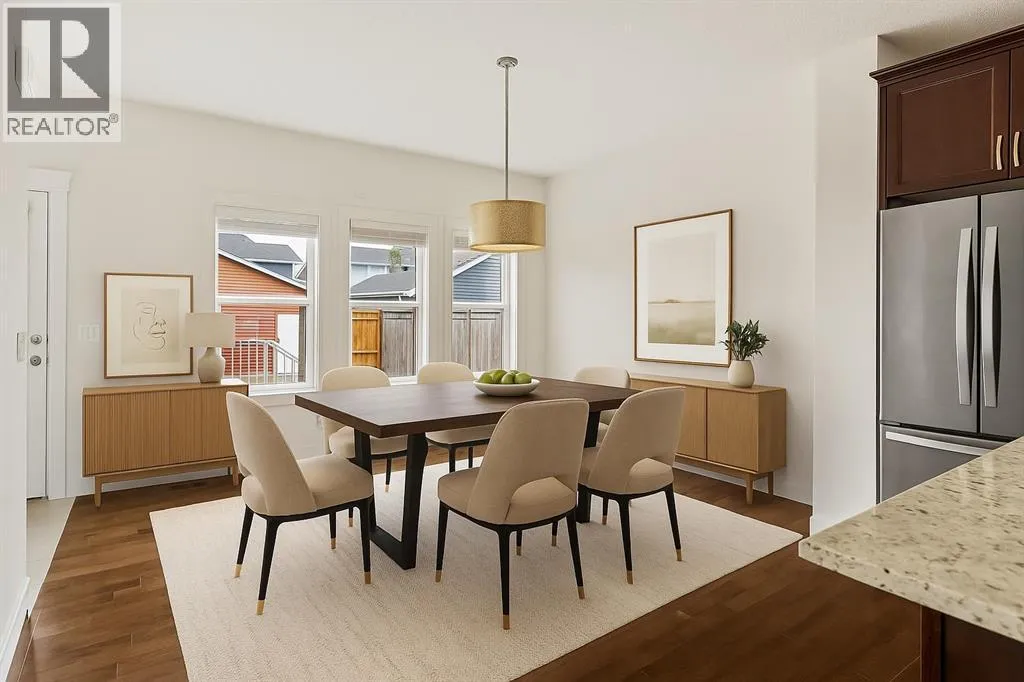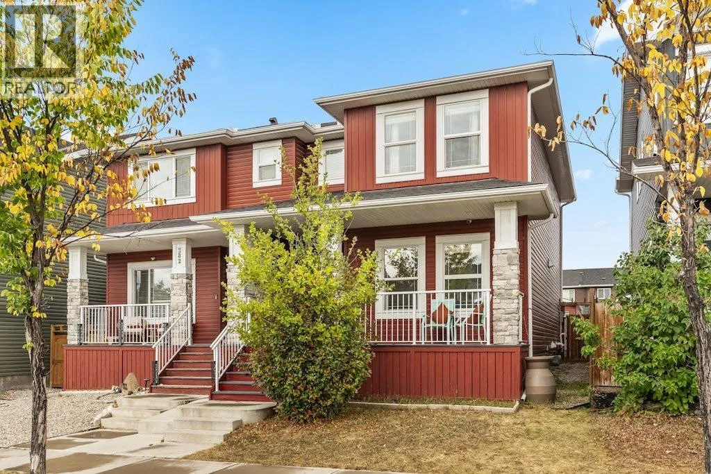 This beautifully maintained semi-detached home is fully move-in ready and just minutes from countless amenities. Located in the desirable community of Redstone, this ideally situated property offers 3 bedrooms and 2.5 bathrooms, perfectly balancing style and functionality. Itâs an excellent fit for a young couple, investor, or professional looking for both comfort and convenience. At the front entry, a covered porch provides the perfect spot to enjoy your morning coffee or tea. Inside, the main level features an open-concept layout with 9-foot ceilings and rich hardwood flooring flowing throughout the main living areas. The spacious front living room features a wall of south-facing windows, filling the home with natural light from morning to evening. The kitchen is thoughtfully positioned between the dining and living areas, making it ideal for entertaining guests or keeping an eye on young children. The timeless kitchen includes rich wood cabinetry with crown moulding, granite countertops, a subway tile backsplash, a suite of stainless-steel appliances, a large island, and a spacious pantry. At the rear of the home, the dining room overlooks the deck and backyard, offering ample space to host large dinners. A 2-piece powder room and a convenient rear mudroom complete the main level. Upstairs, the home features 3 bedrooms and 2 full bathrooms. The generous primary suite is complete with a 3-piece ensuite featuring a walk-in shower, as well as a large walk-in closet. Two additional bedrooms, a full bathroom, and an upper-level laundry area provide added comfort and functionality for daily living. The lower level offers endless potential for future development, with space for a 4th bedroom, family room, and bathroom. The private backyard is fully fenced and landscaped, providing plenty of green space for family enjoyment. A large deck offers the perfect setting for summer barbecues and entertaining. Completing the property is a brand-new double garage (2025), accessed by a paved alleyway, ensuring vehicles and belongings remain clean and secure year-round. This well-cared-for home has also received a full exterior update in 2025, including new siding, roof, fascia, and eaves, offering peace of mind for years to come. With possession available before the end of the year, this property is ready to welcome its next owners. (id:27476)