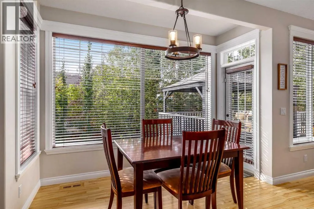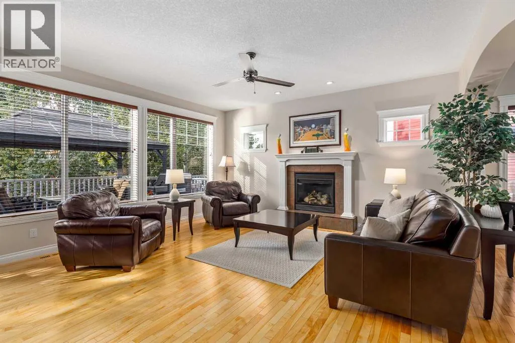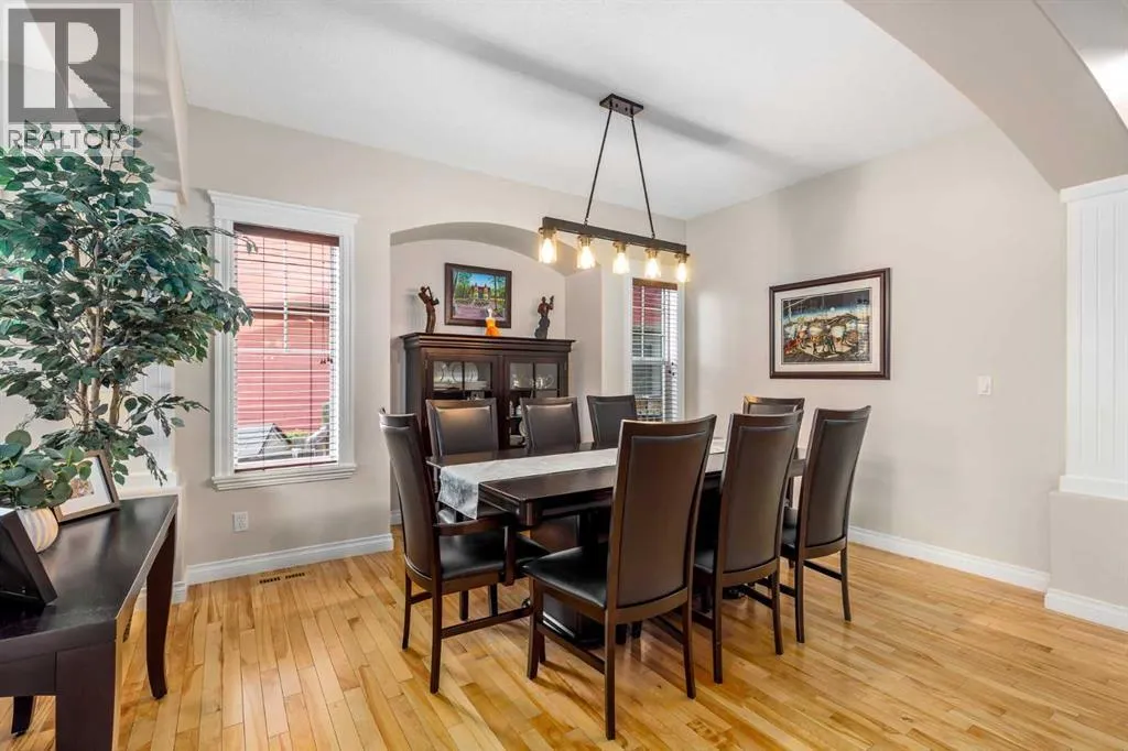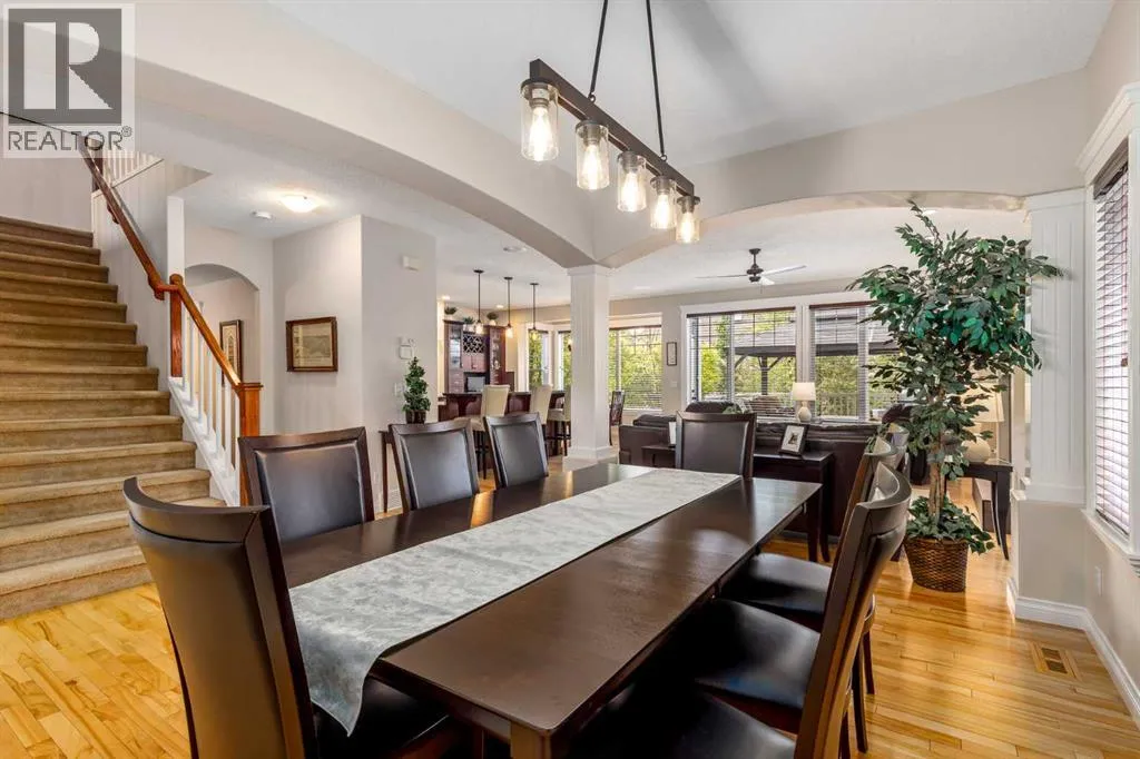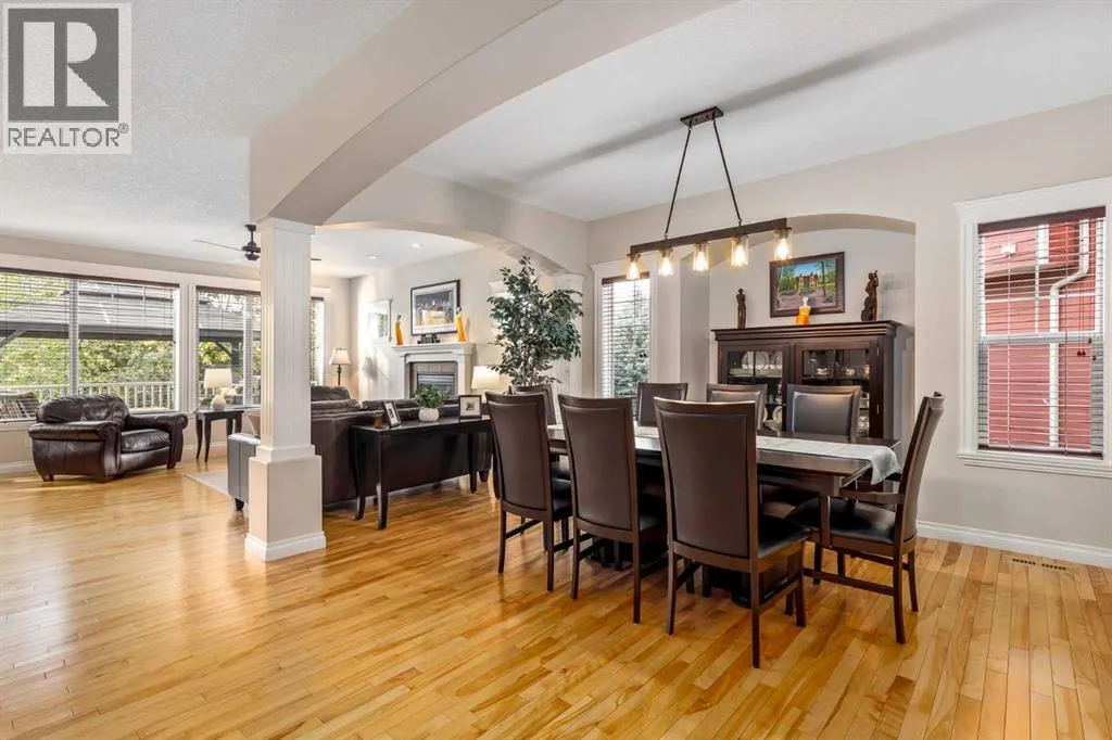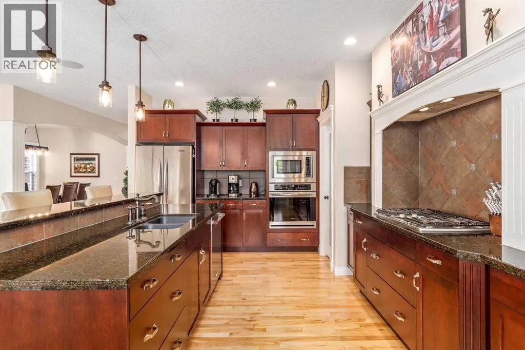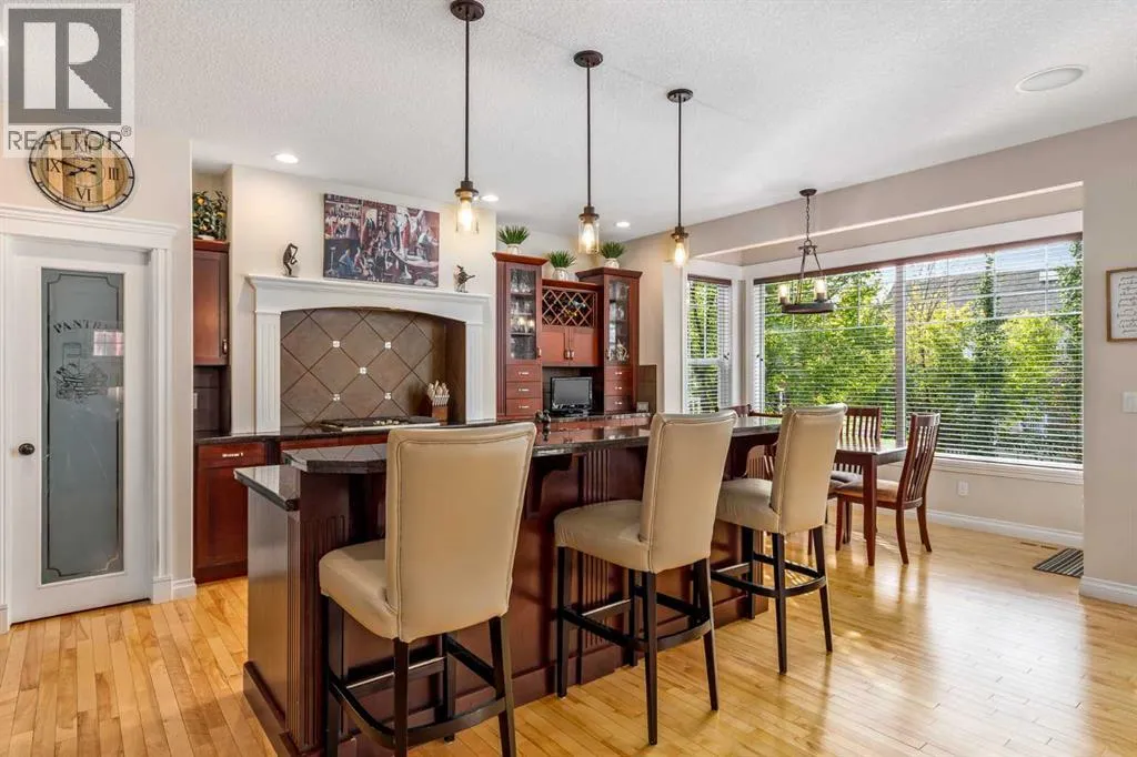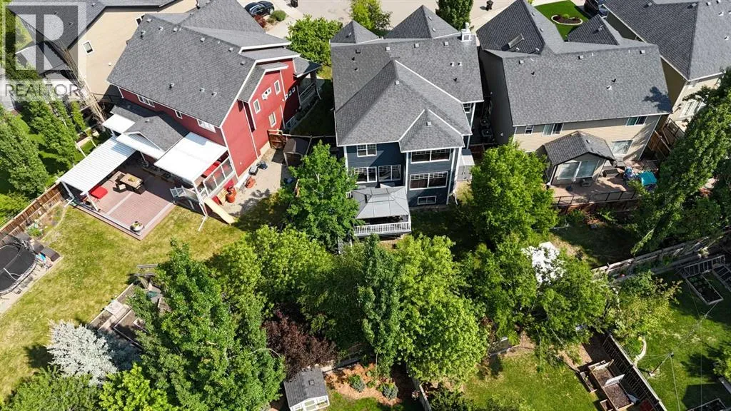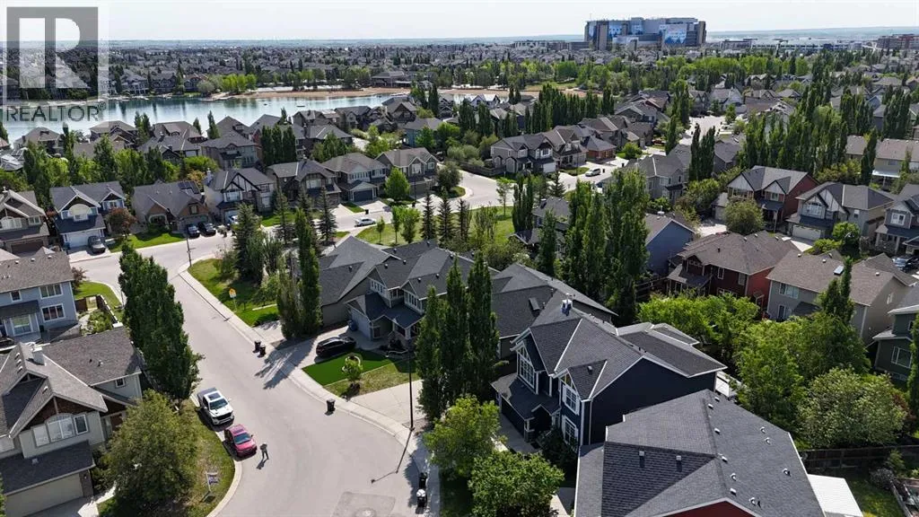 Welcome to this meticulously maintained, original-owner Morrison-built home tucked away on a quiet crescent in the heart of Auburn Bay. With an oversized pie-shaped, southwest-facing lot thatâs both well-treed and private, and just four houses from the playground, this property perfectly blends family living with an unbeatable location. Step inside the vaulted front entry, where a spacious den sets the stage for a home office or study. A formal dining room with bright windows and a niche adds elegance for entertaining. At the back of the home, a welcoming family room with a central gas fireplace flows into the expansive kitchen and sunny breakfast nook. The kitchen features a large island with raised breakfast bar, gas stove, dark stained cabinetry, sleek black quartz countertops, stainless steel appliances, and a classic box-style hoodfan that gives the space an elevated, timeless feel. A built-in bar with wine rack and glass accents doubles as a coffee station, while a full pantry keeps everything organized. Blonde hardwood runs throughout the main level, and a practical mudroom with a 2-piece bath connects to the double garage. Upstairs, the vaulted bonus room offers a cozy corner fireplace and is surrounded by open railings that carry throughout the upper hallway, giving the entire level a bright, open feel. Two generously sized kidsâ bedrooms, a 4-piece bath, and an upper laundry room add family-friendly convenience. The primary retreat is a showstopper with dual French doors, a bay-window sitting area, massive walk-in closet, and a spa-inspired ensuite featuring dual sinks with granite counters, a large corner soaker tub, and a stand-alone shower. The fully finished basement offers even more living space with a large rec room (with barn door separation), a full-sized bedroom, 4-piece bath, sunshine windows, and loads of storage. It also includes a custom wine room â perfect for collectors and entertainers alike. Berber carpet throughout adds warmth, while cent ral A/C keeps the home comfortable year-round. Outside is where this home truly shines. The oversized, pie-shaped lot is surrounded by mature trees, offering privacy and serenity rarely found in the community. A large back deck with gazebo overlooks the yard, while a smartly designed dog run extends directly from the deck for ultimate convenience. With a southwest-facing backyard, youâll enjoy sun all day and evening â perfect for summer gatherings. And of course, life in Auburn Bay means year-round lake access and endless recreation: swimming, paddleboarding, skating, fishing, and more. This home is also located just a short walk from the communityâs main beach entrance, making lake life part of your everyday routine. Add in schools, parks, shopping, restaurants, the South Health Campus, YMCA, and easy access to Deerfoot and Stoney Trail â and youâve found a community that offers it all. This is more than a home. Itâs a lifestyle in one of Calgaryâs most desirable lake communities. (id:27476)