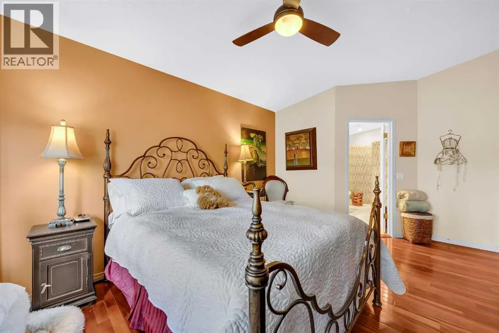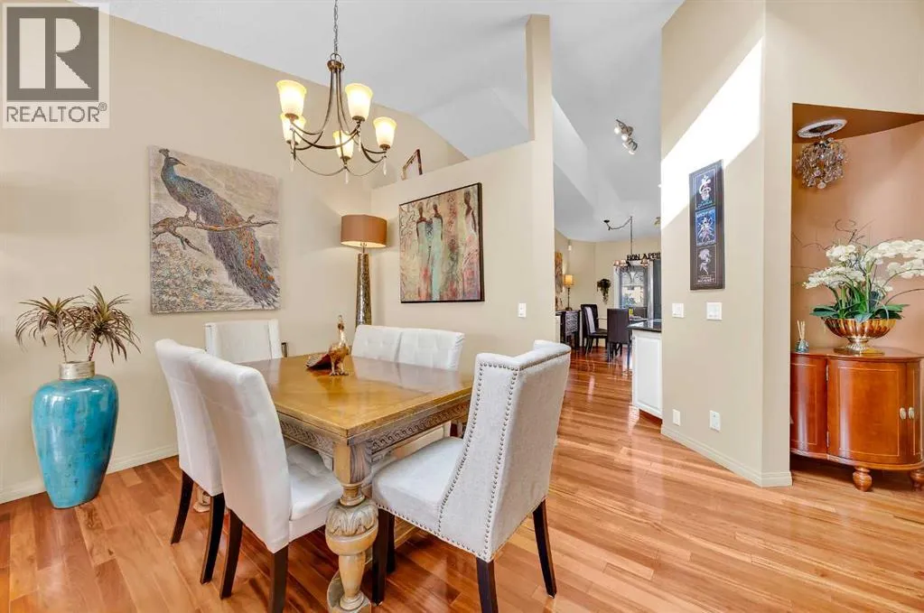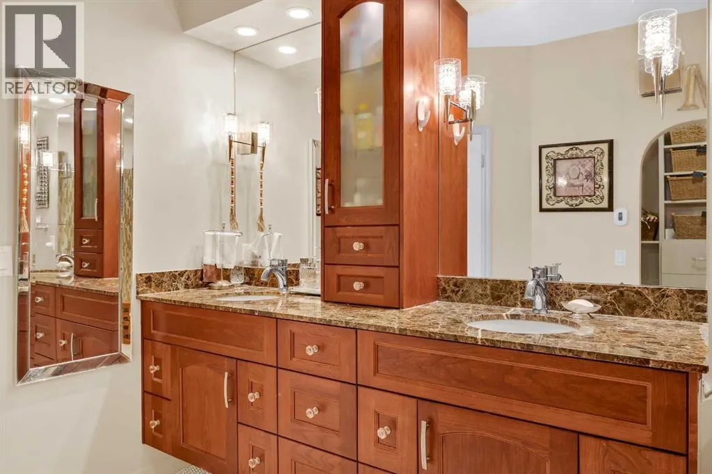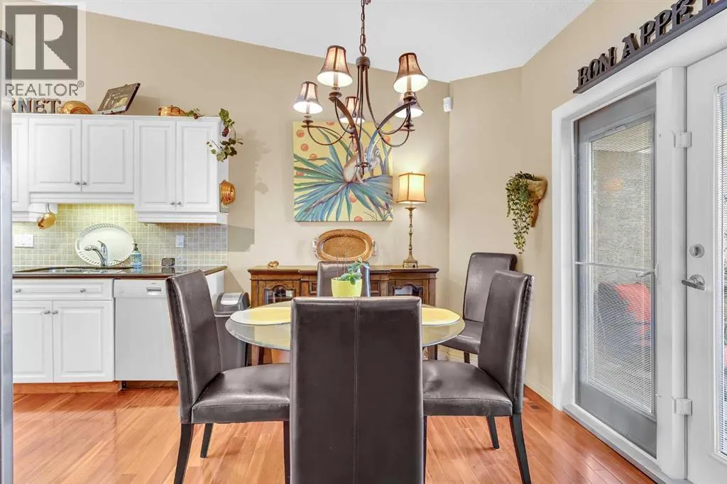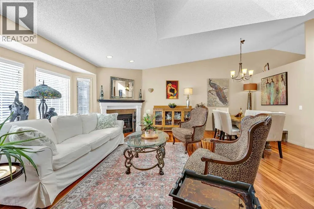 Elegant 2-Bedroom Bungalow Villa in Christie Gardens â Over 2,400 sq. ft. of Living Space.Nestled in one of the most desirable and serene spots within Christie Gardens, this 2-bedroom bungalow villa offers over 2,400 sq. ft. of thoughtfully designed living space. Enjoy a private and tranquil setting surrounded by mature trees, a secluded backyard backing onto a huge ravine with no future development, and an upper-level deckâperfect for relaxing or entertaining outdoors.The main floor impresses with Brazilian Tigerwood hardwood flooring, soaring vaulted ceilings with skylights, and an open-concept living area. The modern kitchen features quartz countertops, stainless steel appliances, and ample cabinetry. The luxurious primary suite boasts a spa-inspired 4-piece ensuite with marble counters, in-floor heating, custom cabinetry, a walk-in closet, and a striking mosaic-tiled, no-threshold entry shower. A 2-piece powder room and a well-appointed laundry room with extra storage complete the main level.The walk-out basement expands your living space with a spacious rec room, an additional bedroom, and a full bathroom with a Jacuzzi soaker tubâideal for family or guests.This pet-friendly, no-age-restriction complex is perfectly situated near Sunterra West Market Square, Westhills Towne Centre, Sirocco C-Train Station, Westside Recreation Centre, Strathcona Park pathways, Christie Park tennis and pickleball courts, and highly rated schools including Ernest Manning and Ambrose University. With quick access to downtown and the mountains, this home effortlessly combines privacy, comfort, and convenience in one of Calgaryâs most sought-after communities. (id:27476)