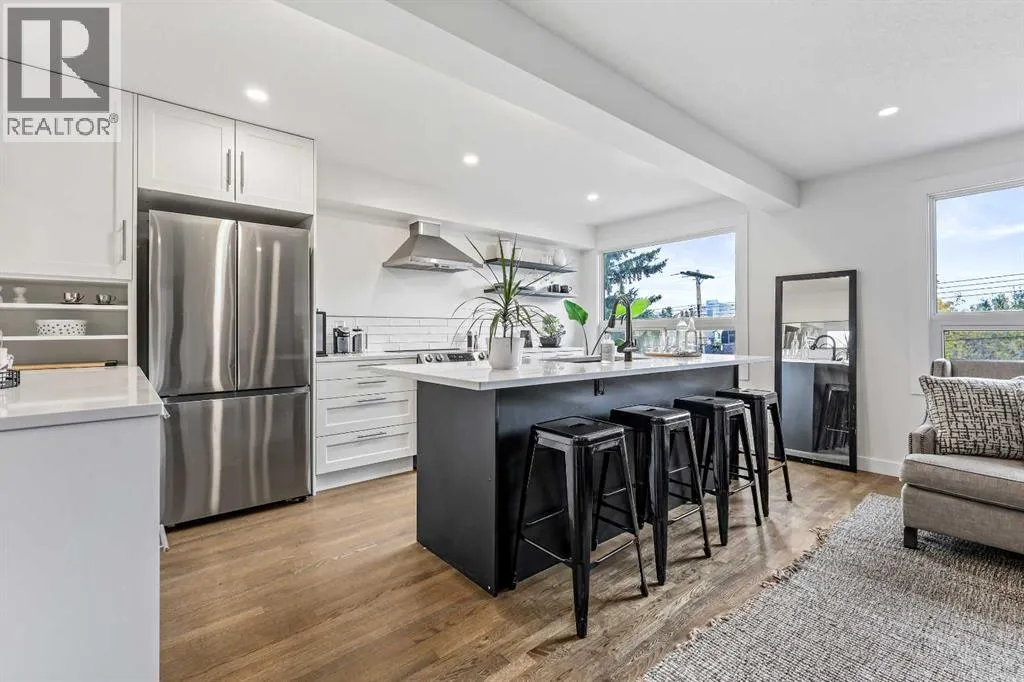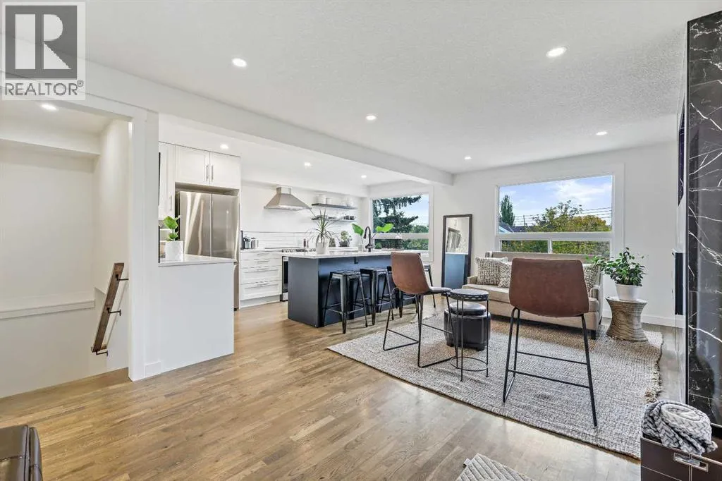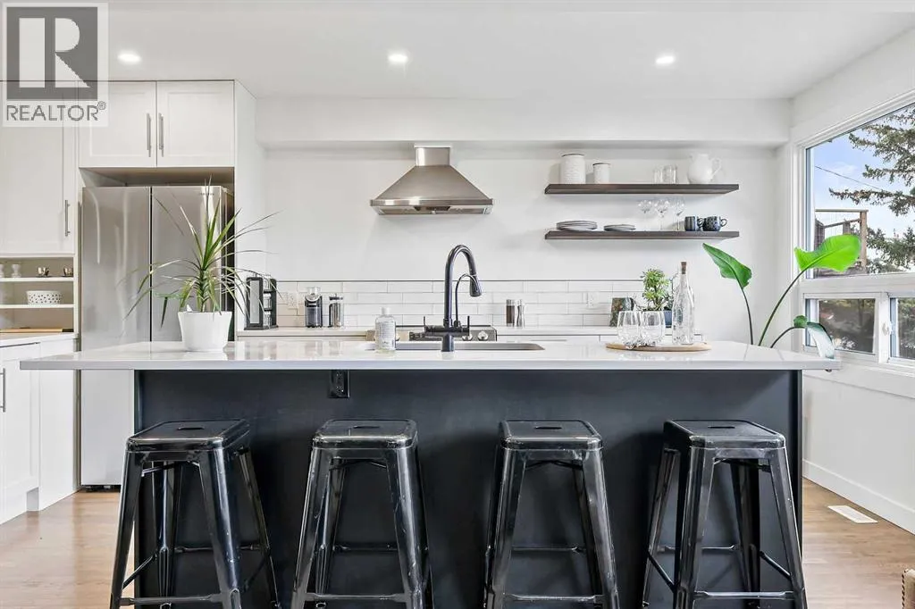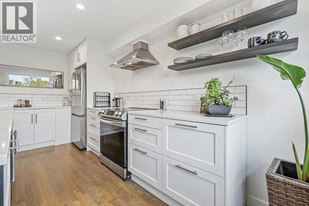 If entertaining under the city skyline is your vibe, this home delivers the ultimate rooftop experience. Tucked away in Calgaryâs popular inner-city community of Bankview, this fully renovated home features a massive 450 sq. ft. private rooftop patio with panoramic views that stretch across downtown. Whether youâre hosting a summer soirée, firing up the BBQ, enjoying cocktails at golden hour, or soaking up the sun on lazy afternoons, this rooftop is truly a showstopper. Itâs the kind of space that makes every gathering unforgettable. Inside, youâll find a modern, stylish layout with 3 bedrooms and 2 fully updated bathrooms, perfect for roommates, a home office, or a creative studio. The open-concept kitchen is designed for connection, with quartz countertops, stainless steel appliances, and island seating that flows into the bright, airy living room complete with an electric fireplace and chic feature wall. The upper level connects two bedrooms and a full bath directly to that private rooftop retreat, while the main floor offers another bedroom/office, a second full bath, and a convenient mudroom. The walkout basement opens into a landscaped yard with mature fruit treesâideal for garden parties or peaceful downtime. A heated garage adds even more versatility, whether you want a gym, studio, or workspace. Additional features are 2 washer/dryer hookups on the main floor and walk out basement with Beyond your front door, the best of Calgary awaits. Nestled between the buzz of 17th Avenue and the vibrant Marda Loop, youâre only steps from trendy restaurants, coffee shops, nightlife, shopping, and green spaces. Add in quick access to downtown, bike paths, and transit, and you have the perfect mix of excitement and convenience. With 1,437.42sq. ft. of finished living space plus a heated garage and rooftop retreat, this home is all about lifestyle, energy, and connection. If youâre ready for the ultimate blend of modern design and outdoor living, your rooftop oasis in the city is waiting! (id:27476)