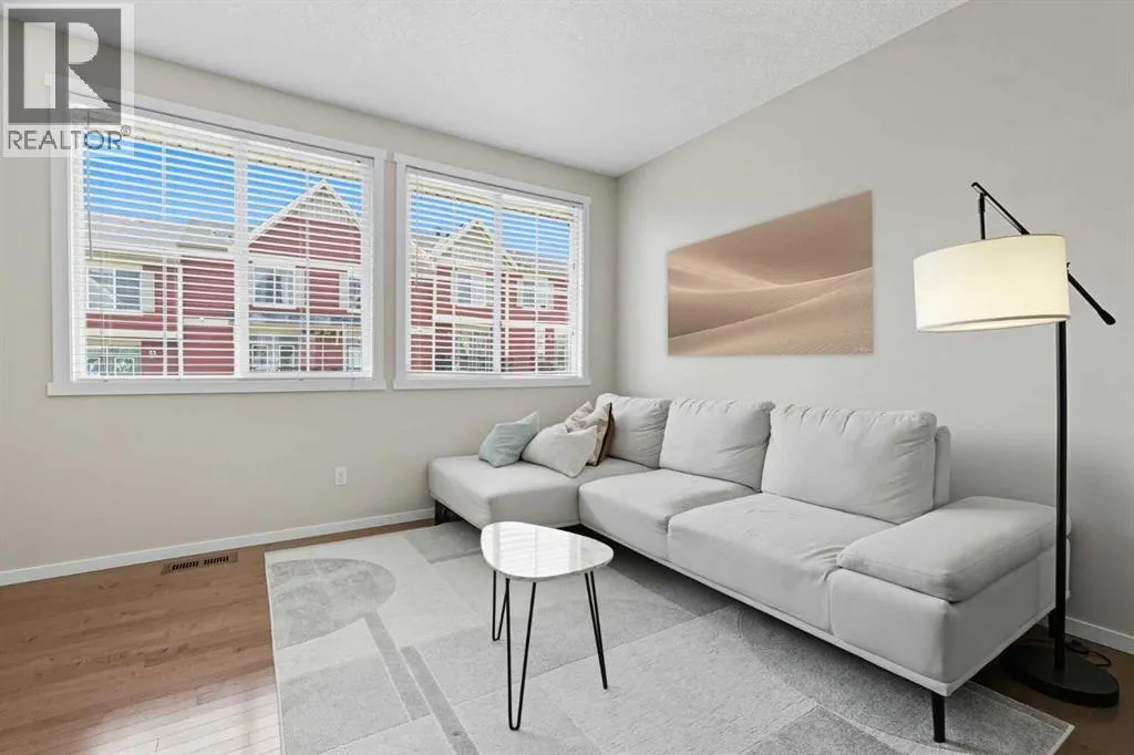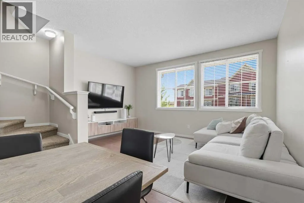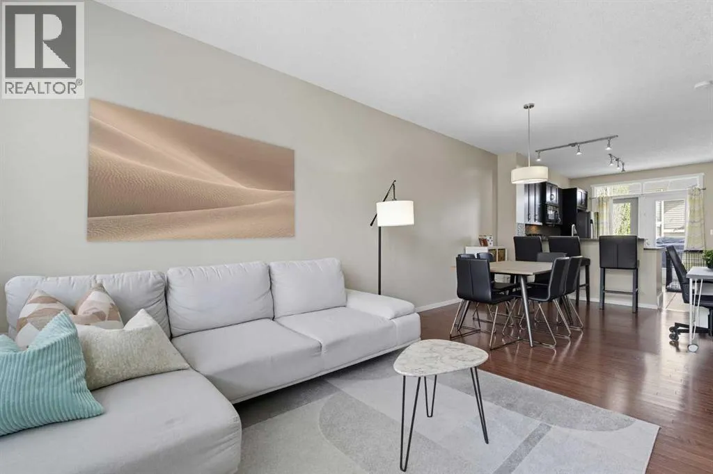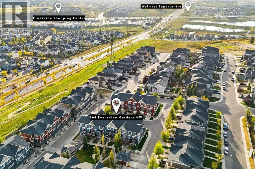 Just reduced! Welcome to this adorable and inviting two-bedroom + den townhouse in Evanston! Perfectly designed for young couples, professionals, or anyone seeking a balance of style and comfort, this home offers modern finishes, thoughtful details, and a peaceful setting within one of Calgaryâs most welcoming communities.Step inside to discover a bright, open-concept main floor that feels warm and spacious. The living and dining areas flow seamlessly together, anchored by a modern kitchen with plenty of storage and prep space. Natural light floods the room and continues onto your private balcony, the perfect spot to enjoy your morning coffee, summer evenings, or even a quiet workspace in warmer months. Upstairs, youâll find two comfortable bedrooms plus a flexible den â ideal as a home office, study, or guest nook.Additional features include air conditioning for year-round comfort, a tandem garage with parking for two or bonus storage, and a pet-friendly environment. With its quiet, insular location, this townhouse offers privacy and serenity while still connecting you to everything you need.Living in Evanston means more than just a home â itâs a lifestyle. This thoughtfully planned community in Calgaryâs northwest is known for its friendly atmosphere, abundant parks and playgrounds, and scenic walking and biking paths around ponds and green spaces. The nearby Evanston Towne Centre and Creekside Shopping Centre puts convenience at your fingertips with grocery stores, cafés, fitness studios, restaurants, and everyday services just minutes away. Whether itâs grabbing dinner, running errands, or heading out for a walk with your pet, everything is close at hand.Commuting is a breeze with quick access to Stoney Trail, making it just 15 minutes to the airport and about 30 minutes to downtown Calgary. Larger amenities like Nose Hill Park, golf courses, and major shopping centres are also nearby.This townhouse combines a stylish interior, modern comfort, and unbe atable community convenience â making it a must-see for those looking to live in one of Calgaryâs most desirable northwest neighbourhoods. (id:27476)