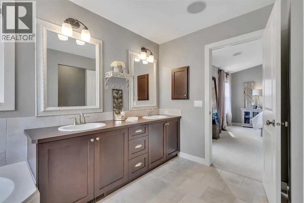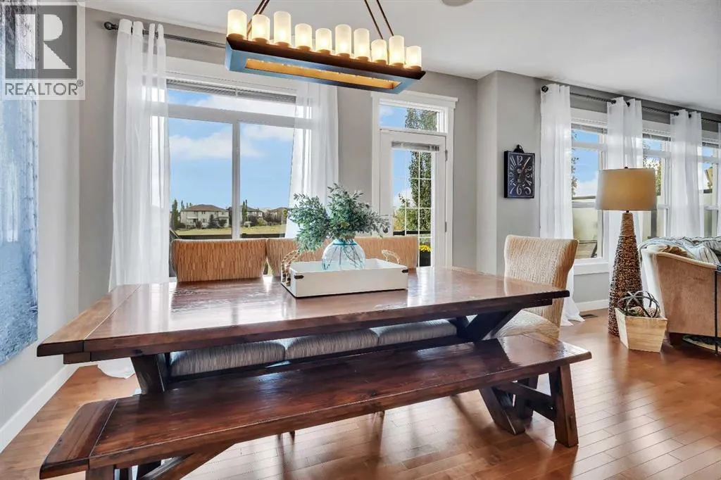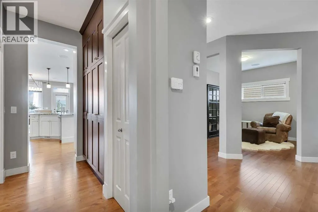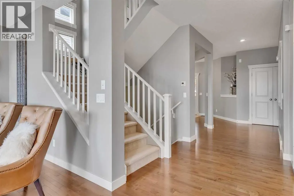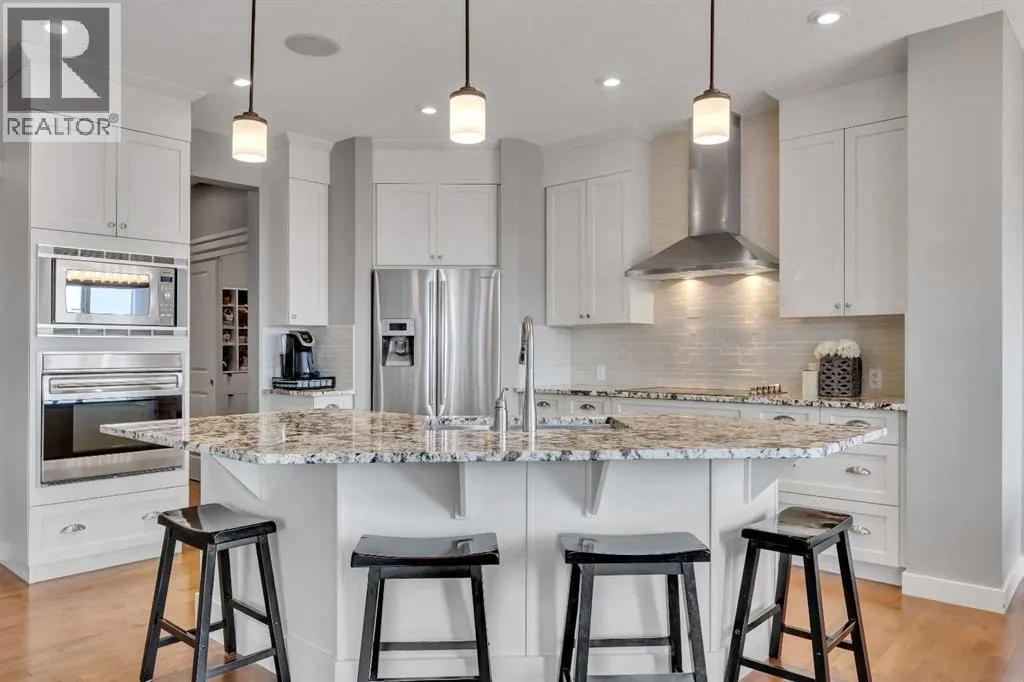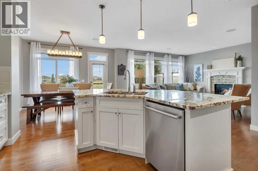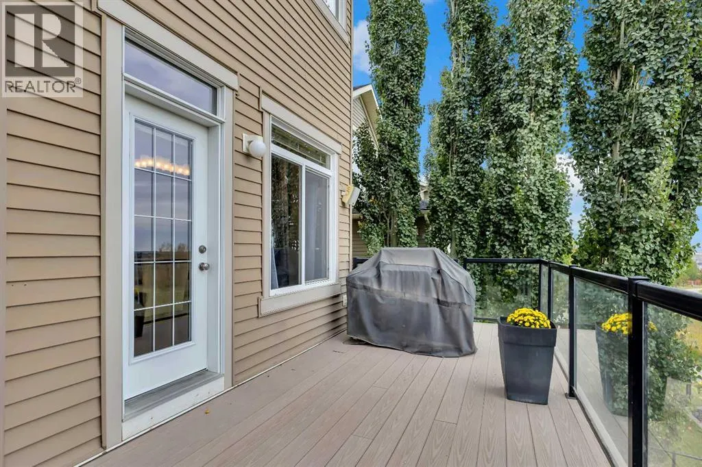 Welcome to this inviting two-story family home, first time on the market, nestled in a friendly neighborhood. This residence offers plenty of room for your family's needs with four bedrooms, 3.5 bathrooms, and over 2,600 sqft of living space. The exterior features a classic design with a well-maintained lawn, a large green yard, and mature trees perfect for outdoor living and entertaining. The oversized double garage provides convenient parking and ample storage, large enough for a full-size truck, and includes an access door directly to the backyard. The full-sized deck, made from durable composite materials, offers stunning views and is ideal for relaxing or hosting gatherings. The backyard also features a luxurious hot tub with built-in speakers, creating an ideal setting for unwinding. Inside, the spacious foyer leads to a versatile multi-purpose room perfect as an office or dining area. Adjacent is a large dining area with views of the backyard, providing an inviting space for family meals.The main living room is filled with natural light from large windows, creating a warm atmosphere. A classic white mantel with a decorative gas fireplace anchors the room, complemented by elegant hardwood floors that enhance its charm. The stunning kitchen combines functionality with modern elegance, boasting sleek white cabinetry, ample storage, and a large granite-topped center island ideal for meal prep and casual dining. Upgraded stainless steel appliances, including a built-in microwave and WOLF oven, add convenience, while pot lighting gives a contemporary touch.Upstairs, large windows continue to flood the area with natural light, with modern white trim adding an elegant touch. The layout includes three bedrooms, with a luxurious primary suite featuring unobstructed views of the fallcolours. This retreat includes a dual-sink vanity, soaker tub, large walk-in closet, and glass shower. An upstairs laundry area enhances convenience. The fully developed walkout basement adds over 1,000 square feet of additional living space, including a spacious bedroom and full bathroom, perfect for guests or as a home gym. Built-in speakers in the basement provide an entertainment experience. This beautifully maintained home blends comfort, style, and functionality. With stunning views, outdoor living spaces, and thoughtful upgrades, itâs ready for your family to make it your own. (id:27476)