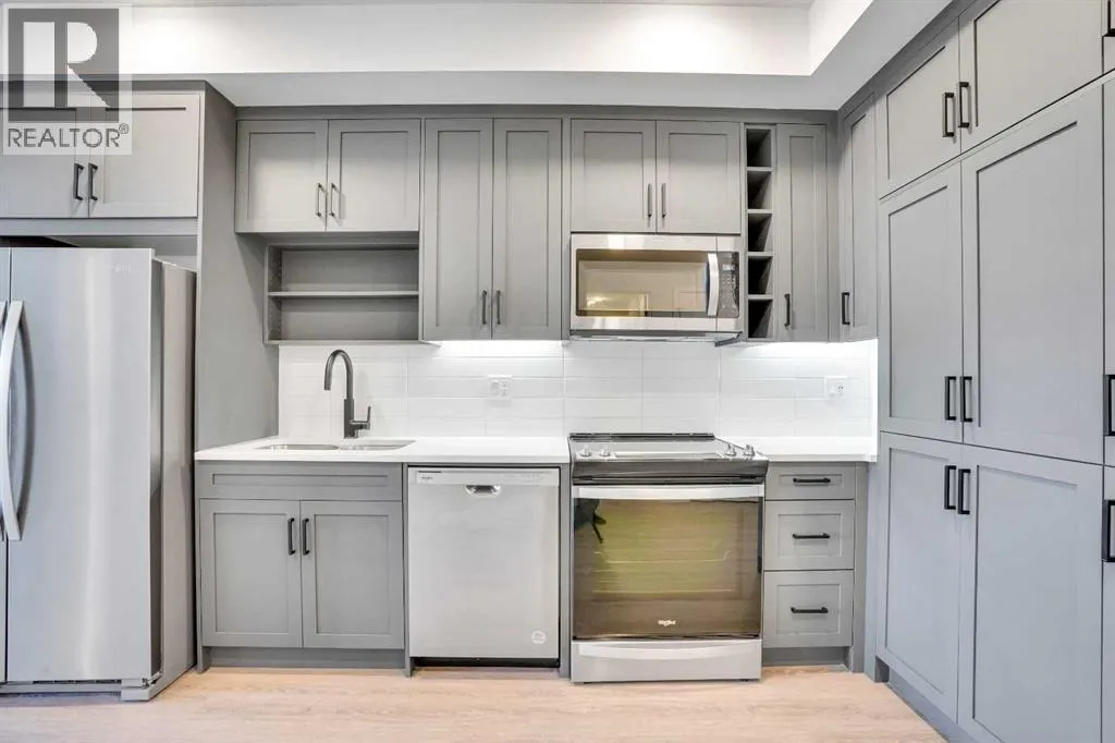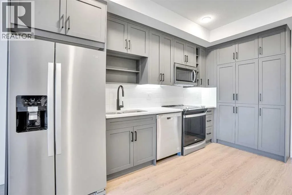 Experience the best of urban living in Calgaryâs vibrant University District with this modern 1-bedroom, 1-bathroom condo. Designed for comfort and convenience, this home features an open-concept layout with sleek laminate flooring, a stylish kitchen with quartz countertops and stainless steel appliances, and a bright bedroom with a walk-in closet. The 3-piece bathroom includes a stand-up shower with a bench, while in-suite laundry and extra closet space add everyday ease.Step outside to your spacious covered balcony, complete with a BBQ gas lineâperfect for enjoying summer evenings and northern sky views. The building offers premium amenities including a fully equipped gym, ownerâs lounge with kitchen, meeting room, outdoor social patio, secure bike storage, and a community garden.Living here means having everything at your doorstep: over 50 shops and restaurants including Village Ice Cream, OEB Breakfast, Cineplex, Shoppers, Save-On-Foods, banks, co-working spaces, and more. Youâll be within walking distance to the University of Calgary and minutes to Alberta Childrenâs Hospital, Foothills Hospital, Market Mall, and with quick access to Crowchild Trail and downtown.Donât miss your chance to be part of one of Calgaryâs most desirable communitiesâschedule your showing today! (id:27476)