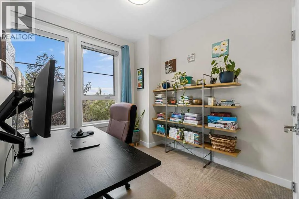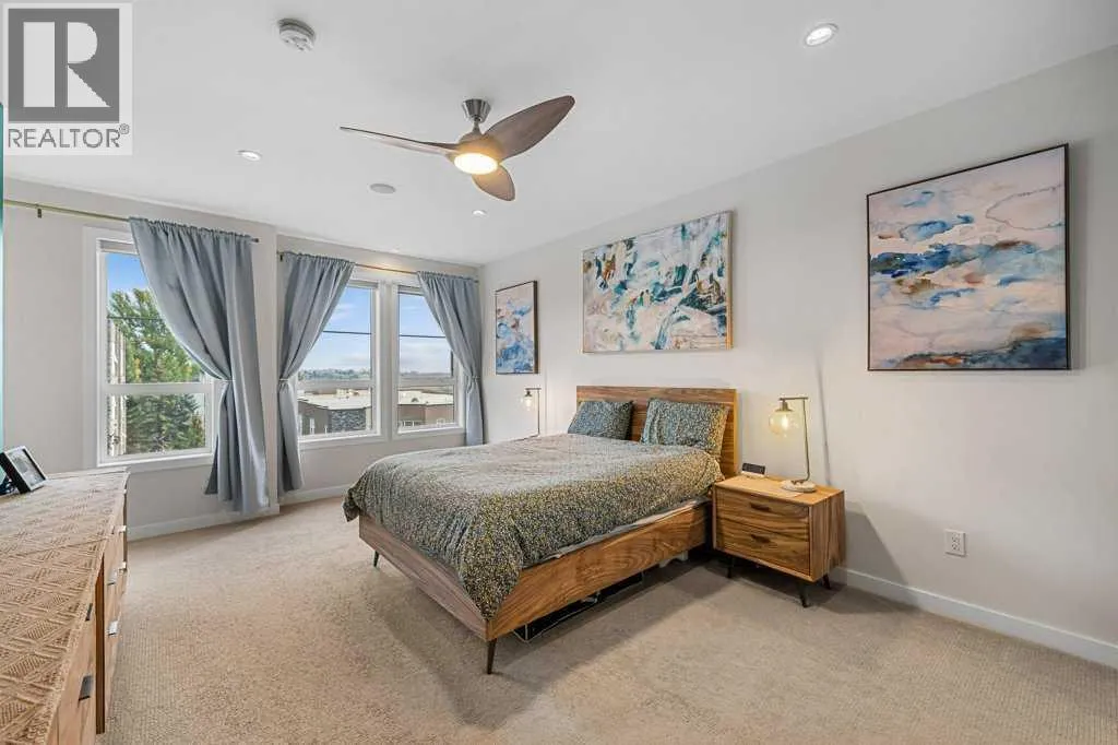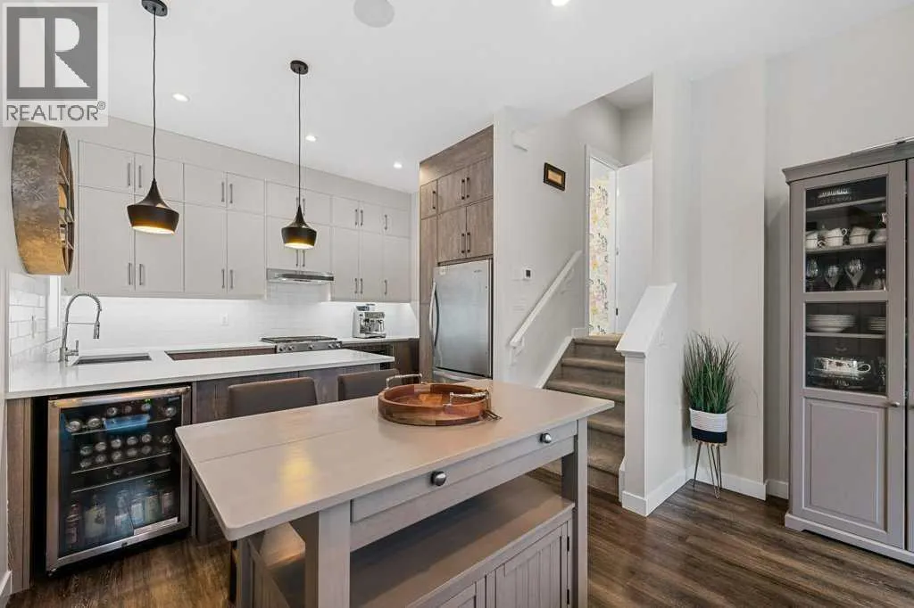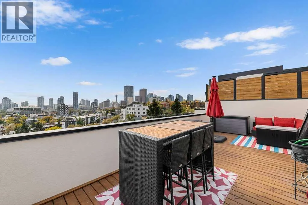 Perched above Bridgeland with city views you wonât forget, this three-storey townhome has just over 2,000 sq. ft. of living space and a layout that makes sense from top to bottom.There are three bedrooms and three and a half baths, including a top-floor primary with a walk-in closet and a double-sink ensuite. But the real star is the rooftop patio, a huge private deck with some of the best views in Calgary. Itâs the kind of space thatâs perfect for dinner parties, late-night drinks, or just stretching out and watching the skyline.On the main floor youâll step in from your own low-maintenance turf front yard to a bright living room with 10-foot ceilings and a gas fireplace. The kitchenâs set up with quartz counters, a breakfast bar, pantry, beverage fridge, and stainless steel appliances, plenty of space and light for cooking or hosting. The east-facing windows have been tinted to reduce heat and keep the home comfortable year-round.Upstairs, two bedrooms share a full bath and thereâs a handy laundry room. The top level is reserved for the primary suite with its 9-foot ceilings, walk-in, and spa-style ensuite.Extras worth noting: heated basement floors, in-ceiling speakers, a detached garage with a car lift for secure parking, and low condo fees that help keep monthly costs in check.Itâs a solid mix of space, style, and a rooftop that really sets it apart. Book a showing with your favourite agent and see it for yourself. (id:27476)