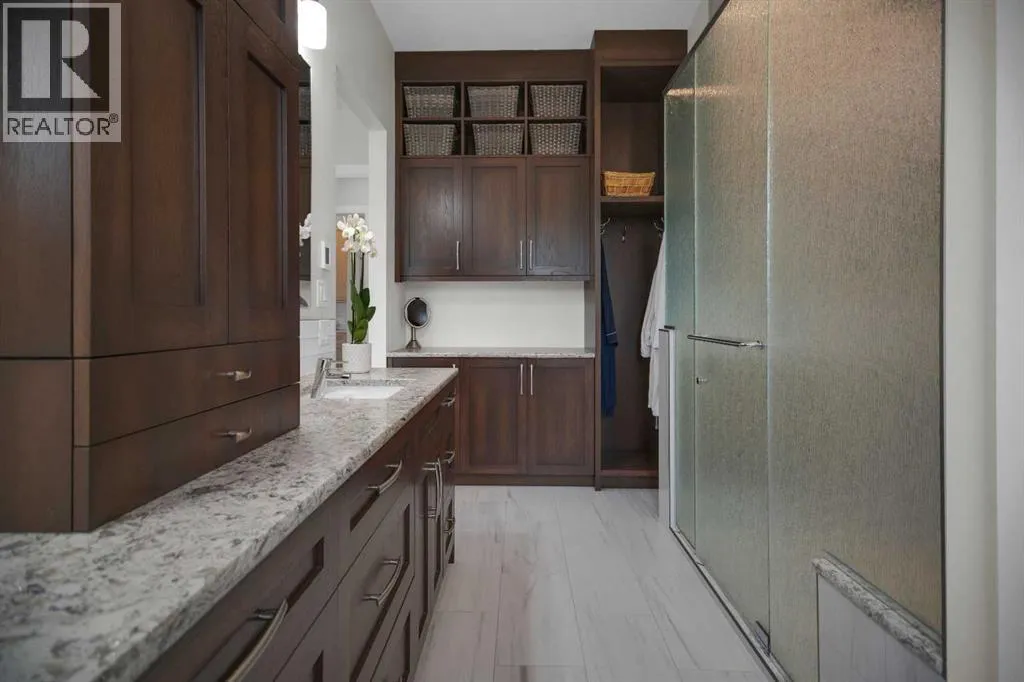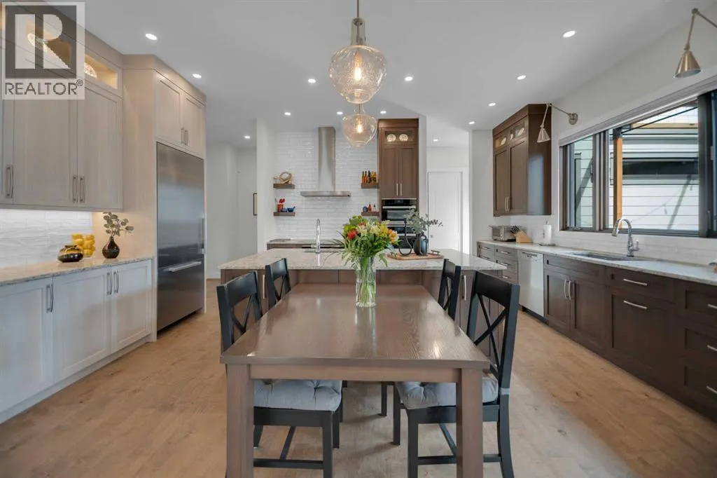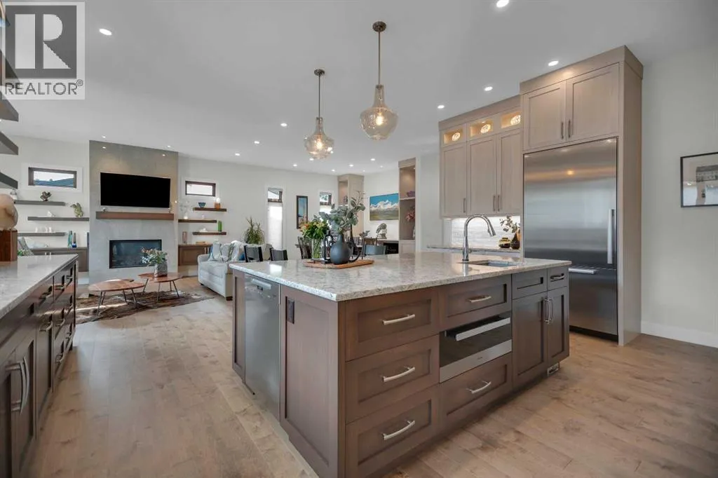 Welcome to this extraordinary custom-built bungalow, offering over 2,000 sq. ft. on the main floor plus a fully finished basement. Built in 2019, this home beautifully combines timeless craftsmanship with modern design, creating a warm and inviting atmosphere in one of Calgaryâs most established neighborhoods.From the moment you enter, soaring 10 ft ceilings and oversized windows (triple-pane with double Low-E, double Argon, and full metal-clad exterior) set the tone for an airy, light-filled space. The open-concept main level flows seamlessly, anchored by a stunning kitchen that inspires gatheringâcomplete with a large island, walk-in pantry, and high-end Miele appliances: steam combination oven, full-size oven, speed oven, warming drawer, ceramic induction cooktop, and two dishwashers. The adjoining living and dining areas open gracefully to the outdoors, perfect for hosting or quiet evenings at home.The primary suite is a private retreat, featuring expansive windows and a luxurious spa-inspired ensuite. Here, youâll find a walk-in shower, dual vanities, and elegant finishes that make everyday living feel indulgent. A separate walk-in closet offers ample storage and thoughtful design, while convenient access to the main floor laundry is located just outside the suite for added practicality.The finished lower level extends your living space, with a generous recreation area, wet bar with full fridge and dishwasher, wine cellar, fitness room, and three additional bedroomsâone with its own ensuite and walk-in closet. In-floor zoned heating throughout ensures year-round comfort.Every detail of this home reflects a commitment to quality, from the building envelope finished with James Hardie siding and shakes, to the careful selection of features designed to maximize comfort and minimize maintenance. Professionally landscaped outdoor spaces further enhance the appeal, blending beauty with low upkeep to create a seamless living experience both inside and out.An attached heated garage adds everyday convenience to this well-planned home.Blending sophistication with functionality, this property is more than a homeâitâs a lifestyle. A rare opportunity to own a truly spectacular residence in a mature, welcoming community just steps away from Fish Creek Parkâs endless walking and biking trails, The Bow Valley Ranch, Annieâs Café, and Park 96, while still enjoying quick access to Deerfoot Trail and a short drive to shopping, dining, and amenities. Parkland offers the perfect balance of nature, convenience, and community spiritâwhether youâre raising a family or seeking a peaceful, connected place to call home. (id:27476)
