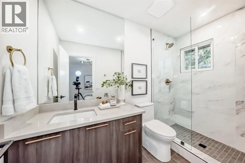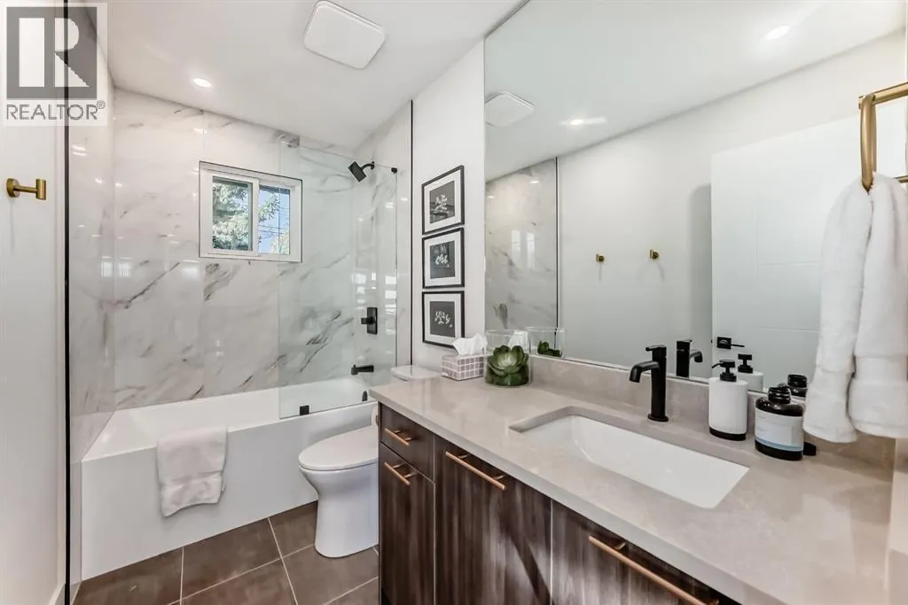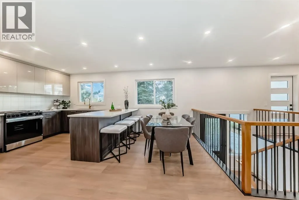 PRICED TO SELL! Welcome to this stunning bi-level home, completely transformed down to the studs. Tucked away in a quiet Dalhousie cul-de-sac, this home offers the best of modern living in one of the cityâs most convenient communities.. Step inside to discover bright, open spaces filled with natural light from the large windows on both levels. The living room features a striking six-foot fireplace, creating a cozy focal point for gatherings. The brand new kitchen showcases high-end cabinetry, quartz countertops, and premium appliances including a gas stove, perfect for anyone who loves to cook and entertain. Throughout the home, youâll appreciate the luxury vinyl plank flooring, plush carpet, flat ceilings with recessed pot lighting, and the seamless flow of fresh, modern design. With three bedrooms and three bathrooms, this home is designed for comfortable family living. The primary retreat includes a newly added 4 pc ensuite finished with custom glass and contemporary fixtures, while both additional bathrooms have also been completely redone to the highest standard. Every detail has been considered, from upgraded plumbing and electrical to all new windows, new furnace and hot water tank, doors, insulation, and drywall. Outside, the appeal continues with a brand new pressure-treated deck overlooking a spacious pie-shaped backyard. Complete with a gas-plumbed outdoor firepit and a charming gas powered lamp post, this yard is perfect for summer nights with family and friends. A single attached garage offers convenience, while the wide front driveway and back alley access provide plenty of additional parking and even the potential to build another garage. Recent exterior upgrades, including a new roof, eavestroughs, gutters, and new garage door, add to the value and peace of mind. This is a rare opportunity to own a fully modernized home in an established neighborhood, where every detail has been carefully crafted for style, comfort, and function. Perfectly situated c lose to shopping, schools, transit, and the University of Calgary, (id:27476)