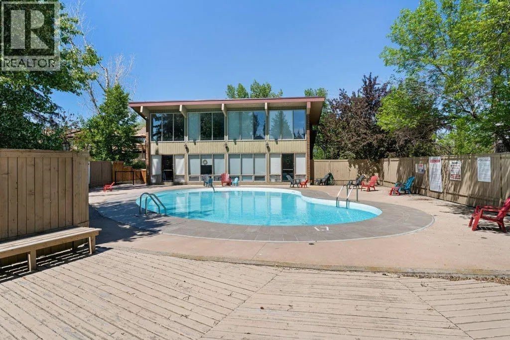 This spacious 2-bedroom, 1.5-bathroom main floor unit offers a bright and inviting living space with a west-facing patio, perfect for soaking in the afternoon sun. Nestled among mature trees, the unit provides a peaceful and private setting while being conveniently located close to everything you need. The generously sized living room is ideal for both relaxing and entertaining.The complex offers fantastic amenities, including an outdoor swimming pool, tennis court, and beautifully maintained green spaces. Enjoy the convenience of being just a 20-minute walk to Heritage CTrain Station, and close to shopping, schools, professional services, and more. A portable washing machine located in the bathroom adds extra value and in-suite functionality.Whether you're a first-time buyer, an investor, or looking to downsize, this home delivers comfort, location, and lifestyle. Donât miss your chance to own this gem. (id:27476)