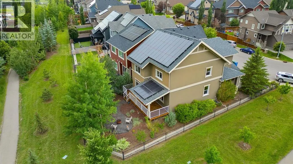 Welcome to 233 Cranarch Common SEâwhere modern sustainability meets elevated style in one of Calgaryâs most desirable communities. This former show home is a standout corner-lot property in Cranston, offering exceptional curb appeal with its EIFS stucco exterior and a host of thoughtful upgrades throughout. Designed for future-ready living, this net-zero home features triple-pane windows and rooftop solar panels that make it up to 90% more energy-efficient than the average home in the area, delivering substantial savings and year-round comfort. Inside, the sunlit open-concept layout flows seamlessly from the upgraded kitchenâwith quartz countertops, stainless-steel appliances, and a walk-through pantryâto the spacious living and dining areas, all framed by serene park views. Step outside to your private, xeriscaped Zen backyardâan entertainerâs dream and a peaceful retreat with a developed deck perfect for relaxing or hosting. Upstairs, the generous primary suite offers two walk-in closets and a spa-inspired ensuite with dual sinks, a deep soaking tub, and a separate shower. Two additional bedrooms, a full bath, and a bonus room wired for surround sound provide ample space for family, guests, or work-from-home flexibility. The finished basement adds even more versatility, ideal for a gym, playroom, office, or media lounge. With direct access to Cranston Ridgeâs scenic trails and mountain views, plus proximity to South Health Campus, Seton YMCA, top schools, and shopping, this location blends tranquility with convenience. And with the Green Line LRT under construction, your investment here is poised to grow. Whether you're a growing family, professional couple, or savvy investor, this is your chance to own a high-performance home thatâs built for comfort, connection, and long-term value. Donât miss outâbook your showing today and experience the future of living at 233 Cranarch Common SE. (id:27476)