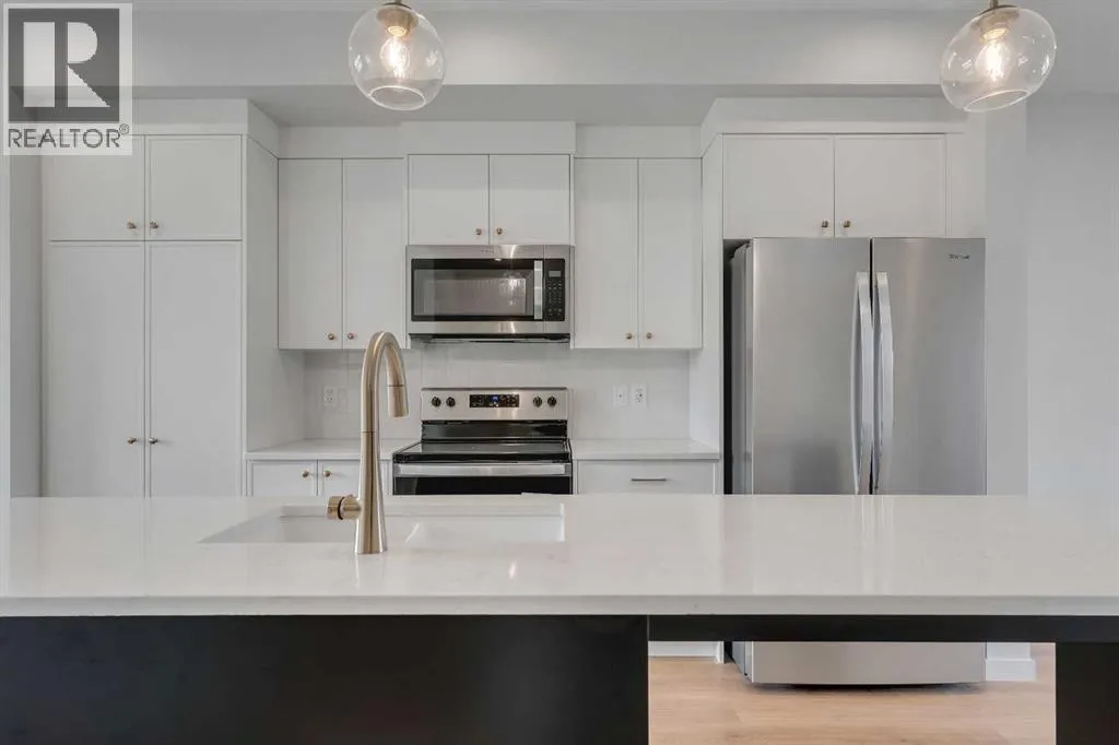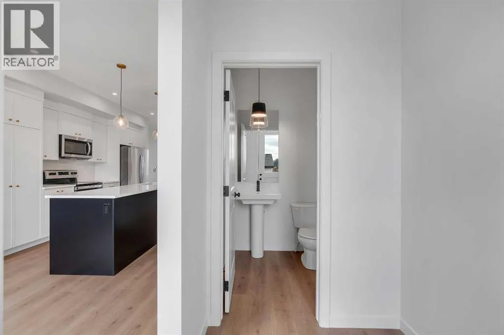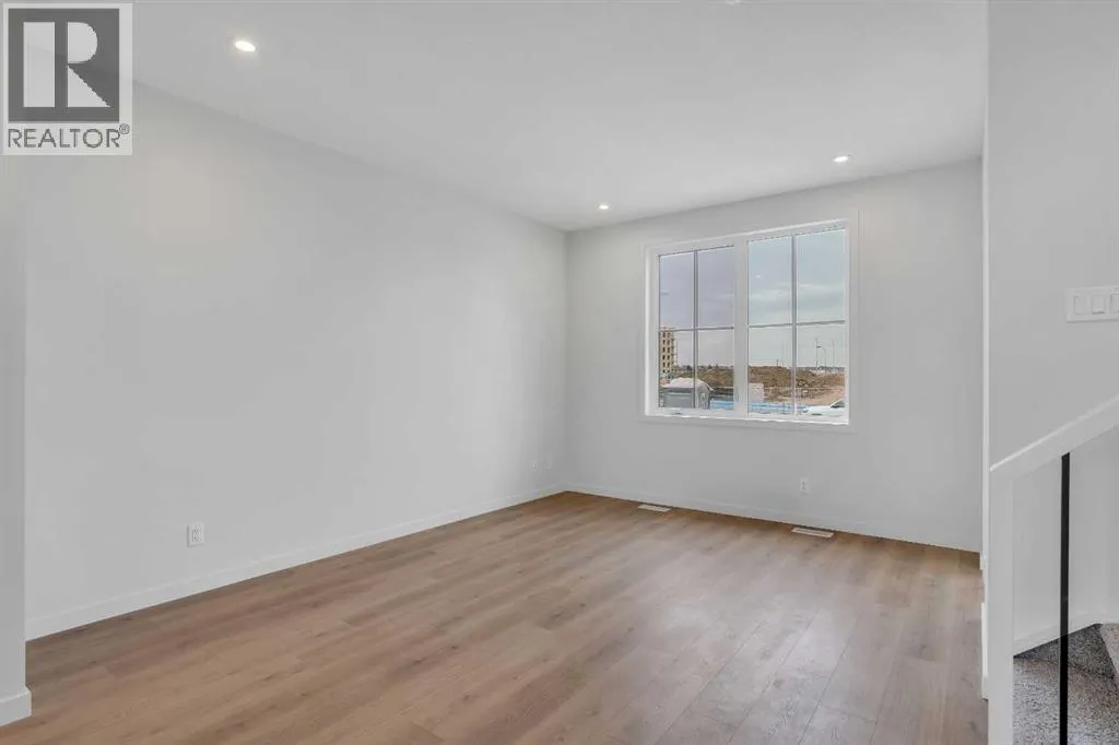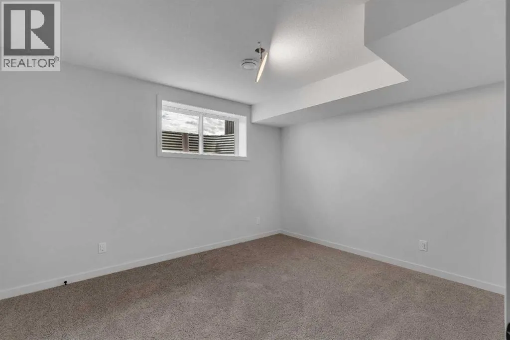 Welcome to 1497 Rangeview Drive SE â Viola 18 Model by Baywest Homes. This stunning home perfectly blends modern design with practical upgrades, offering style, comfort, and functionality for todayâs lifestyle. At the heart of the home, the center kitchen boasts a long quartz island, upgraded gold plumbing fixtures, a Siligranite sink, stylish backsplash, and designer-curated finishes throughout. An oversized stairwell window and large dining room window flood the space with natural light, while the open railing upgrade creates a spacious, airy feel on the main floor. The generously-sized primary bedroom includes its own 3-piece ensuite with a large shower. The remaining two bedrooms are located at the back of the home and share a full bathroom. The thoughtfully developed basement adds incredible living space, featuring a 4th bedroom, full bathroom, spacious living room, and storage. With two large windows, the lower level is bright and invitingâideal for guests, teens, or extended family. Stay cool all summer with air conditioning and enjoy the convenience of a rear deck complete with BBQ gaslineâthe perfect spot for summer gatherings. The home is also sprinkler system rough-in ready and includes front landscaping for a polished curb appeal. This home also includes a rear detached garage (18' x 21'), a side door entrance with upgraded laminate landing, and a south-facing backyard that ensures plenty of natural sunlight year-round. Perfectly situated in the growing community of Rangeview, this home is just steps from the future Commercial Village, Harvest Hall, and Community Greenhouseâconnecting you to convenience, culture, and community living. (id:27476)