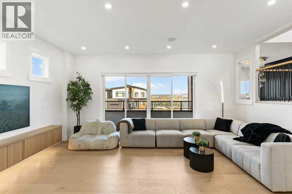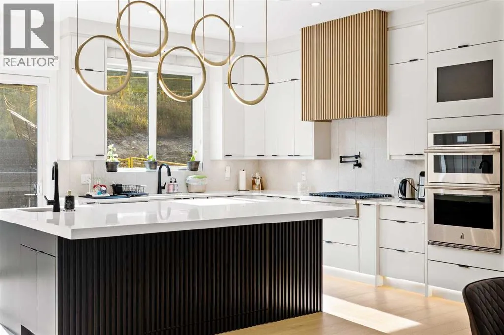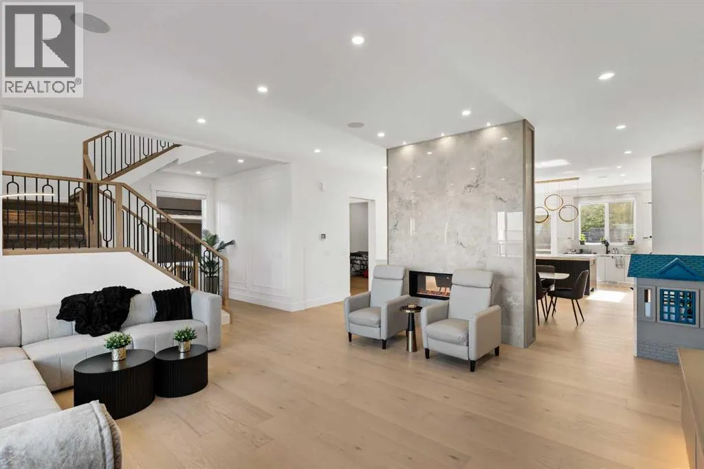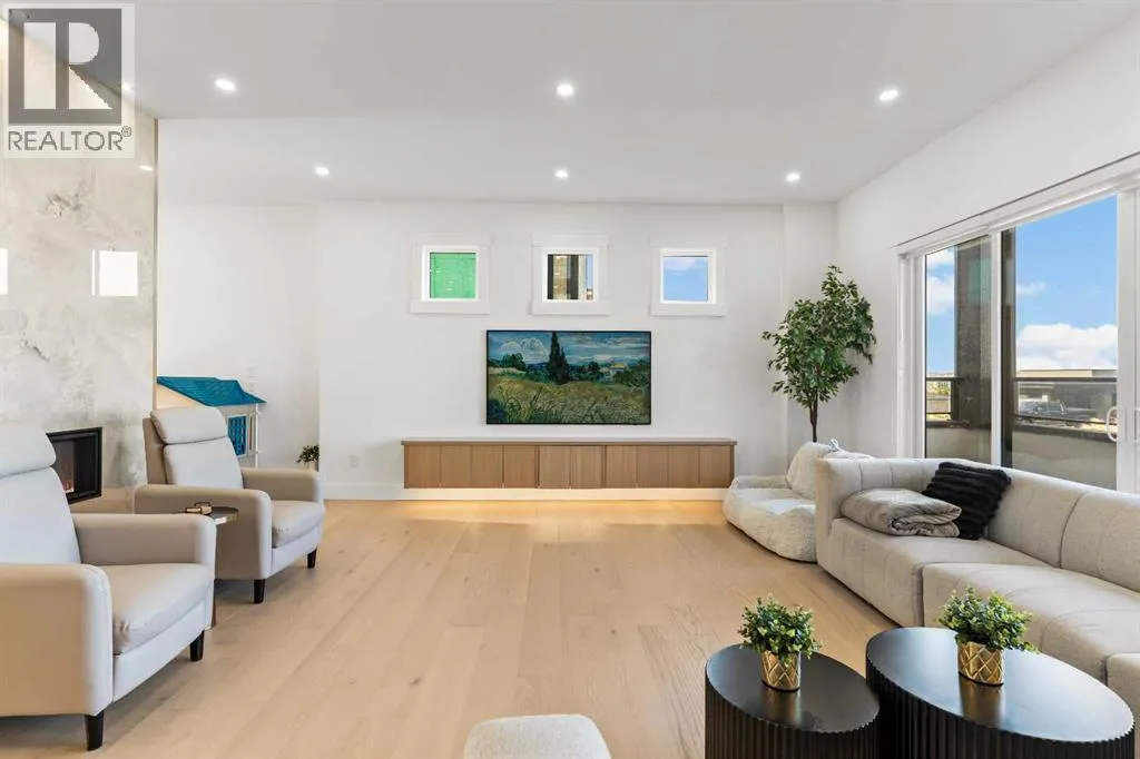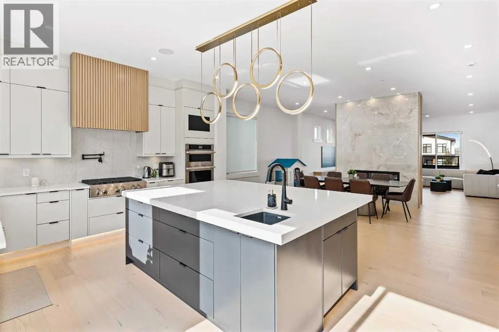 Welcome to 467 Patterson Blvd SW, a luxury custom built residence in the newest subdivision in prestigious Patterson Heights. Thoughtfully designed with an emphasis on modern living, timeless finishes and functional spaces this home offers over 3,900 sqft above grade plus a fully developed 1,040 sqft basement creating a total of almost 5,000 sqft of finished living space. This lovely home is fully landscaped(sunny backyard that flows into the home) with a large 16x12 gazebo and backs on to a treed green space for the utmost privacy. As you enter the home you are welcomed into a grand foyer with soaring ceilings and up/down access to the heart of the home. Heading up to the main level the living area is spacious and bright with patio doors & access to the first balcony, recessed lighting and a gorgeous floor to ceiling double sided tile facing fireplace nicely partitioning off the dining area & living area. The chef inspired kitchen is sure to impress featuring custom full height cabinetry, premium quartz countertops, a large central island with breakfast bar seating & sink with built-in appliances (including oversized French door fridge, gas cooktop with pot filler, wall oven & microwave) pantry and if this isn't enough of a wow factor, tucked around the corner is the spice kitchen with second set of appliances + more room to cook when hosting guests! Finishing off this level you have a spacious office, perfect for work or study and a 3pc bathroom with glass shower. Upstairs the serene primary suite offers a private balcony overlooking the front of the home, a spa inspired 5pc ensuite with a steam shower, heated floors, dual vanities and a freestanding tub plus a huge walk-in closet (with custom built in's you have to see it to believe it). Two secondary bedrooms each enjoy private ensuite bathrooms and walk-in closets. This level also features a bonus room in the common area and laundry room with stacked washer & dryer + sink and cabinetry. The third floor loft is a showpiece of its own, offering a stunning wet bar with fridge, 2pc guest bathroom, huge storage closet space and expansive windows with skyline views of Calgary. Completing this home the reverse walkout basement features a 2 bedroom(1 with ensuite and walk in closet) with rare 10 foot ceilings, kitchen, second laundry and fireplace. Additional highlights include main 10 foot ceilings on main, 8 foot doors throughout home, an oversized heated double garage, rear aggregate concrete patio, smart home wiring, premium exterior design, 2 furnaces, 2 A/C units, in floor heating, 2 gas lines for bbq/fire pit and thoughtful touches throughout. This exceptional residence is located minutes from top rated schools, parks, shops, and downtown Calgary. Come view this unique home and you will fall in love! (id:27476)