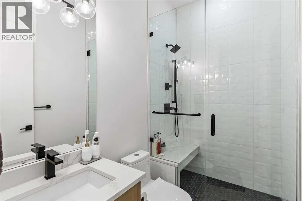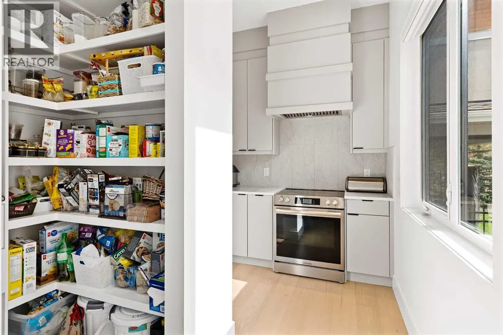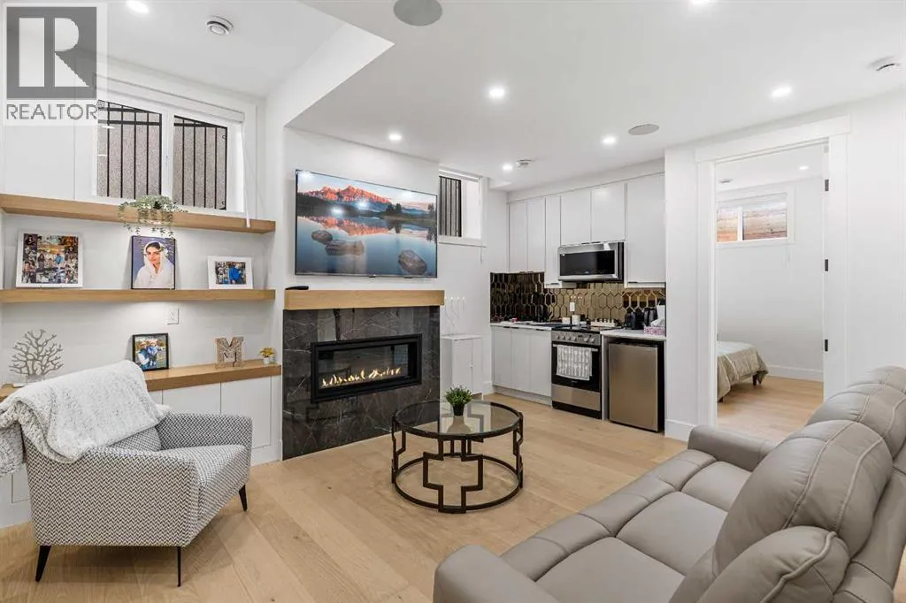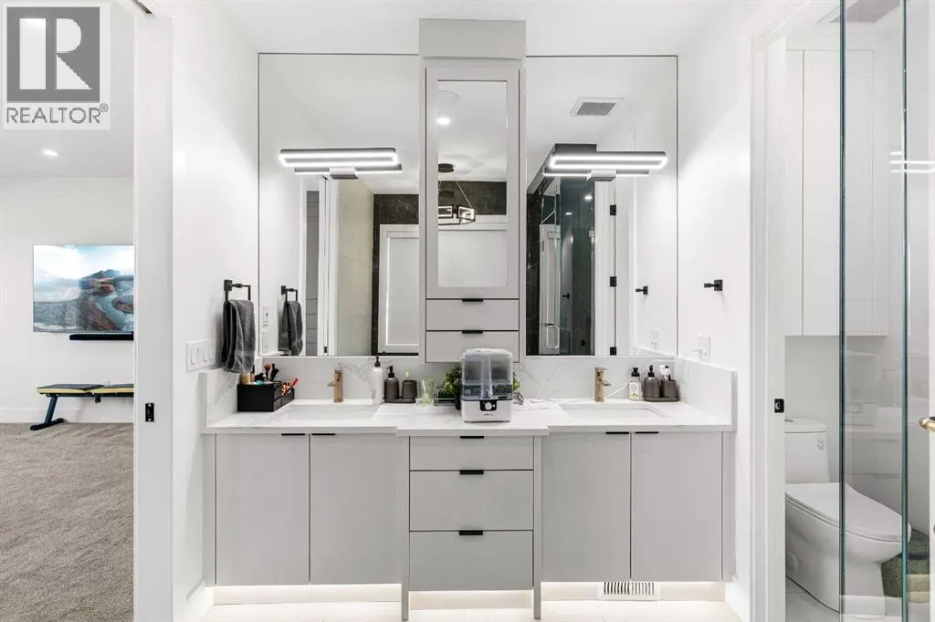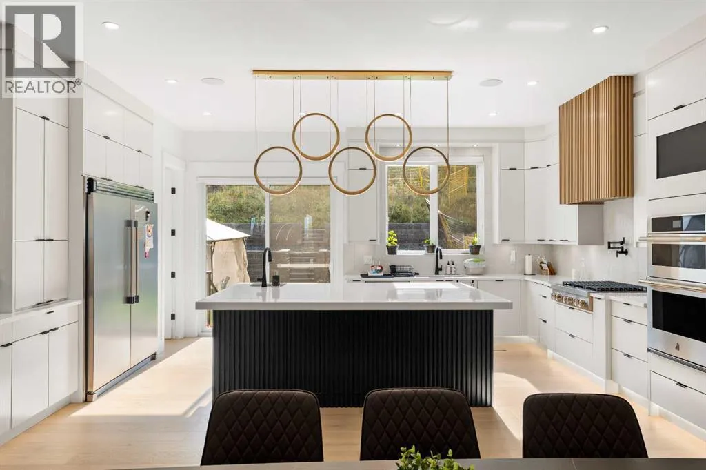 Welcome to 467 Patterson Blvd SW, a luxury custom built residence in the newest subdivision in prestigious Patterson Heights. Thoughtfully designed with an emphasis on modern living, timeless finishes and functional spaces this home offers over 3,900 sqft above grade plus a fully developed 1,040 sqft basement creating a total of almost 5,000 sqft of finished living space. This lovely home is fully landscaped(sunny backyard that flows into the home) with a large 16x12 gazebo and backs on to a treed green space for the utmost privacy. As you enter the home you are welcomed into a grand foyer with soaring ceilings and up/down access to the heart of the home. Heading up to the main level the living area is spacious and bright with patio doors & access to the first balcony, recessed lighting and a gorgeous floor to ceiling double sided tile facing fireplace nicely partitioning off the dining area & living area. The chef inspired kitchen is sure to impress featuring custom full height cabinetry, premium quartz countertops, a large central island with breakfast bar seating & sink with built-in appliances (including oversized French door fridge, gas cooktop with pot filler, wall oven & microwave) pantry and if this isn't enough of a wow factor, tucked around the corner is the spice kitchen with second set of appliances + more room to cook when hosting guests! Finishing off this level you have a spacious office, perfect for work or study and a 3pc bathroom with glass shower. Upstairs the serene primary suite offers a private balcony overlooking the front of the home, a spa inspired 5pc ensuite with a steam shower, heated floors, dual vanities and a freestanding tub plus a huge walk-in closet (with custom built in's you have to see it to believe it). Two secondary bedrooms each enjoy private ensuite bathrooms and walk-in closets. This level also features a bonus room in the common area and laundry room with stacked washer & dryer + sink and cabinetry. The third floor loft is a showpiece of its own, offering a stunning wet bar with fridge, 2pc guest bathroom, huge storage closet space and expansive windows with skyline views of Calgary. Completing this home the reverse walkout basement features a 2 bedroom(1 with ensuite and walk in closet) with rare 10 foot ceilings, kitchen, second laundry and fireplace. Additional highlights include main 10 foot ceilings on main, 8 foot doors throughout home, an oversized heated double garage, rear aggregate concrete patio, smart home wiring, premium exterior design, 2 furnaces, 2 A/C units, in floor heating, 2 gas lines for bbq/fire pit and thoughtful touches throughout. This exceptional residence is located minutes from top rated schools, parks, shops, and downtown Calgary. Come view this unique home and you will fall in love! (id:27476)