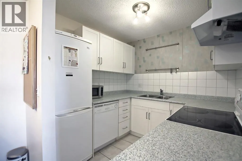 Welcome to this Top floor Spacious 1 bedroom apartment featuring bright and open floor plan. It offers beautiful flows from the dinette, kitchen, living room with electric fireplace, towards the private balcony overlooking the most popular Entertainment centre in the NW :the newly updated Market Mall. The bedroom is very spacious and offers double closet, and can comfortable fit a king size bed, a desk & a dresser. There is a very roomy storage in the unit as well. The assigned parking stall is located conveniently close to the building's West Entrance. Steps to Market Mall !, Easy access to U of C, Foothills Hospital, Children's Hospital, Downtown and the River & the Rockies. A Perfect choice for Investor and First time Home Buyer. (id:27476)