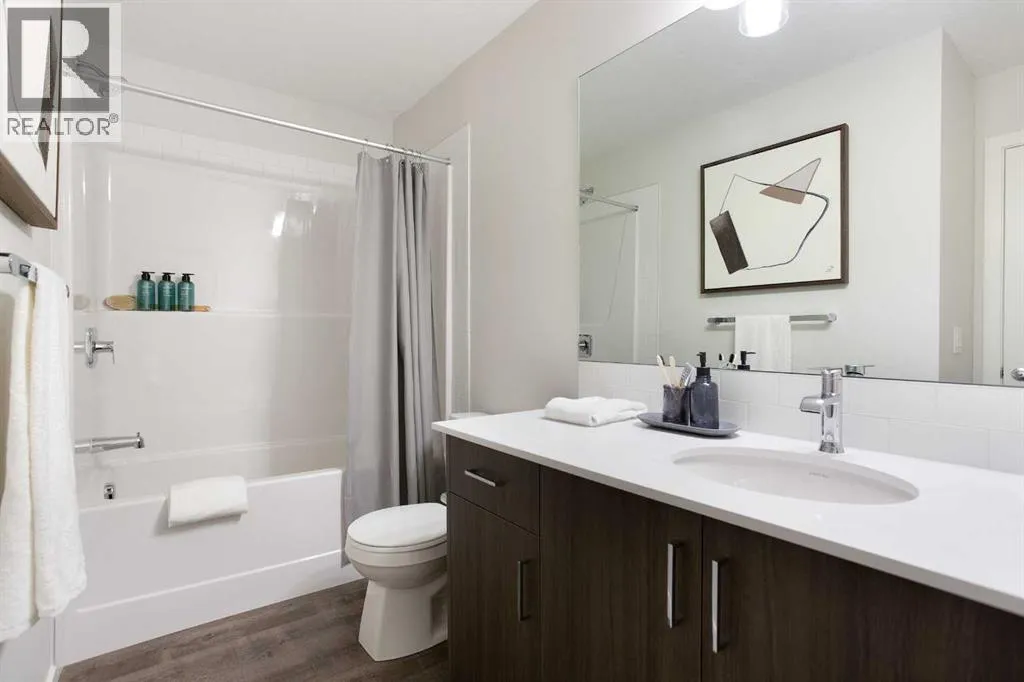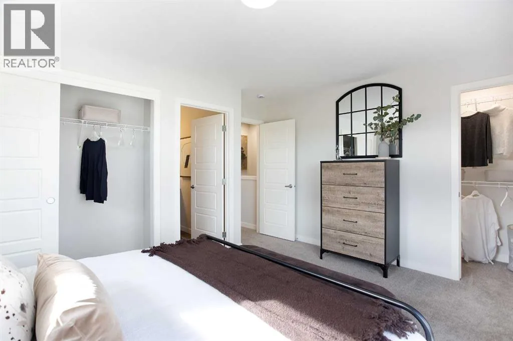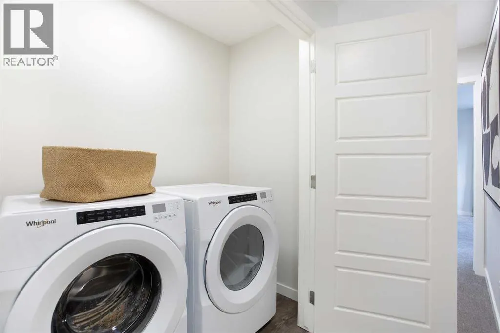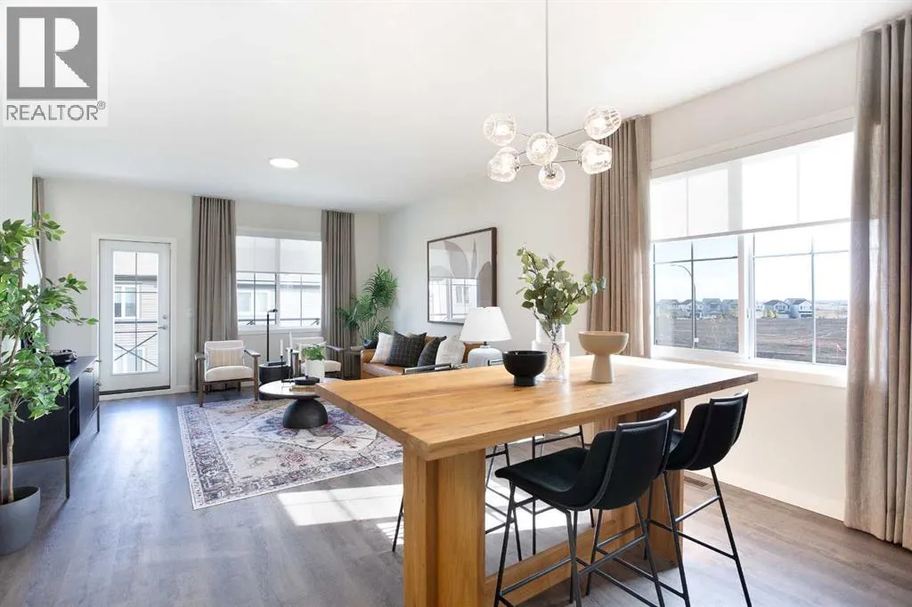 Welcome to this beautifully appointed 4-bedroom townhome in the heart of Rangeview, offering over 1,700 sq. ft. of stylish, functional living space designed for both connection and comfort. With an attached double garage, a modern open-concept layout, and unmatched access to natural spaces and urban conveniences, this home truly has it all.Facing a lush courtyard garden and green space, the residence offers a peaceful outlook and a strong sense of community from the moment you arrive. Inside, light finishes, clean lines, and thoughtful design create a bright and inviting atmosphere. Soaring 9' ceilings on the main floor and 8' ceilings upstairs enhance the open feel, while large windows welcome natural light throughout.The main living space is finished with luxury vinyl plank flooring across the kitchen, dining, and living areas, bathrooms, and laundry. The kitchen features sleek slab-profile cabinets, crisp white quartz countertops, and an eating bar perfect for casual meals or entertaining. A dedicated dining space and an upper balcony off the living room add even more room to enjoy life at home.With 3 spacious bedrooms upstairs and 1 on the main floor to ensure thereâs room for everyoneâwhether for family, guests, or a home office. Plush carpet with an 8lb underlay brings comfort to the bedrooms and hallways, while the primary suite offers a relaxing retreat. Bathrooms feature quartz counters, chrome fixtures, high-efficiency toilets, and modern tile backsplash for a clean, timeless look.Practical features include a two-car garage and a full-sized washer/dryer conveniently located on the upper level.Life in Rangeview is all about community and connection. Stroll the scenic pathways, visit the community greenhouse and gardens, or relax in the shared courtyards and playgrounds. Quick access to Deerfoot and Stoney Trail, shopping in Mahogany and Seton, and the South Health Campus nearby makes every day effortless.This 4-bedroom townhome is a rare findâof fering a perfect blend of space, style, and lifestyle. Welcome to your new beginning in Rangeview. (id:27476)