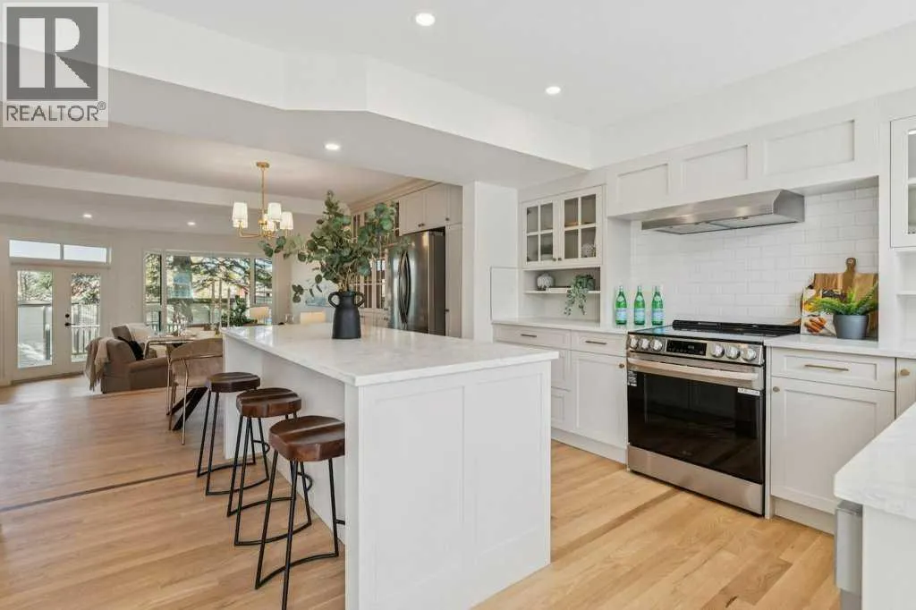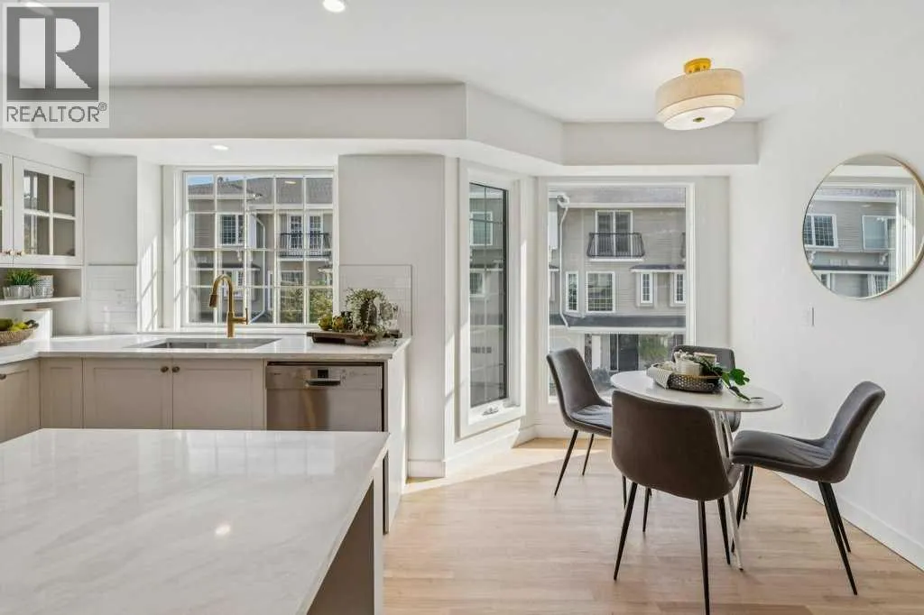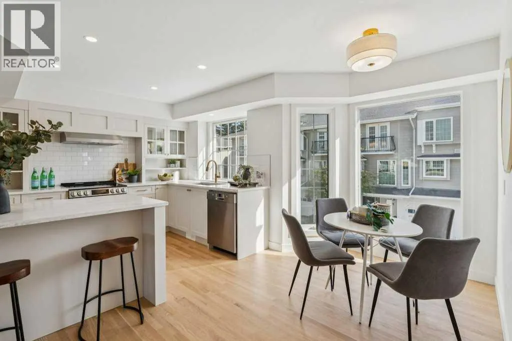 Check out our 24-7 Virtual Open House! Welcome to this stunning renovated townhome in the highly sought-after community of Varsity! Offering over 2,000 sq.ft. of stylish developed living space, this home perfectly combines modern elegance, functionality, and location. The main level features gorgeous hardwood floors throughout, oversized windows, bright modern tones, and professional design elements that create a warm, contemporary atmosphere. The spacious living room showcases a custom fireplace and overlooks the private yard with mature landscaping and a large deckâan ideal retreat for outdoor entertaining or relaxing in your own oasis. The chef-inspired kitchen is a showstopper with custom cabinetry, quartz countertops, stainless steel appliances, recessed lighting, and a charming breakfast nook, while the adjoining dining area boasts a custom pantry and display case for additional storage and style. A convenient two-piece bath and rear yard access complete this level. Ascend the open riser staircase to discover a versatile bonus room, two spacious bedrooms, and two full bathrooms. The primary suite is an inviting retreat with a walk-in closet and a beautifully updated ensuite featuring dual vanities and a walk-in shower. Additional highlights include an oversized attached single-tandem garage, ground floor laundry, and generous storage throughout. Residents also enjoy beautifully landscaped grounds, tranquil ponds, and lush greenspace within the complex, offering a peaceful setting just outside your door. All of this comes with an unbeatable location steps from Market Mall, parks, top-rated schools, and minutes to the University District, U of C, Foothills Hospital, Alberta Childrenâs Hospital, and major routes. This one-of-a-kind townhome offers a rare opportunity to own a beautifully renovated property in one of Calgaryâs most desirable neighborhoodsâdonât miss it! (id:27476)
