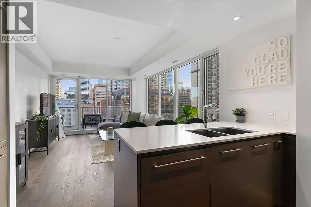 Live in the heart of Calgaryâs West End in this 12th-floor one-bedroom condo at Avenue. Bright and modern, it features floor-to-ceiling windows, hardwood floors, and an open layout. The kitchen impresses with quartz counters, sleek cabinetry, gas cooktop, stainless steel appliances, and a central island with seating. The living area extends to a private balcony with skyline views, ideal for relaxing or entertaining. The bedroom includes a walk-in closet, while the 4-piece bath and in-suite laundry add everyday convenience. Titled underground parking and storage are included. Building amenities feature concierge service, a fitness center, and bike storage. Steps to the Bow River pathways, Princeâs Island Park, the LRT free zone, and Kensingtonâs shops and dining, this condo offers the perfect mix of comfort, convenience, and downtown lifestyleâan excellent choice for first-time buyers, downsizers, or investors. (id:27476)