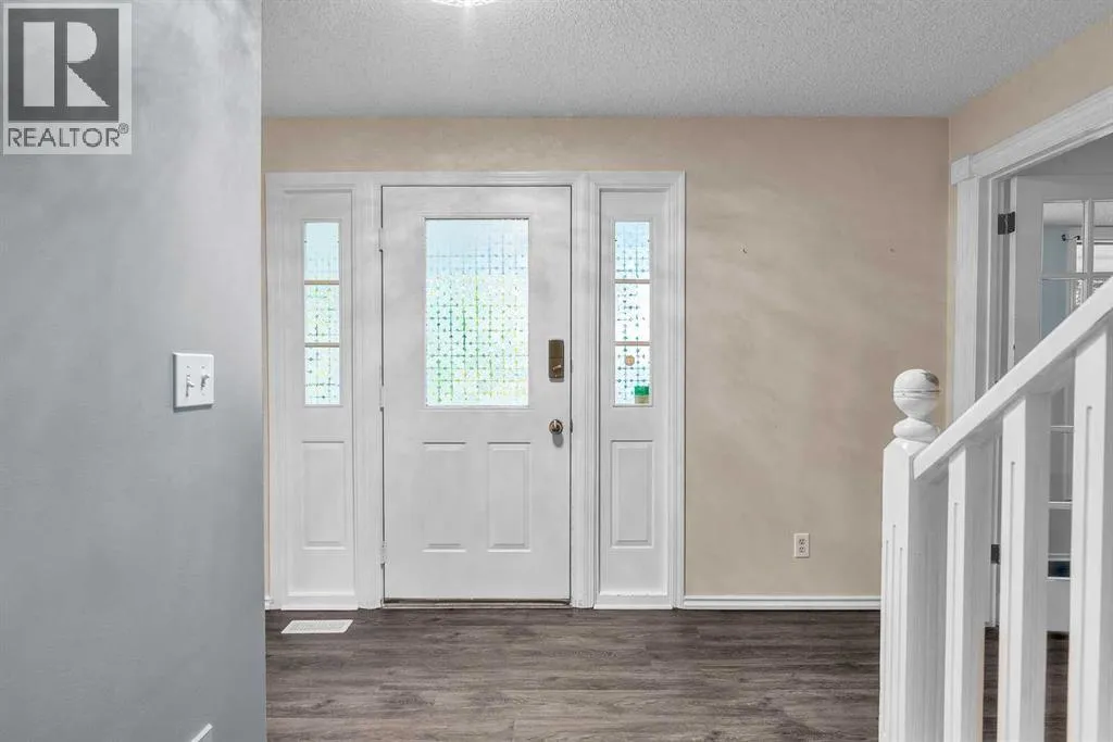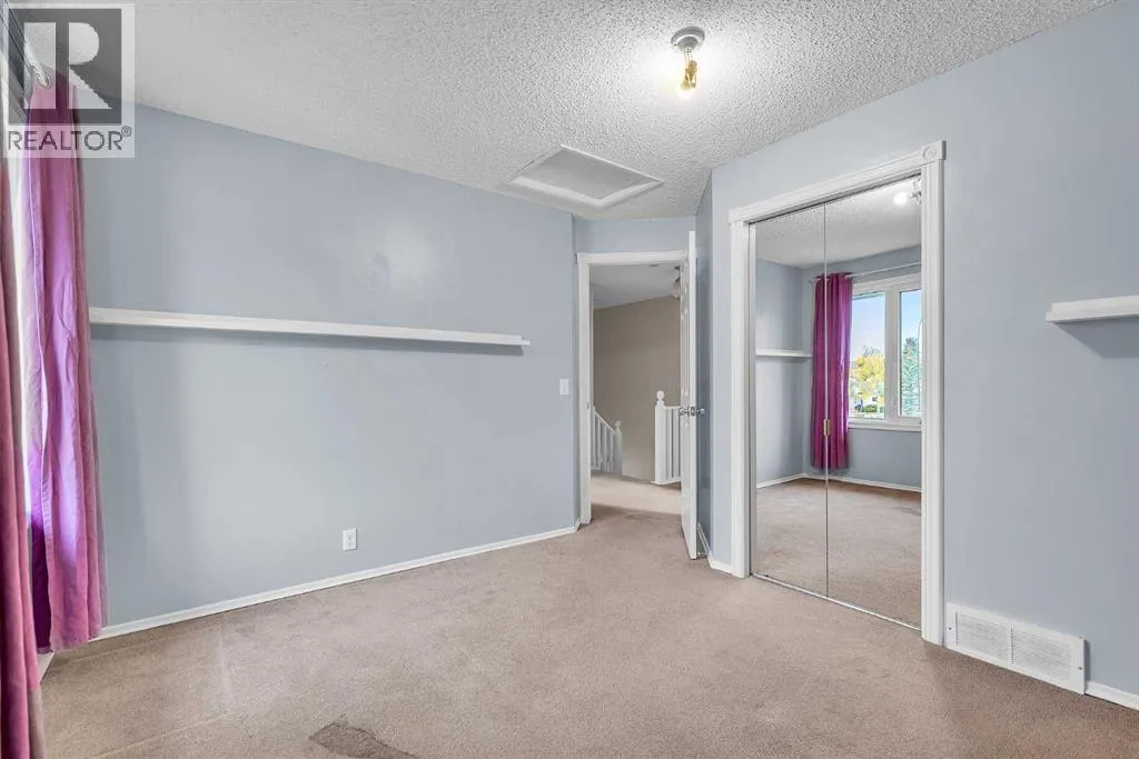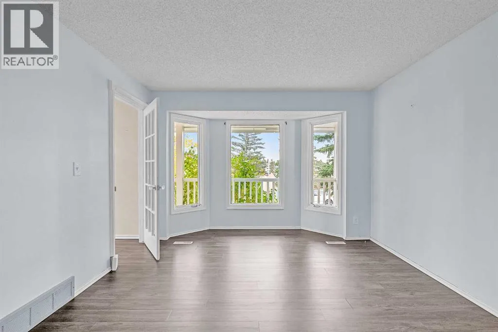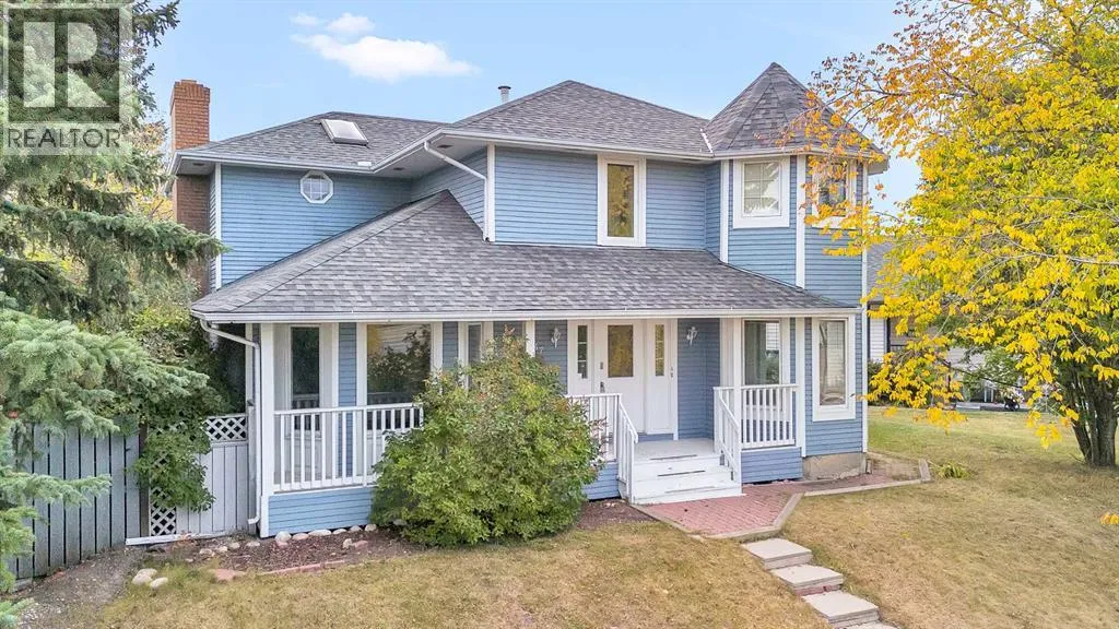 PRICE ADJUSTMENT .Immediately impresses with its stately turrets and an expansive front porch, warmly welcoming guests and providing the perfect spot for enjoying a morning cup of coffeeThis home offers ample space for families to grow, mature, and adapt to changing needs. There is substantial room for working from home, play and study areas, and those always-important quiet spots for relaxation.The versatile front flex room enjoys beautiful views of the front yard and is perfect for customizing to suit your lifestyle. Whether used as a den, formal dining room, music room, or play space, its bayed windows inspire creativity and productivity.French doors lead to the elegant dining room, which provides abundant space for hosting both large gatherings and more intimate events. The inviting living room features a charming wood-burning fireplace, sophisticated wainscotting, and a new patio slider that bathes the space in sunlight.Upstairs, four bedrooms include a spacious master oasis with plenty of room for king-sized furniture, a private ensuite, and a large walk-in closet.Unwind in the low-maintenance backyard, featuring a pergola-covered deck, paver stone patio, and a firepit for endless summer evenings. The yard is privately nestled behind a double detached garage.This family-friendly neighbourhood provides easy access to public transit, making daily commutes and weekend outings a breeze. Experience the vibrant community atmosphere and the peace of mind that comes with living in a safe, welcoming area.Crowfoot Centre is also within walking distance. Home is priced to sell as per condition (id:27476)