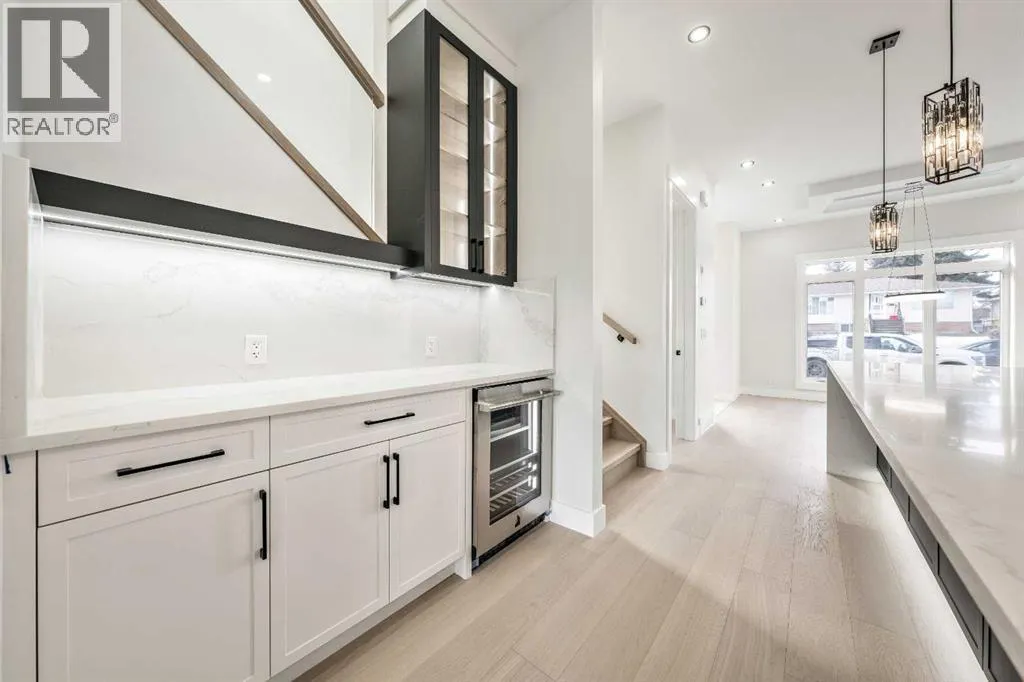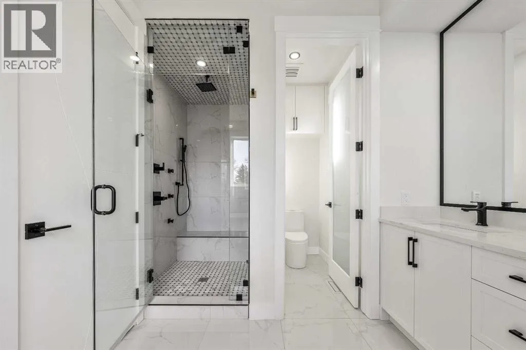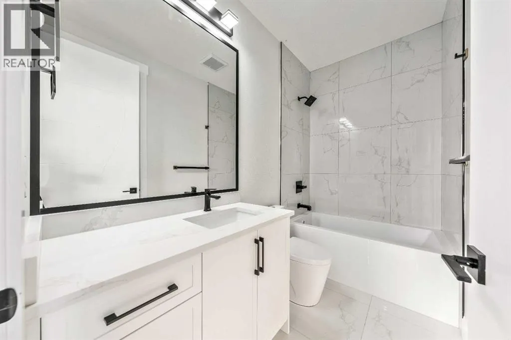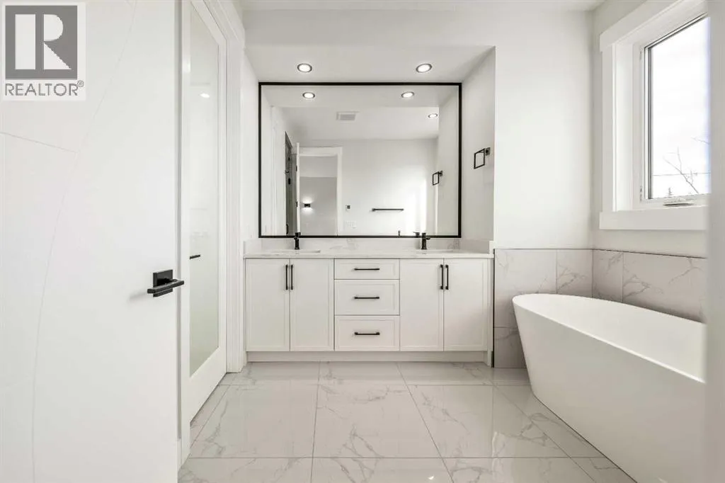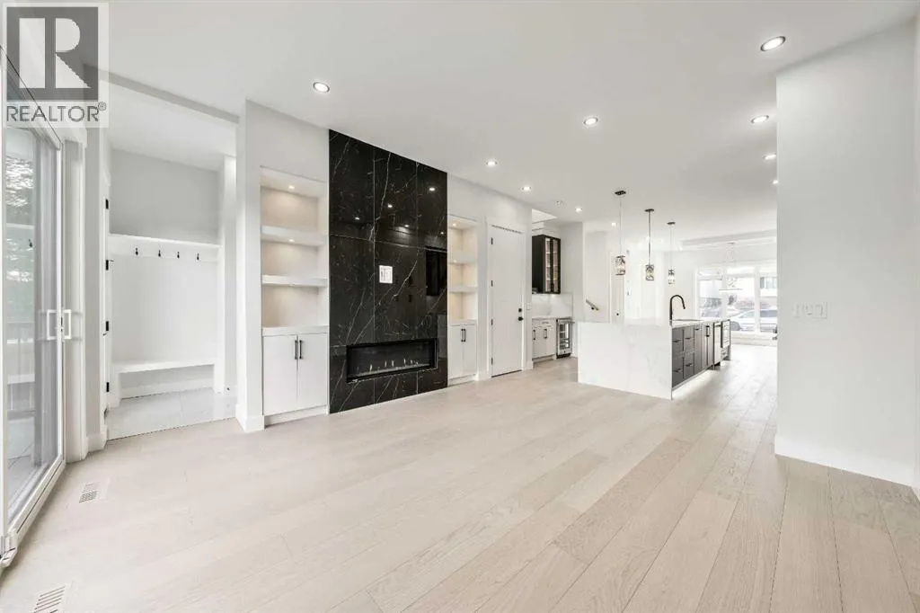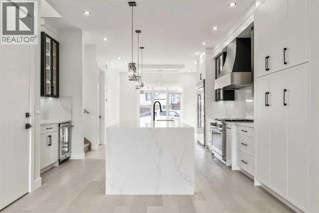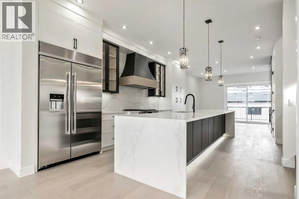 Welcome to the lap of luxury in Rosscarrock. This beautifully appointed infill (construction completion in early 2026) is within one kilometre walking distance to Westbrook C-train station, Westbrook mall, E-MART, Walmart, Starbucks, and many pubs/restuarants which makes it an ideal location with its 2 BEDROOM BASEMENT LEGAL SUITE. Have Kids with allergies? NO CARPETS THROUGHOUT. The Main floor has 10â CEILINGS, wide front entrance, an enormous dining area to fit a harvest table, luxurious kitchen with quartz backsplash, 14' long island with a magnificent quartz countertop and dual waterfall feature and cabinet doors on both sides (plenty of storage space for all your small kitchen appliances), a show-stopping "COMMERCIAL STYLE" 36 INCH GAS RANGE, Impressive 48" FRIDGE and High-end BEVERAGE COOLER in the seamlessly situated coffee bar that is open-to-above. The Living room has an opulent 50' GAS FIREPLACE with built-ins and sliding patio doors that opens to a maintenance-free, composite plank party deck. The mud room has sitting bench and hangers, and will lead a conveniently located powder room. The highlight of the top floor is the Massive Primary bedroom with vaulted ceiling, spacious WALK-IN HIS & HER closets and a spa-like ensuite which will have a tiled STEAM SHOWER, double vanity, and a free-standing tub. The top floor is completed with a laundry room with sink, two bedrooms, one which has "cheater-ensuite" access to the common 4-piece bathroom. Every main and top floor bathroom has electric in-floor heating with their own thermostat, 200 AMP SERVICE TO HOUSE ensures there is enough power for house and a legal basement suite. The BASEMENT HAS A SEPARATE SIDE ENTRANCE, access to the furnace/mechanical room is in the common area so basement tenants do not need to be bothered/notified if you have to access the mechanicals. The basement ceiling has sound reduction features in the ceiling, hookups for a private laundry, kitchen and living room (with a gas firepl ace), ITS OWN FURNACE and roughed-in in-floor heating. Did I mention TRIPLE PANE WINDOWS THROUGHOUT which are more energy efficient and improve sound insulation within the house? Other features include GFCI OUTLETS BEHIND EVERY TOILET (required for heated bidets), 200 AMP service in home, HEATED (also insulated, drywalled and painted) GARAGE WITH 200 AMP SERVICE with an EV CHARGING RECEPTACLE suitable to connect a Level 2 charging station. Photos are from a recently finished project. Taxes on completed home not yet assessed. Measurements taken from building plans and interior photos from a recent project completed by builder that will have similar finishings. (id:27476)