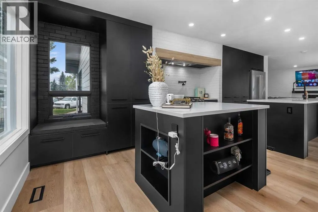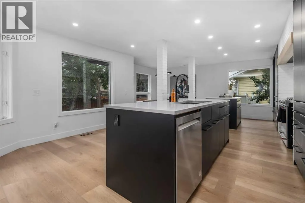 Beautifully Renovated Family Home in the Heart of SundanceWelcome to over 2,700 sq. ft. of thoughtfully developed living space in this beautifully renovated home, perfectly nestled on a fully landscaped lot surrounded by mature trees. Located in the desirable lake community of Sundance, this home offers an ideal setting for familiesâjust steps away from three top-rated schools (Sundance School, Father Whelihan, and Centennial High School), Sundance Lake, local restaurants, and vibrant community amenities.Step inside to discover a home designed for gathering, entertaining, and everyday comfort. The chef-inspired kitchen is a true showstopper, featuring two oversized islands, sleek black cabinetry, premium quartz countertops, and a hidden walk-in pantryâperfect for keeping everything neat and organized. The open-concept layout flows seamlessly into the dining and living areas, making it easy to host friends and family with ease.High-end finishes throughout include expansive windows, modern black-accented fixtures, and durable luxury vinyl plank flooring, creating a warm and sophisticated atmosphere in every room.With six spacious bedrooms, thereâs plenty of room for the whole familyâand guests too. The luxurious primary suite offers a peaceful retreat, complete with a spa-inspired ensuite that invites relaxation after a long day.Downstairs, the fully finished basement provides versatile space for a home theatre, gym, kidsâ playroom, or whatever suits your lifestyle best.Step outside to enjoy your private, fully landscaped backyard, featuring a large deckâideal for summer BBQs, childrenâs playdates, or quiet evenings under the stars. A double gate and gravel RV pad at the back corner offer convenient parking for your trailer, boat, or additional vehicles.Situated in one of Calgaryâs most sought-after lake communities, with easy access to schools, parks, and major roadwaysâthis home combines luxury, convenience, and community.Move-in ready and waiting fo r your next chapter. Come experience all that Sundance has to offer. (id:27476)