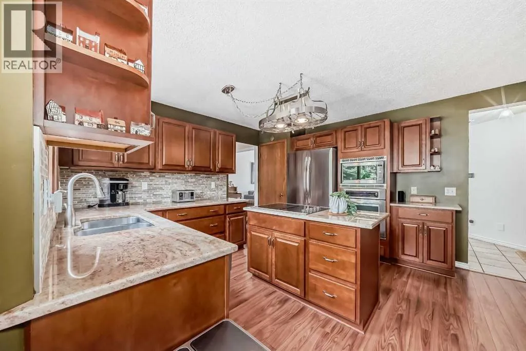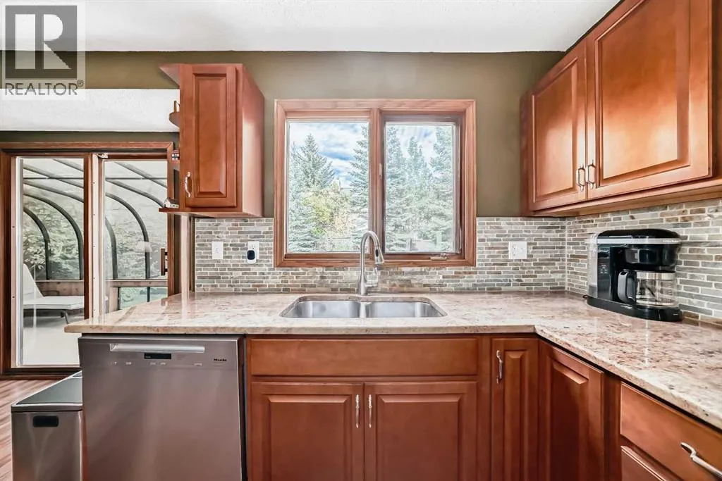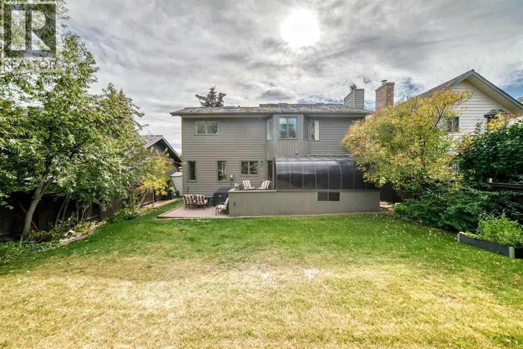 Beautiful, family home close to Fish Creek Park. Well laid out, family home with 3 bedrooms up and 4 bathrooms in total. Fantastic kitchen with newer, stainless steel appliances. Main floor has a casual dining area and a formal dining room. Plenty of room to spread out on the main and upper floors. Great mudroom/laundry room area. Large primary bedroom with 3 piece bath. Second and third bedrooms up have decent space as well. Some newer windows throughout, including an egress window in the basement. Furnace and hot water tank replaced in 2017. Air conditioner added in 2018. Lower level has a separate entrance through the garage. North side backyard, perfect for keeping cool on those hot, summer days. Mostly finished basement with a single bedroom, full bath and wet bar area. Very close to Fish Creek Park and Woodbine Elementary School. (id:27476)