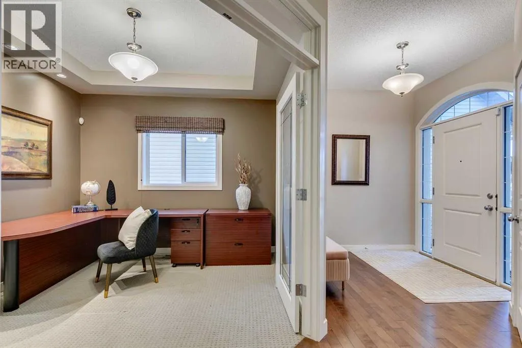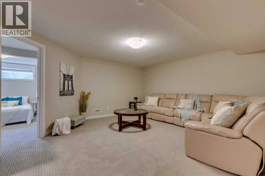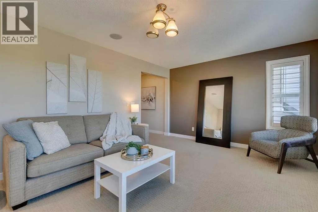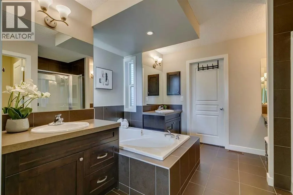 Welcome to this beautifully appointed estate-style two-storey detached home, ideally situated directly across from a vibrant park that offers tennis courts, a skating rink, and more. The home makes a striking first impression with its stucco and stone exterior, grand stone archway at the front entrance, exposed aggregate driveway, and a spacious, multi-level composite deck in the sun-soaked south-facing backyard.Inside, youâll find a warm and elegant interior featuring 9-foot ceilings and a mix of hardwood, tile, and plush carpet throughout. The main floor offers a large front office, a convenient two-piece powder room, and a generous mudroom/laundry area just off the double attached garage. The open-concept kitchen is designed for both function and style, with granite countertops, a gas range, microwave hood fan, corner pantry, and even a built-in compost chute for added sustainability. The adjoining living room is bright and welcoming, featuring a cozy gas fireplace and sliding glass doors that lead to the backyard â the perfect setup for relaxing or entertaining outdoors.The upper floor hosts three generously sized bedrooms, including a sunny, south-facing primary retreat with a walk-in closet and a luxurious ensuite. The ensuite is spa-inspired, offering dual sinks, a centre soaking tub, separate shower, private water closet, and dedicated makeup vanity. A full four-piece bathroom serves the two additional bedrooms. Also upstairs is a spacious bonus room that overlooks the park and features California shutters and built-in shelving with a TV stand â ideal for family movie nights or a children's play space.What truly sets this home apart is the fully legal, self-contained basement suite, making it an exceptional opportunity for multi-family living, extended family accommodation, or a strong mortgage helper. With its own private entrance, the suite includes two bedrooms, a full four-piece bathroom, carpet and tile flooring, a full kitchen with fridge, stove, mi ni dishwasher, and vented hood fan. It also features its own laundry area, pantry closet, and under-stair storage, offering privacy and independence for occupants â whether itâs adult children, aging parents, or rental tenants.Located in the desirable community of Cranston, residents also enjoy access to Century Hall â a private community centre with a splash park, tennis courts, skate park, indoor and outdoor sports courts, summer camps, and year-round special events such as artisan markets, youth clubs, and wine tastings. The home is conveniently close to the Bow River pathway system, several golf courses, and major shopping and dining destinations in nearby Seton and Mahogany.This home offers an unbeatable combination of location, space, flexibility, and income potential. Whether you're looking for a place to accommodate extended family or generate rental income, this property checks all the boxes. Donât miss your chance to make it yours â book your showing today! (id:27476)