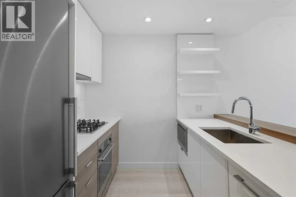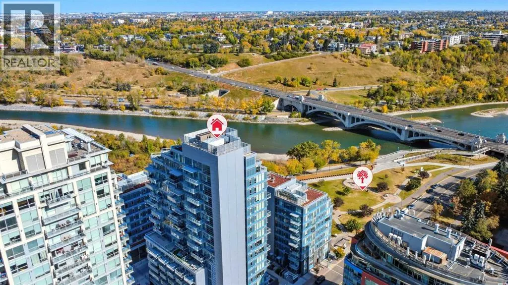 Welcome to Waterfront Parkside, where contemporary design meets an unbeatable downtown riverfront location. This 10th floor, 1 bedroom, 1 bathroom suite offers 468 sq. ft. of thoughtfully designed living space with east-facing views of the Bow River.The open layout features wide-plank flooring, quartz countertops, and a modern kitchen with stainless steel appliances including a Blomberg refrigerator and built-in oven, Fulgor gas cooktop and dishwasher, and in-suite Blomberg washer and dryer. Floor-to-ceiling windows bring in natural light, while the private balcony extends your living space and is equipped with a BBQ gas line. An assigned underground parking stall and storage unit are included.Residents of Waterfront Parkside enjoy exceptional amenities: 24-hour concierge and security, a fully equipped fitness centre, hot tub, steam room, ownerâs lounge with kitchen, guest suite, and secured heated underground parkade with visitor parking.The location places you along the Bow River pathways, next to Sien Lok Park and steps from Princeâs Island Park. Downtown Calgaryâs restaurants, cafés, and business district are within walking distance, with the planned Eau Claire LRT station adding future convenience and connectivity.Condo fees include gas, heat, and water.This is a fantastic opportunity to own a modern riverfront condo in one of downtown Calgaryâs most desirable locations. Book a private showing with your favorite Realtor® today! (id:27476)